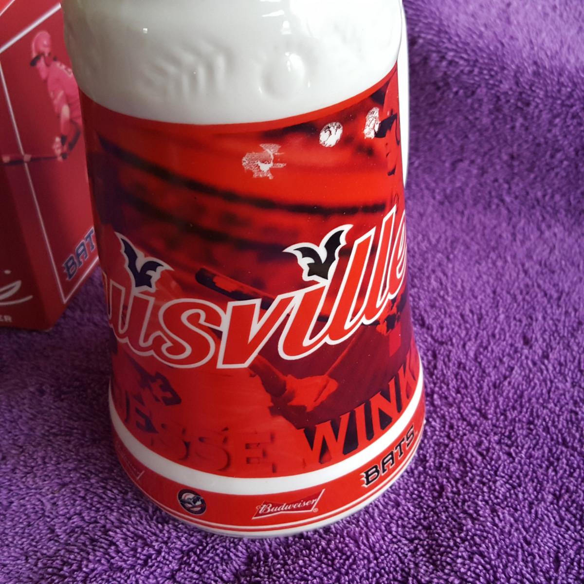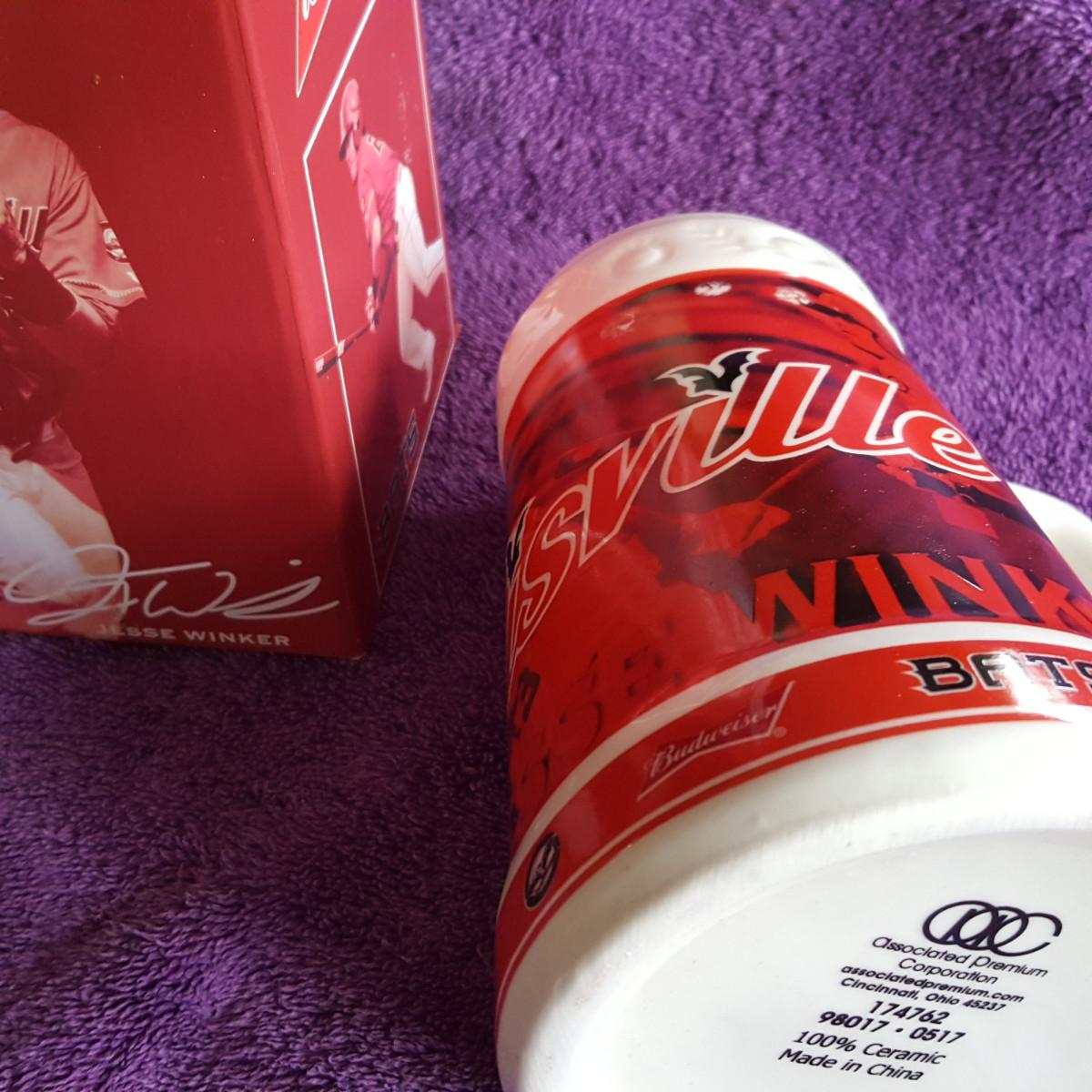 This auction lot is for a Jesse Winker Souvenir Baseball Stein. Jesse played for the Louisville River Bats at some point in his career. Jesse Winker is a professional baseball outfielder for the Seattle Mariners of Major League Baseball. He previously played for the Cincinnati Reds of which the Louisville Bats was the farm team.