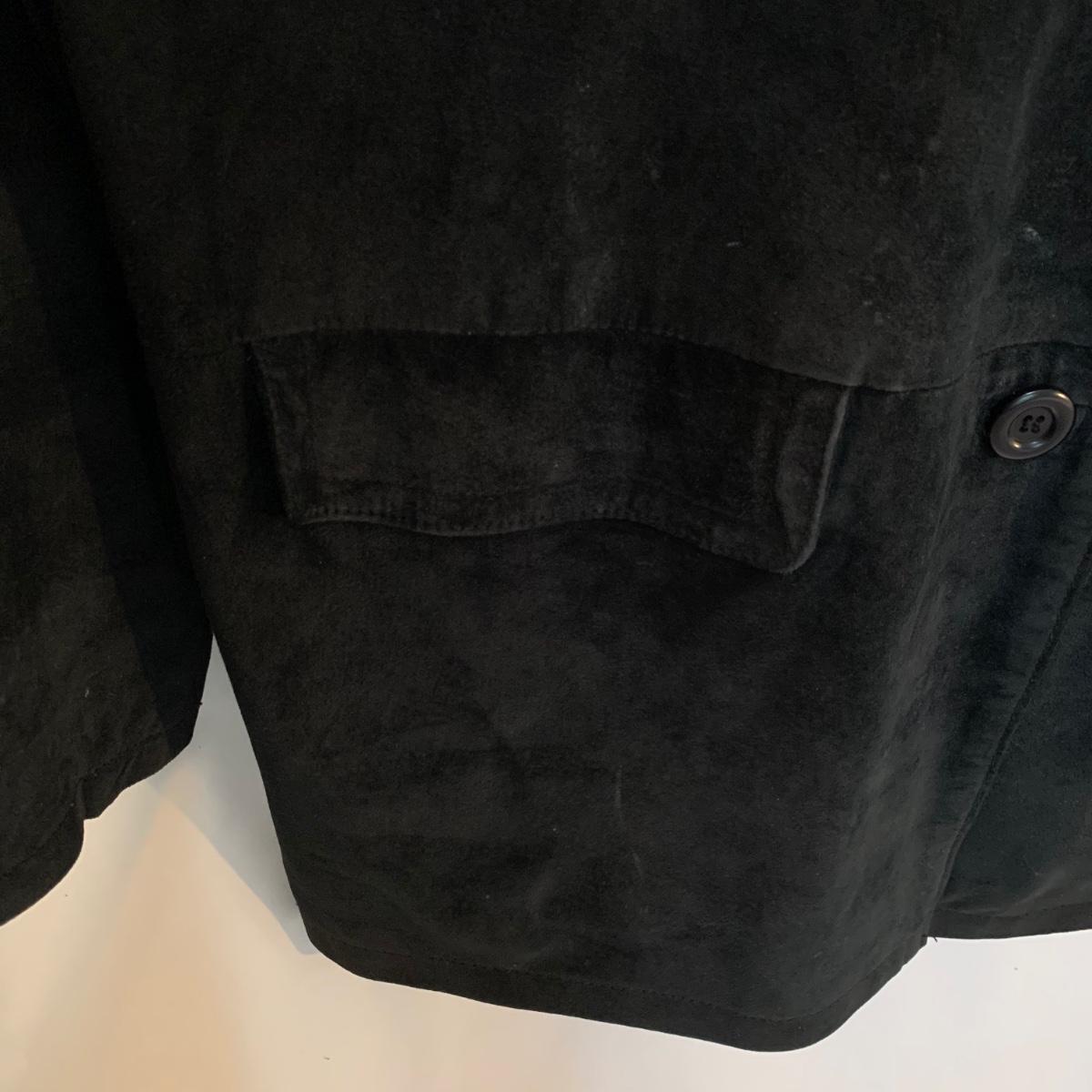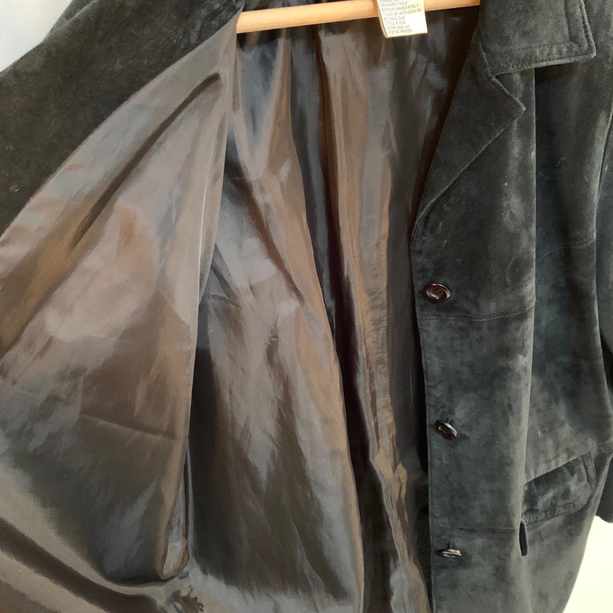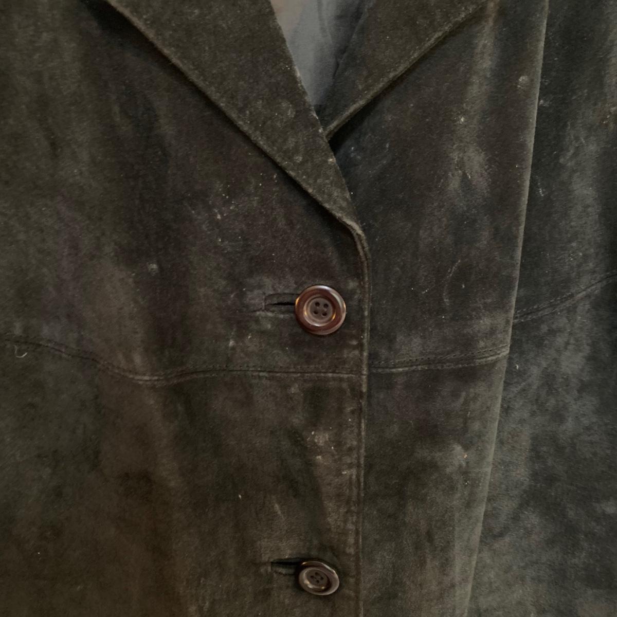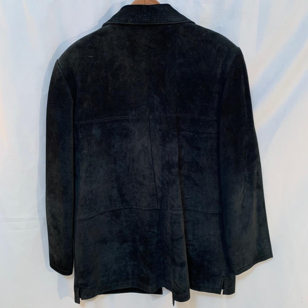 Two 100% genuine leather jackets, both size M. Both the black Jessica Holbrook jacket and the maroon Dialogue jacket have front pockets, button-down front closures, and polyester linings. From the shoulder, the black jacket is 31” long and the maroon is 27.5”. Both are in good condition. The black jacket has some small specks that seem easily cleanable. Wood hangers not included.