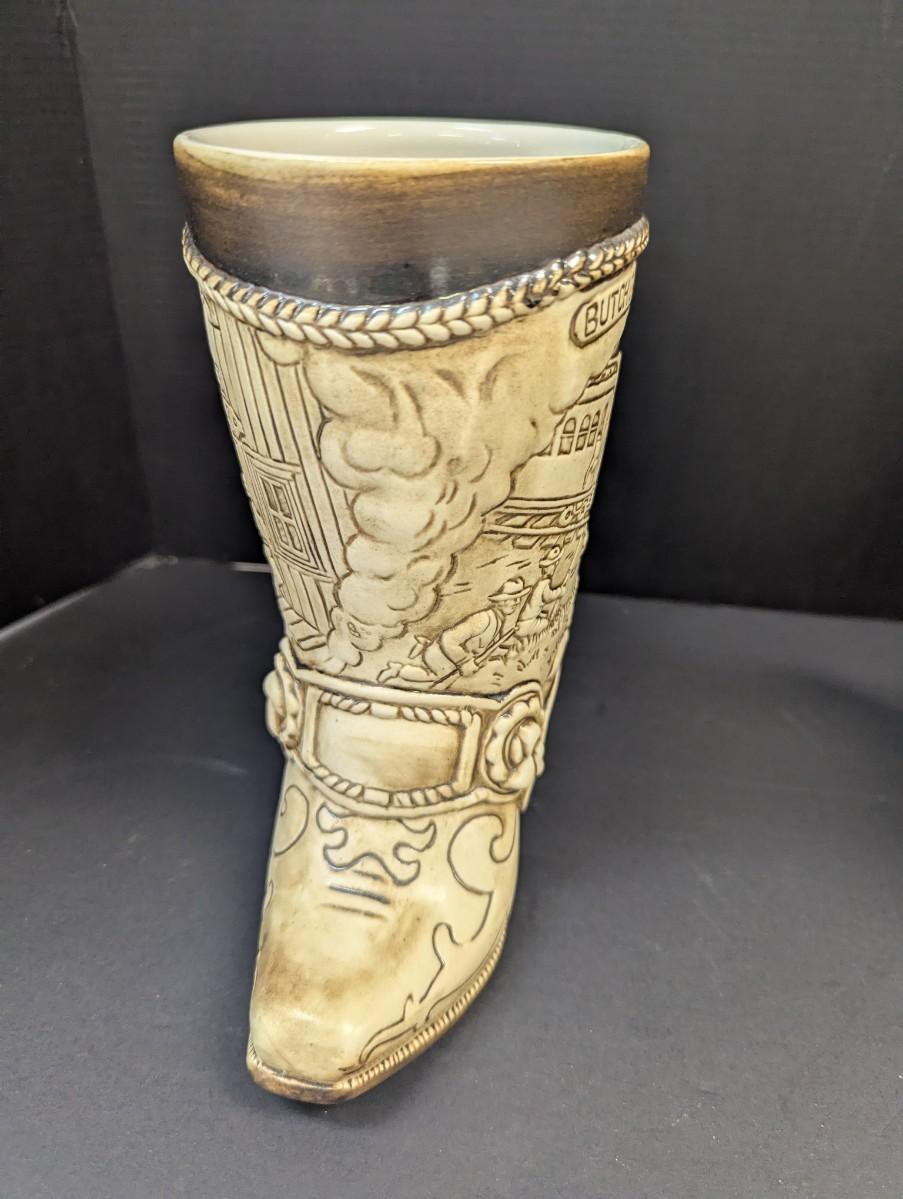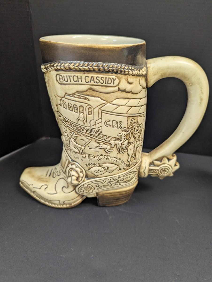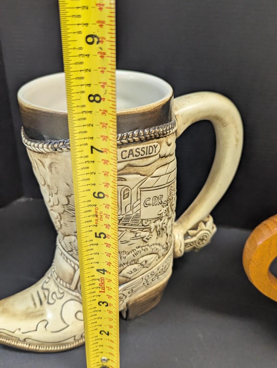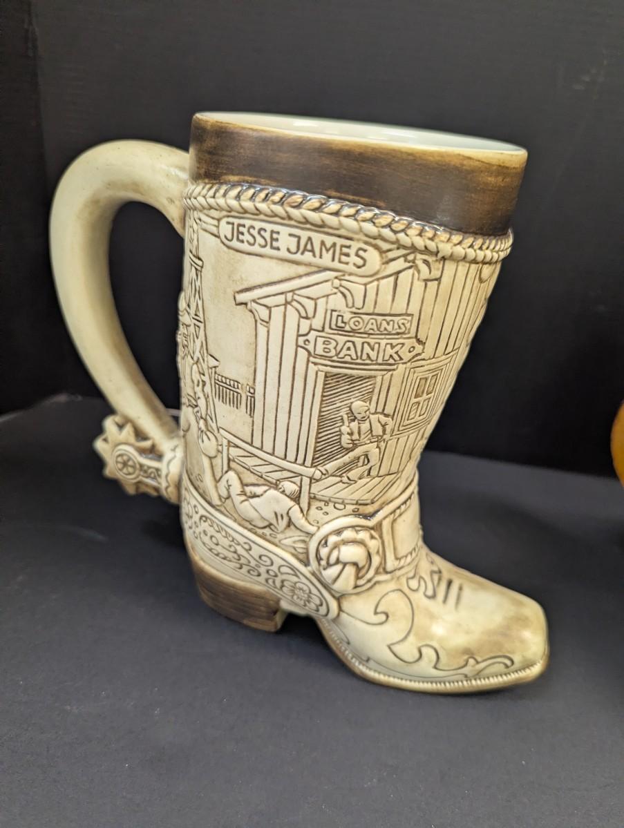 Jessie James Beer Stein & Vintage Handmade Wood Copper Banded Lidded Beer Barrel Style Stein