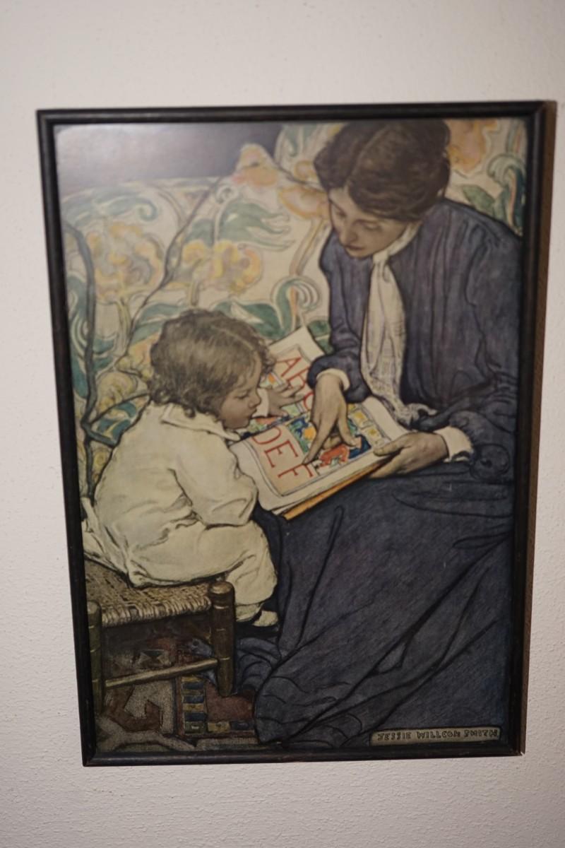 JESSIE WILCOX SMITH EARLY PRINT "FIRST LESSON" FRAMED IN AN EARLY 1900'S FRAME