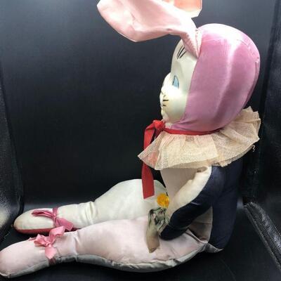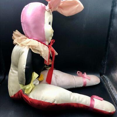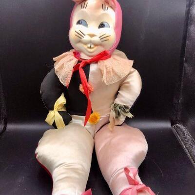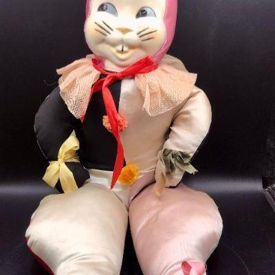 Jester or Clown Bunny Rabbit with Plastic Face dressed in pink black red