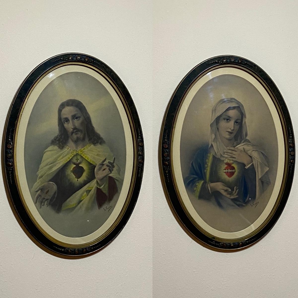 Pair (2) ~ Jesus & Mary ~ Black & Gold Framed Pictures ~ *See Details