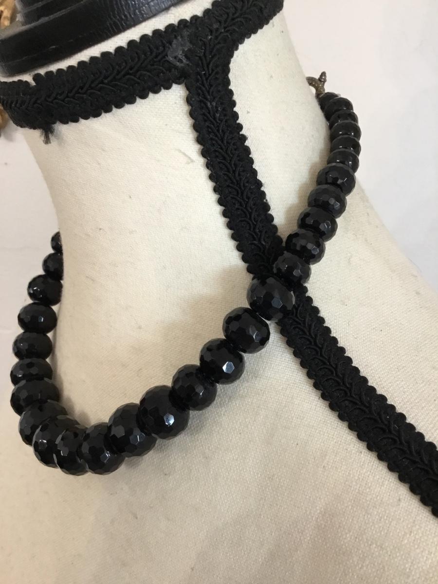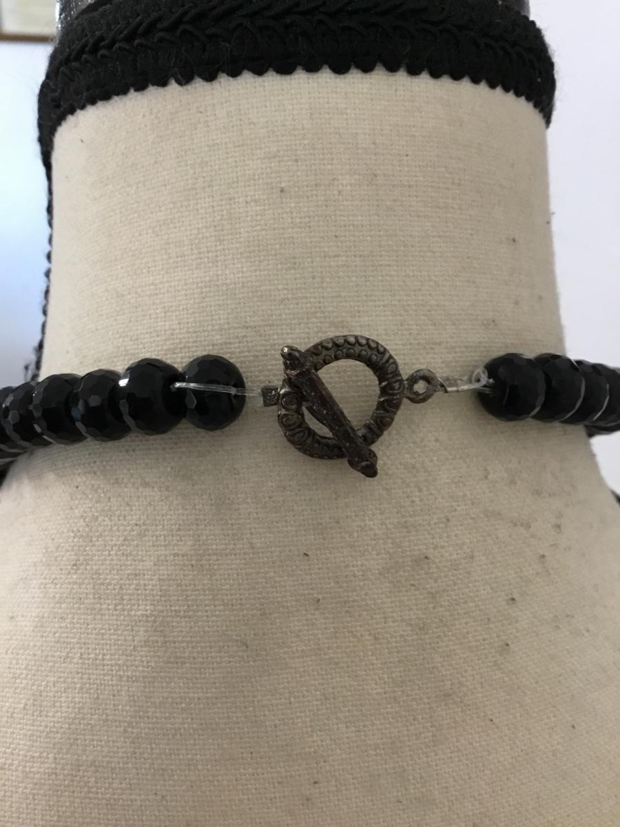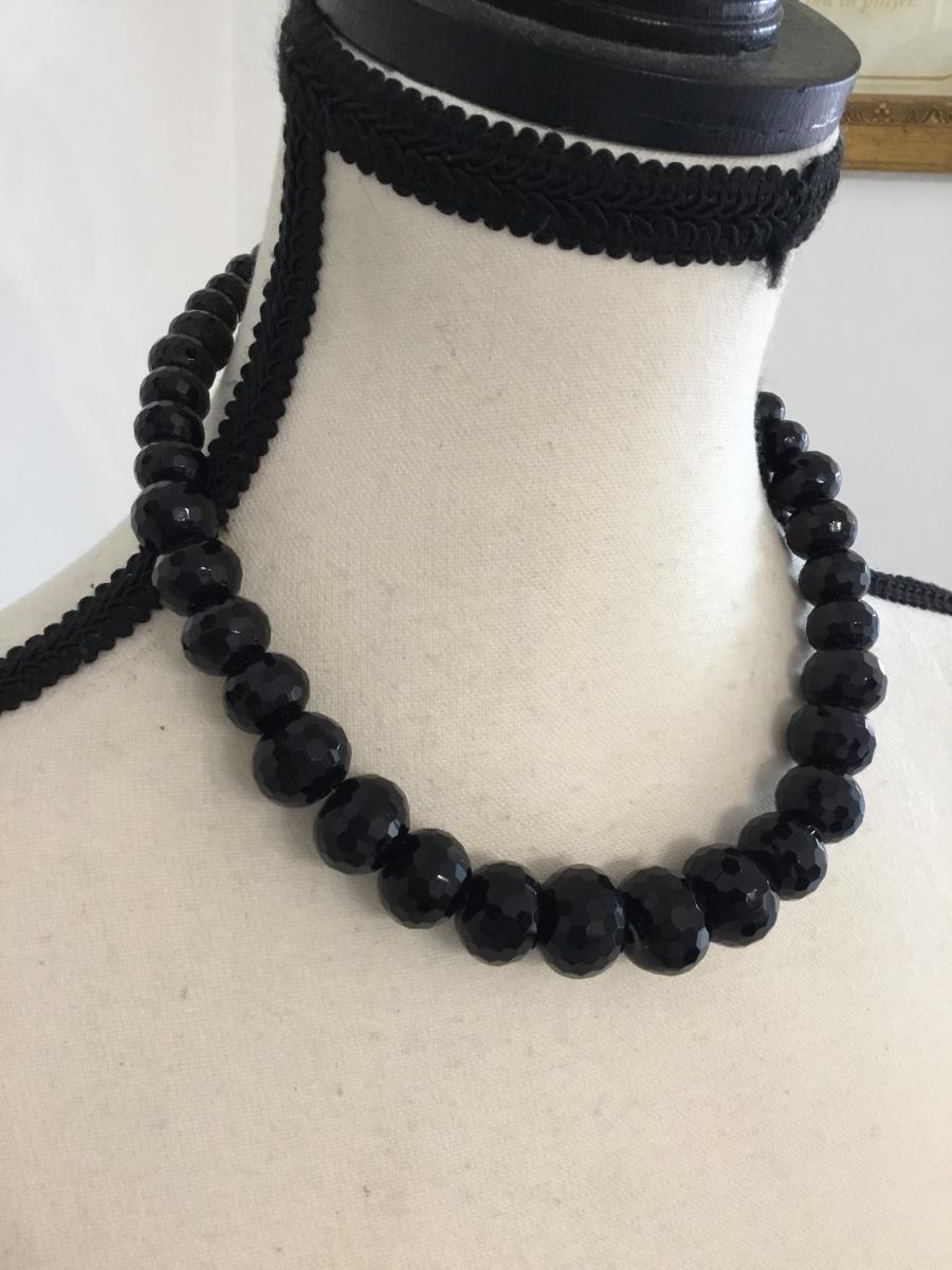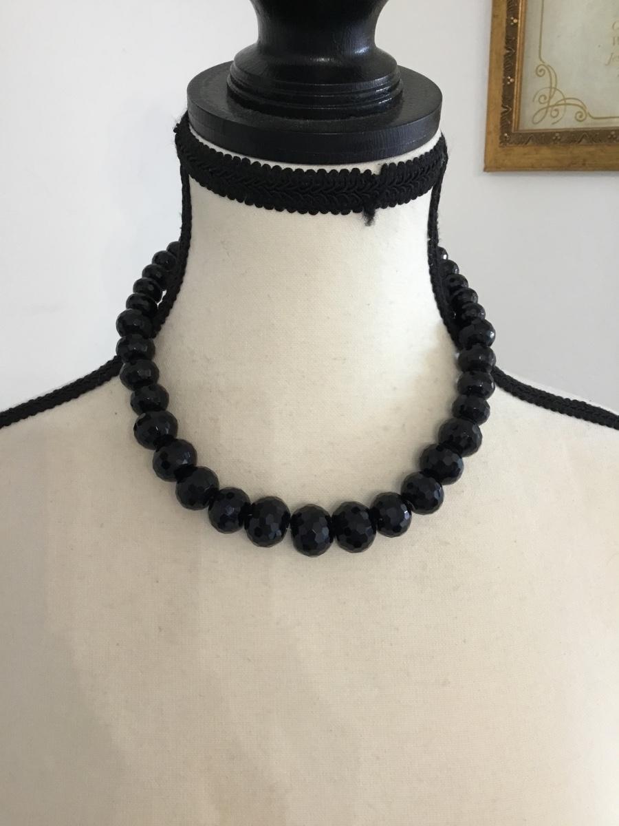 Jet black large, chunky faceted glass beaded necklace with toggle clasp