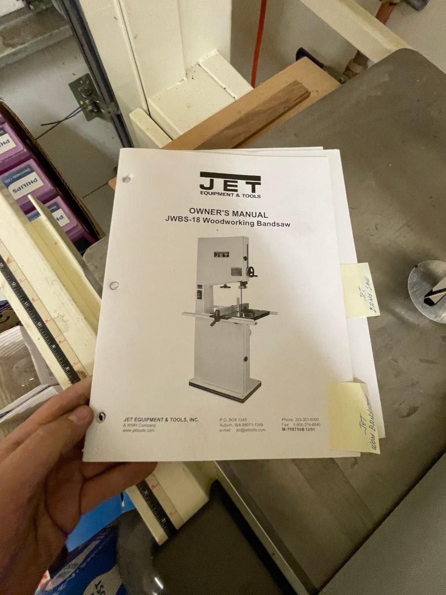 includes owners manual too - 18" bandsaw - Doesn't include any dust hose