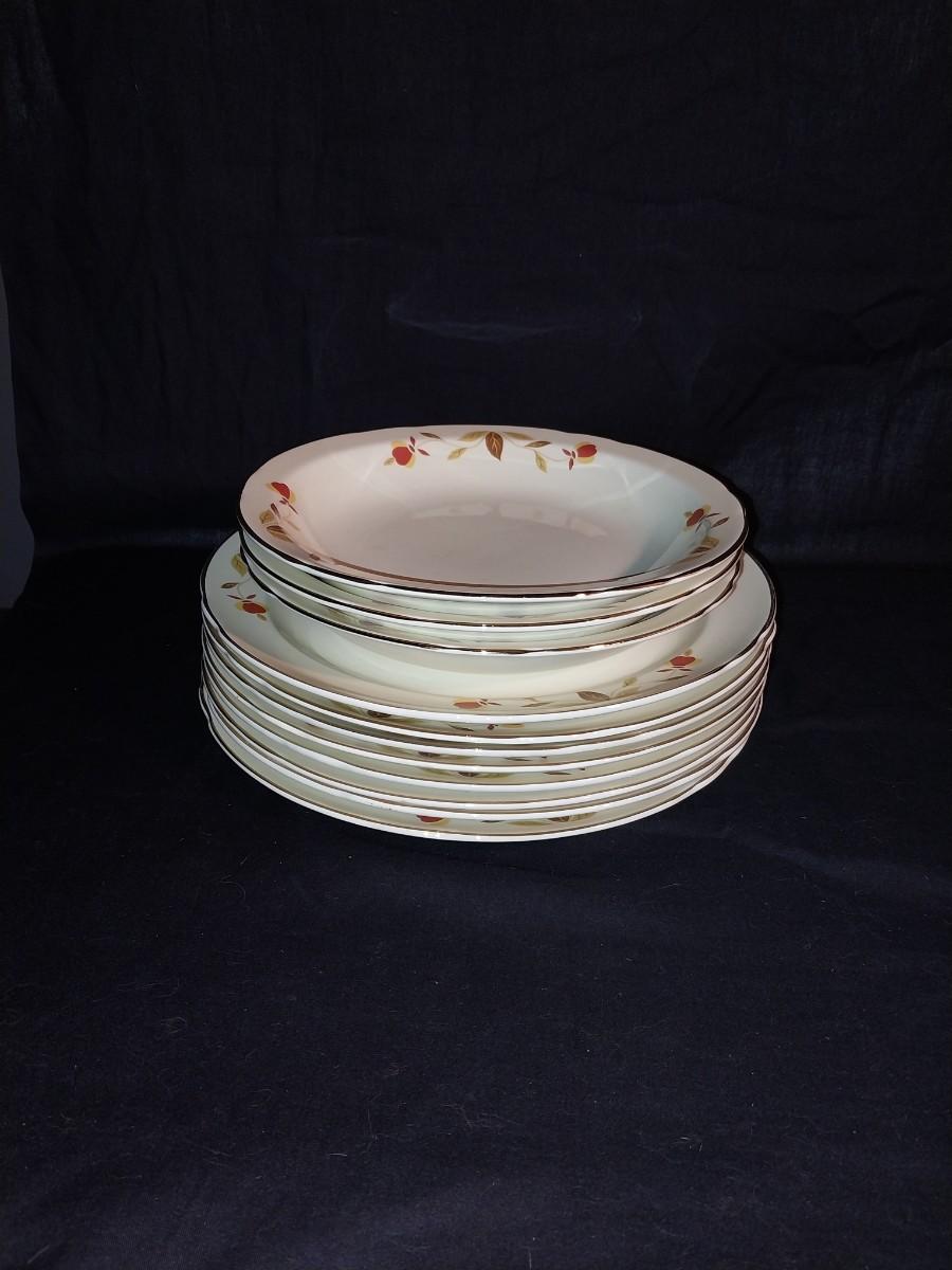 ANTIQUE JEWEL HALL CHINA "AUTUMN LEAF" DESSERT AND DINNER PLATES