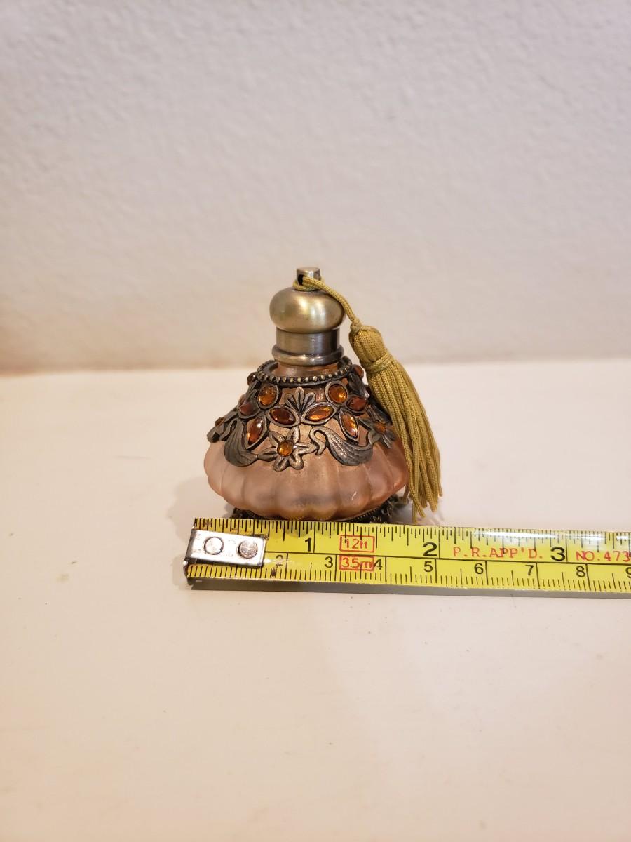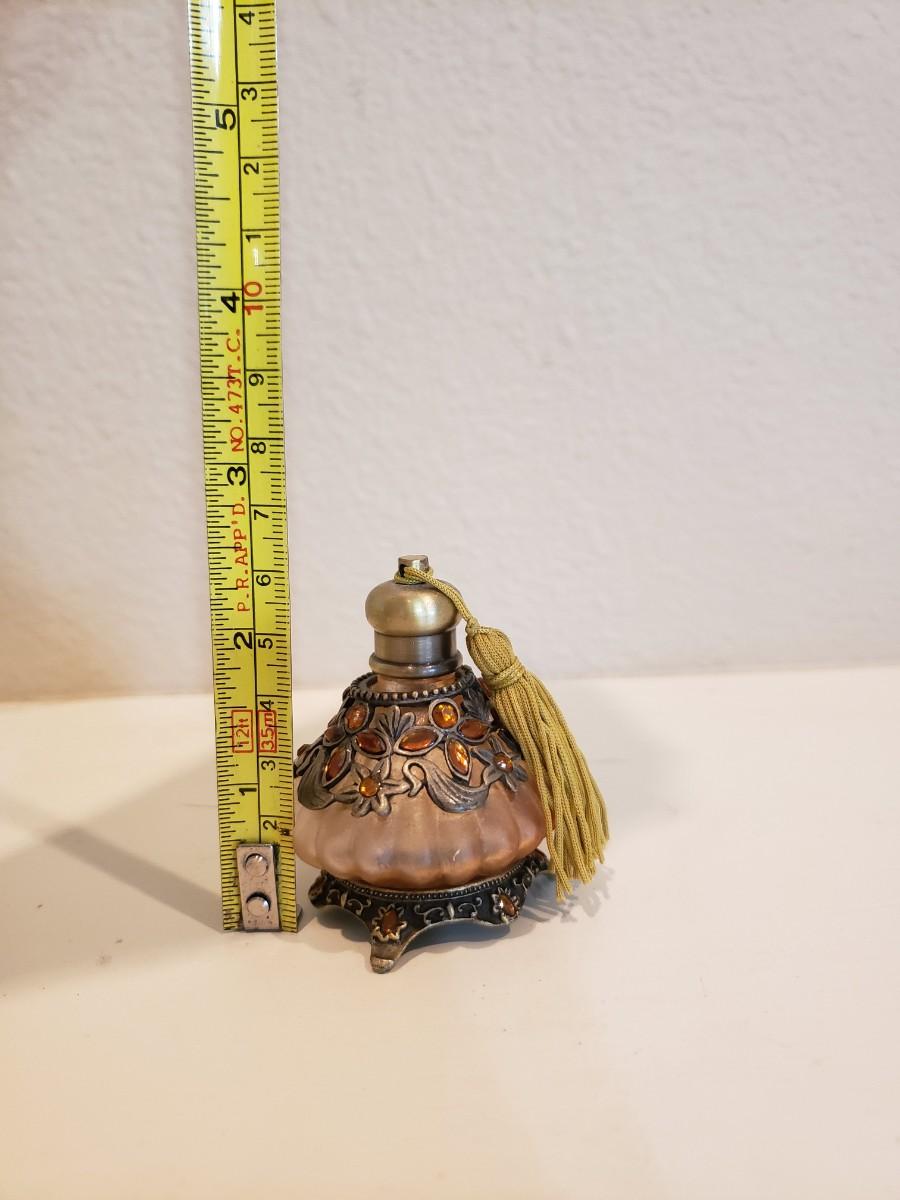 Lot of 4 jeweled perfume bottles. Measurements in photos.