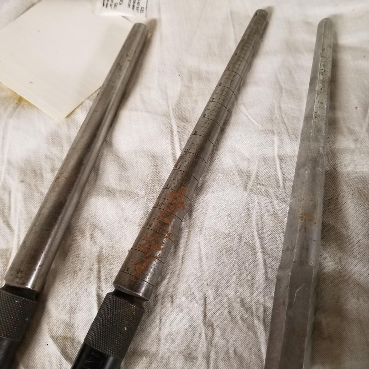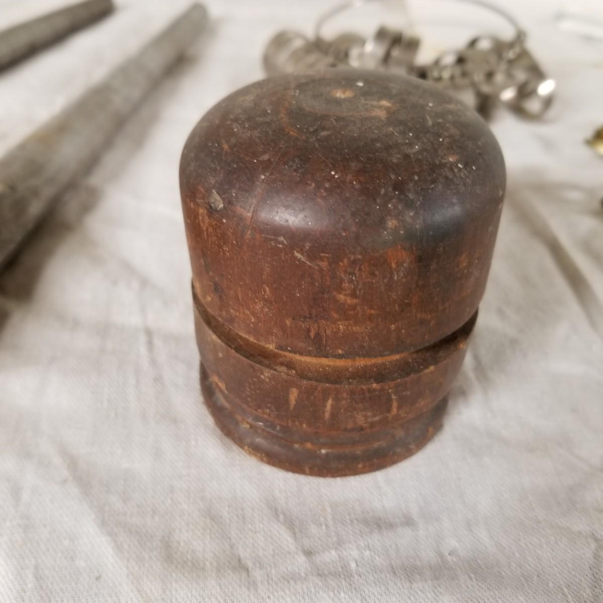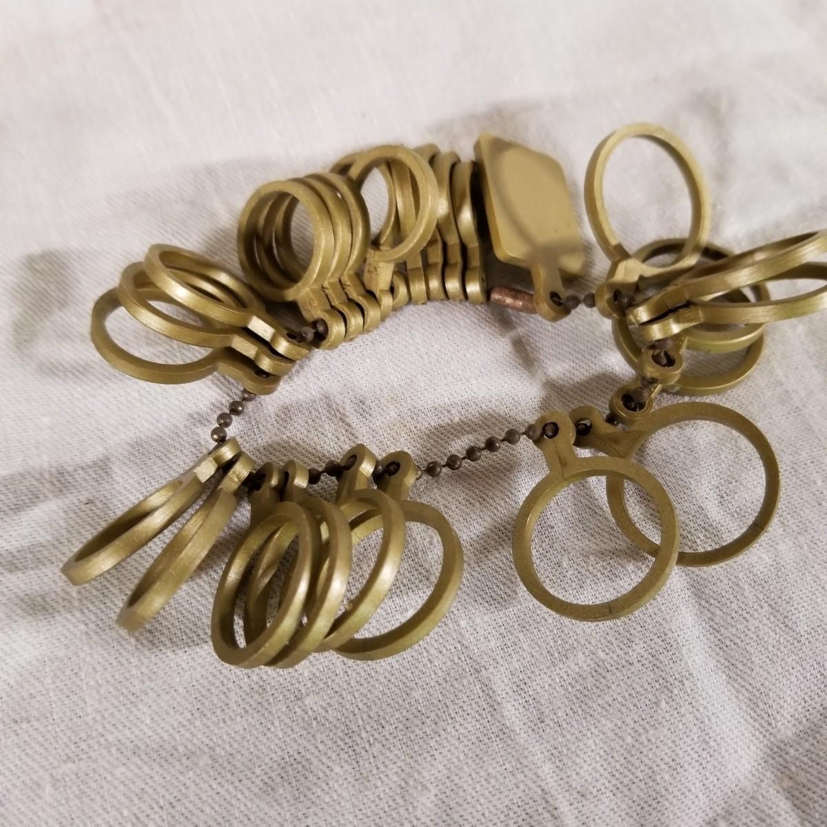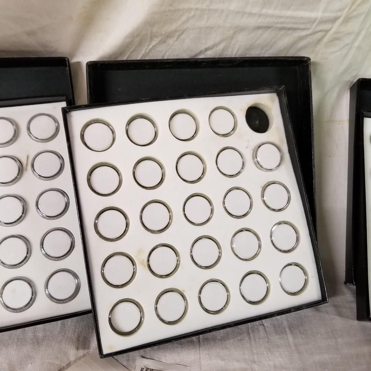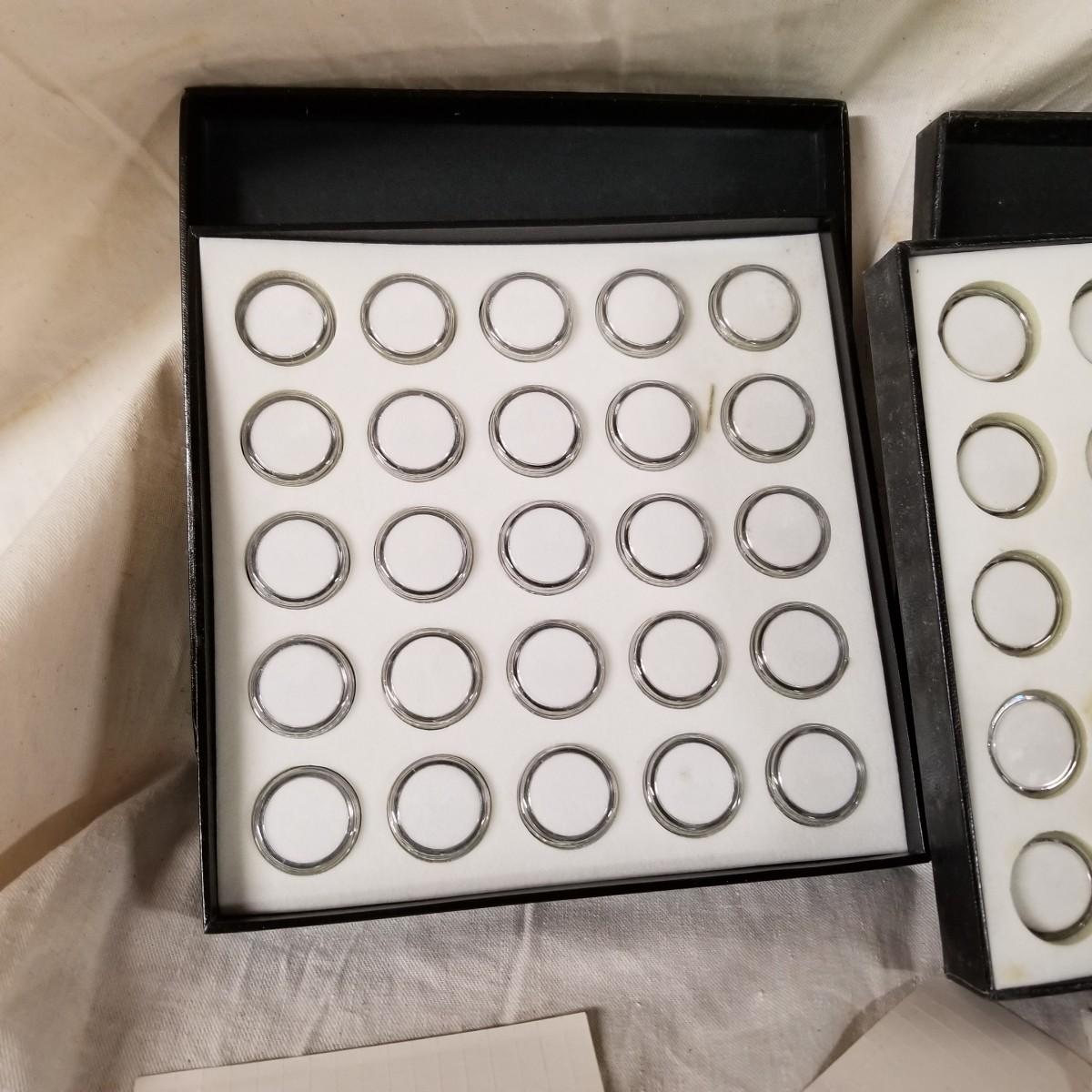 Assorted jewelers gear, two steel and one aluminium ring mandrels,  two sets of ring sizers, one plastic, one metal.   One standard wire gauge,  three boxes of stone specimen holders, 1" d, seventy four pieces total.   One set Emesco stone setting burrs in wood case. Also a zipper case with ring vise, small files, bezel pusher, others. Shipping available.