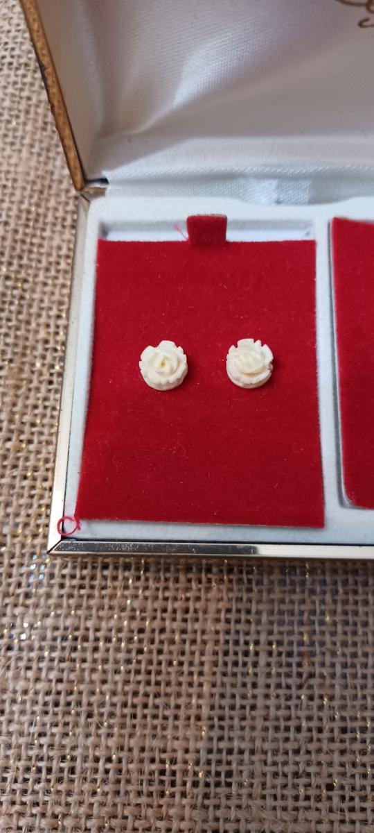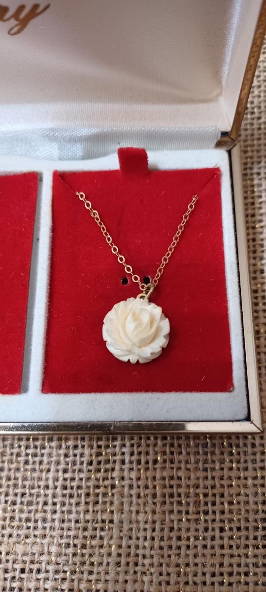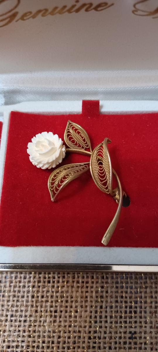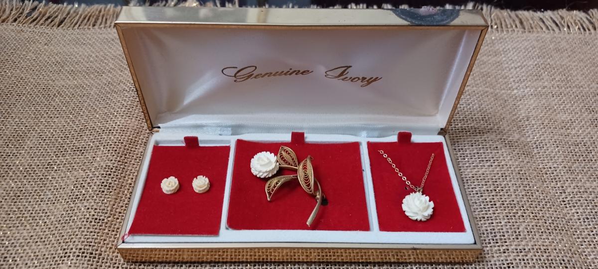 Vintage Necklace, Earring, and Brooch Set (gold w/ivory rose)