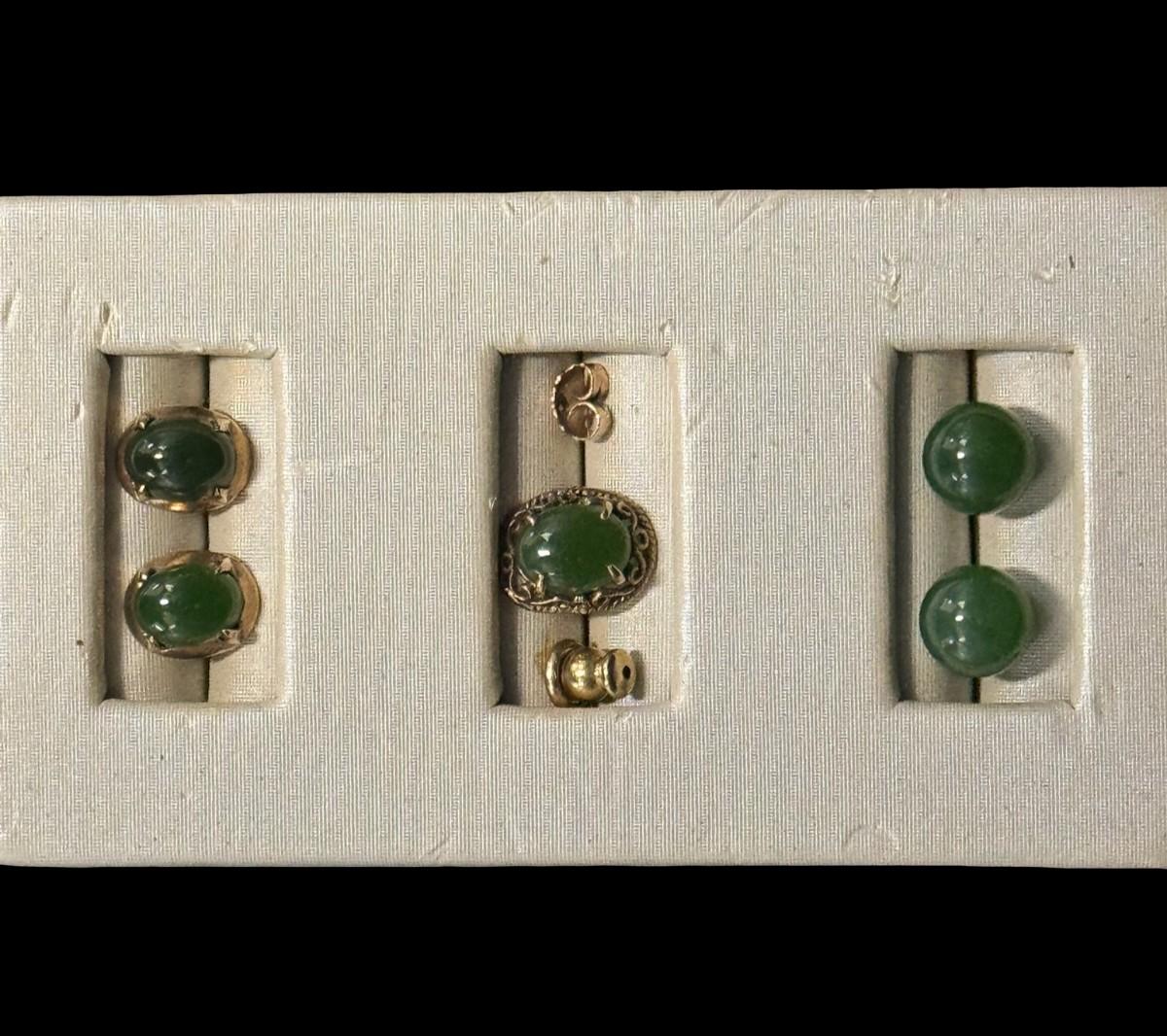 Jade Earrings Assortment with Low Karat Gold Settings [3.77g]