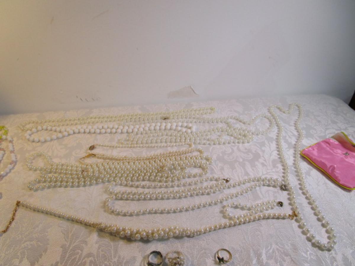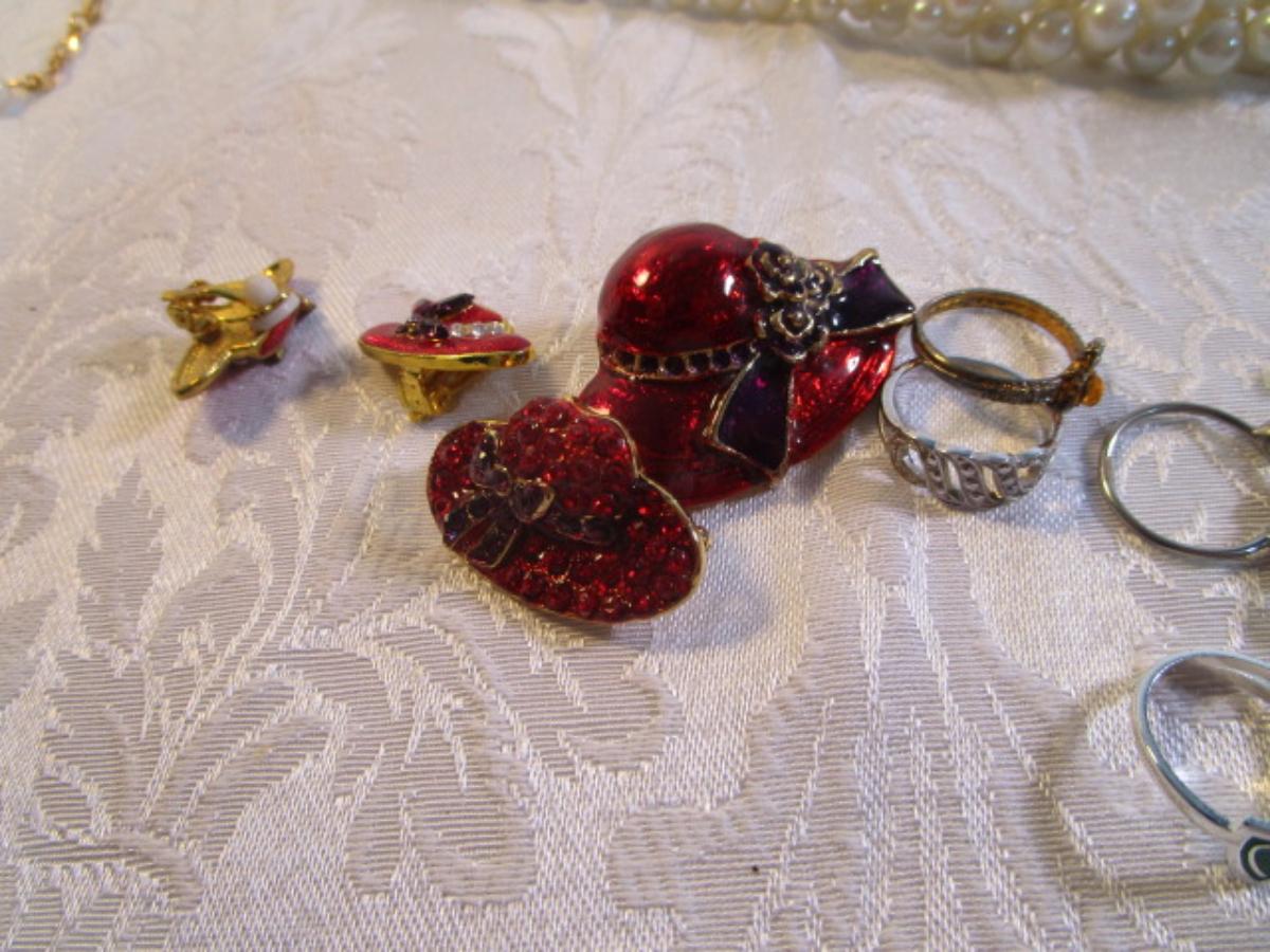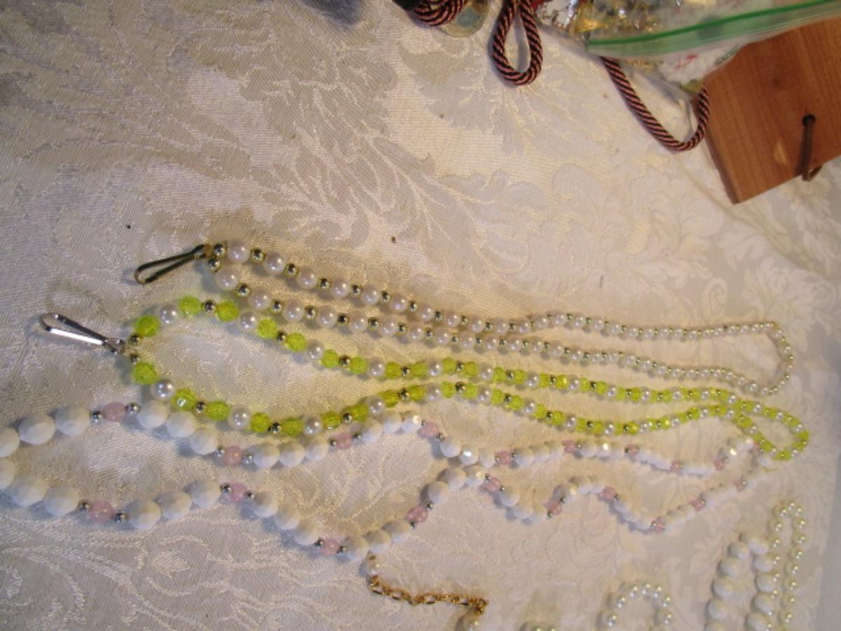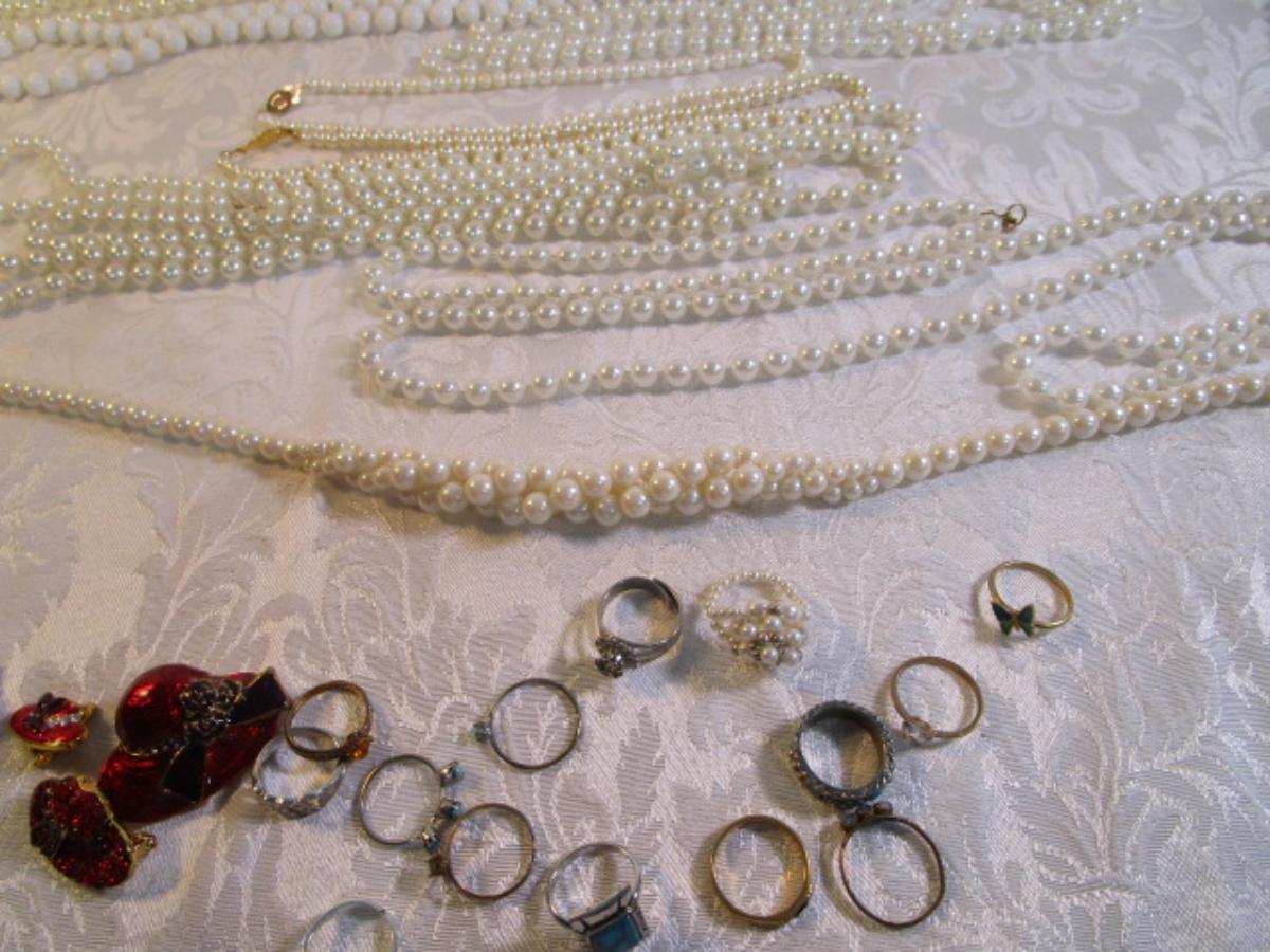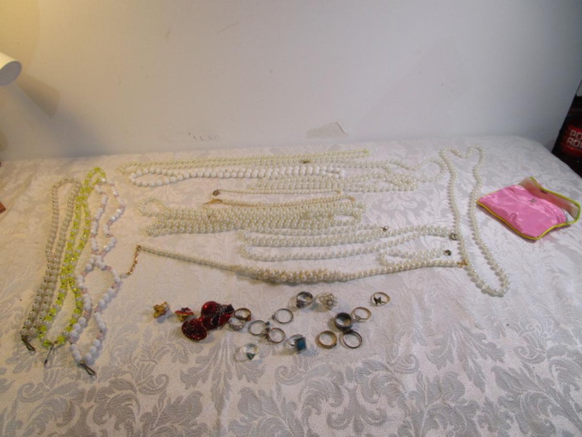 Vintage rings, clip-on earrings, necklaces, bracelet, beaded lanyards. See pictures