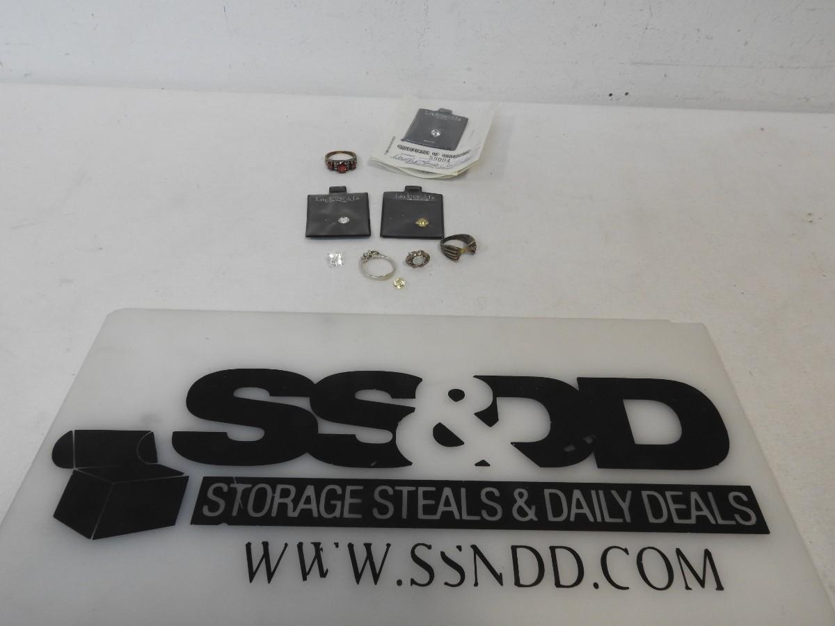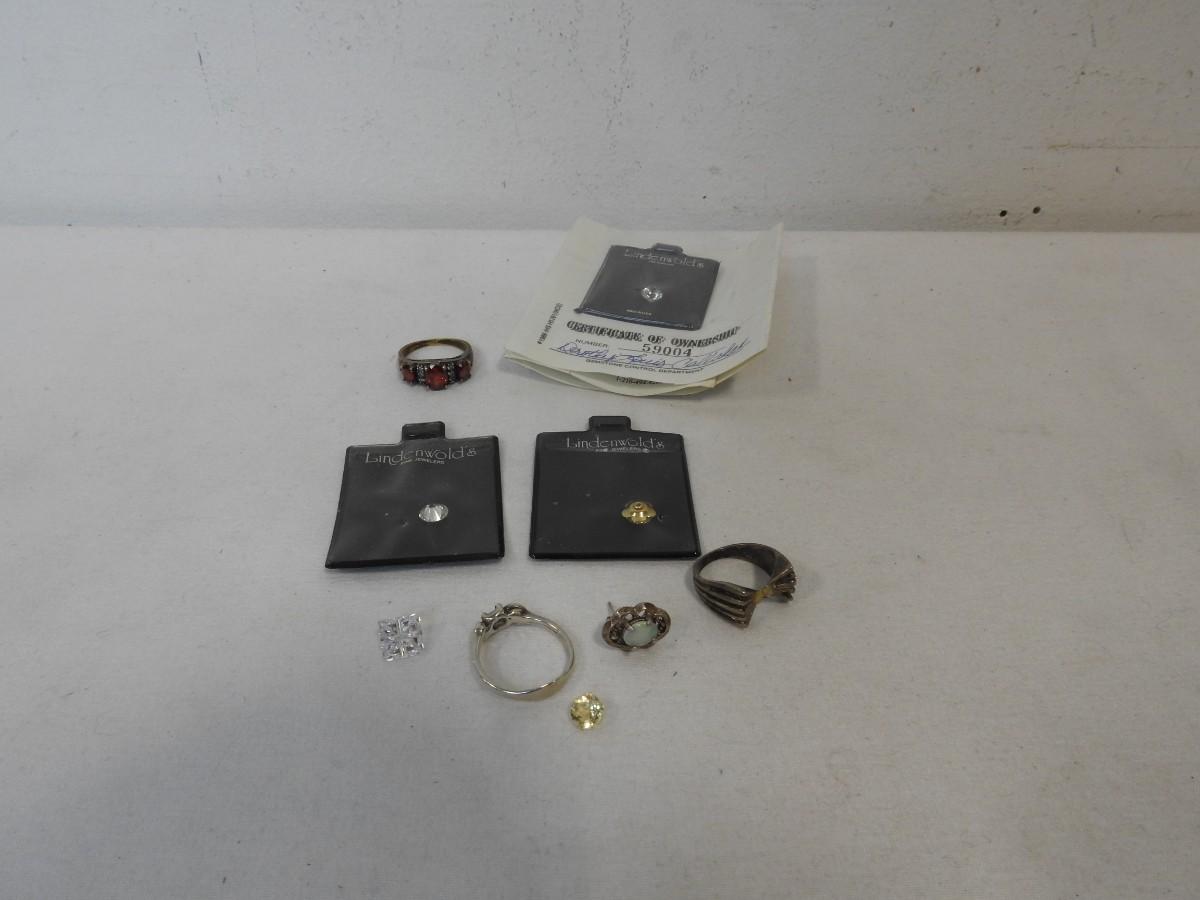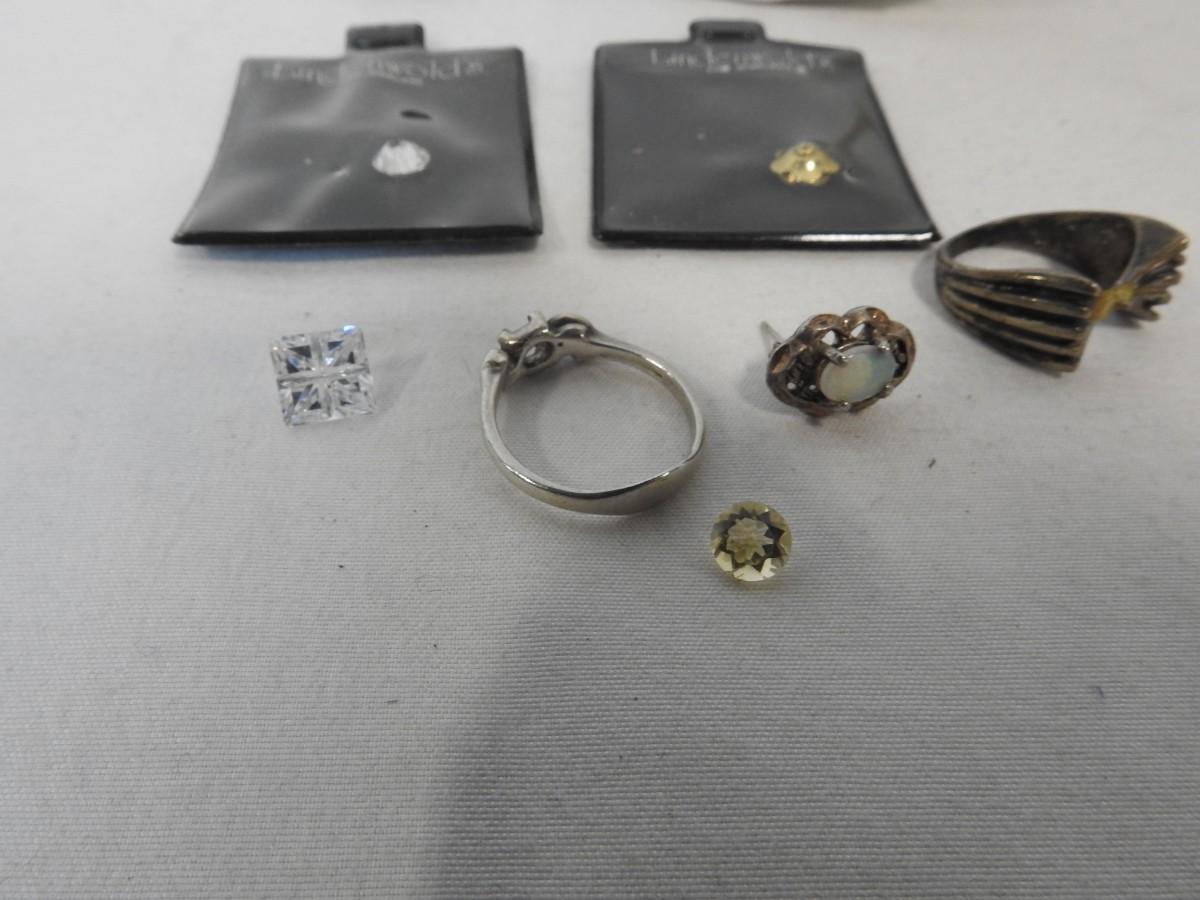 Jewelry Lot: 2 Sterling Silver Rings Missing Stones, 1 Opal Earring, 1 Costume Ring, 1 Cubic Zirconia+4 unknown Pieces