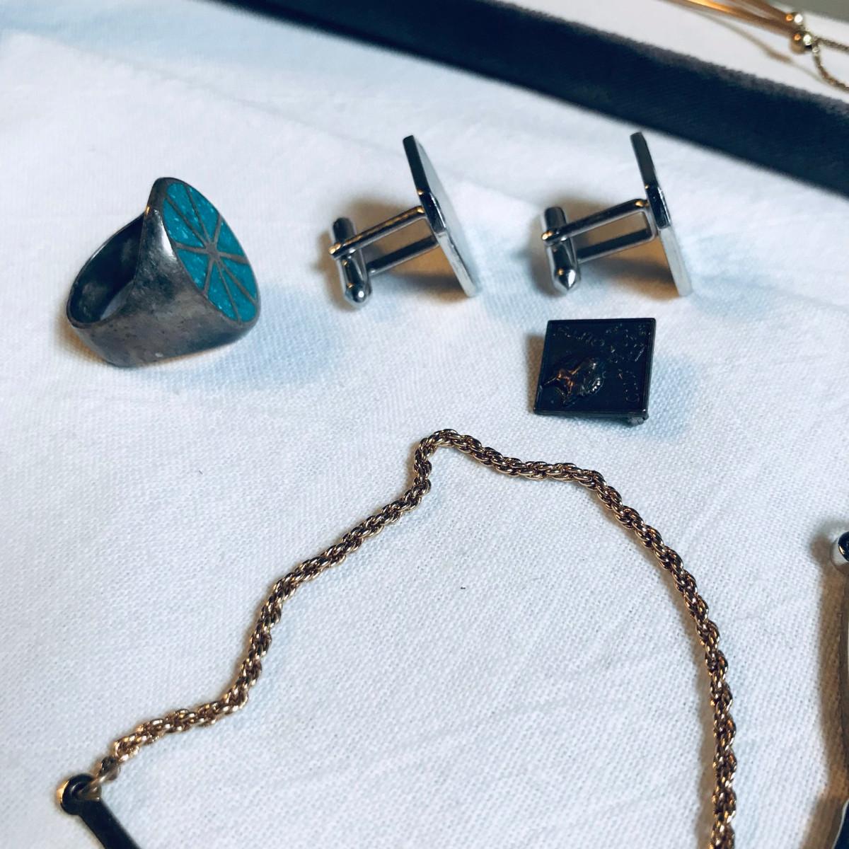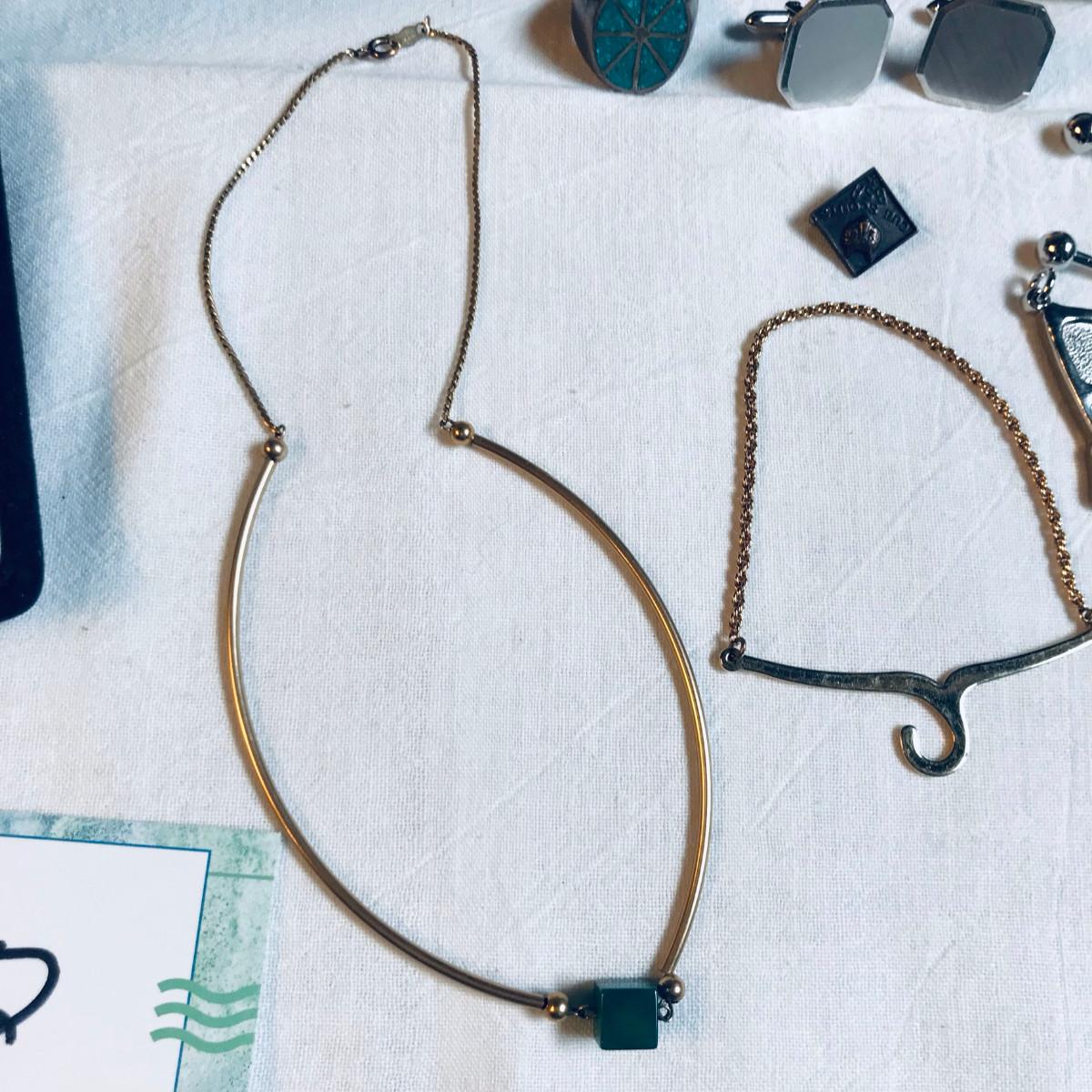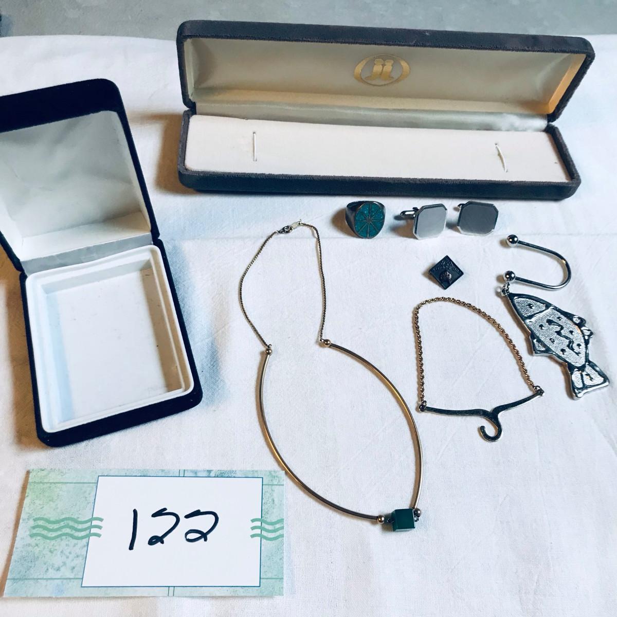 Gold filled necklace w/ chrysophase, sterling silver native american ring, Boy Scout pin