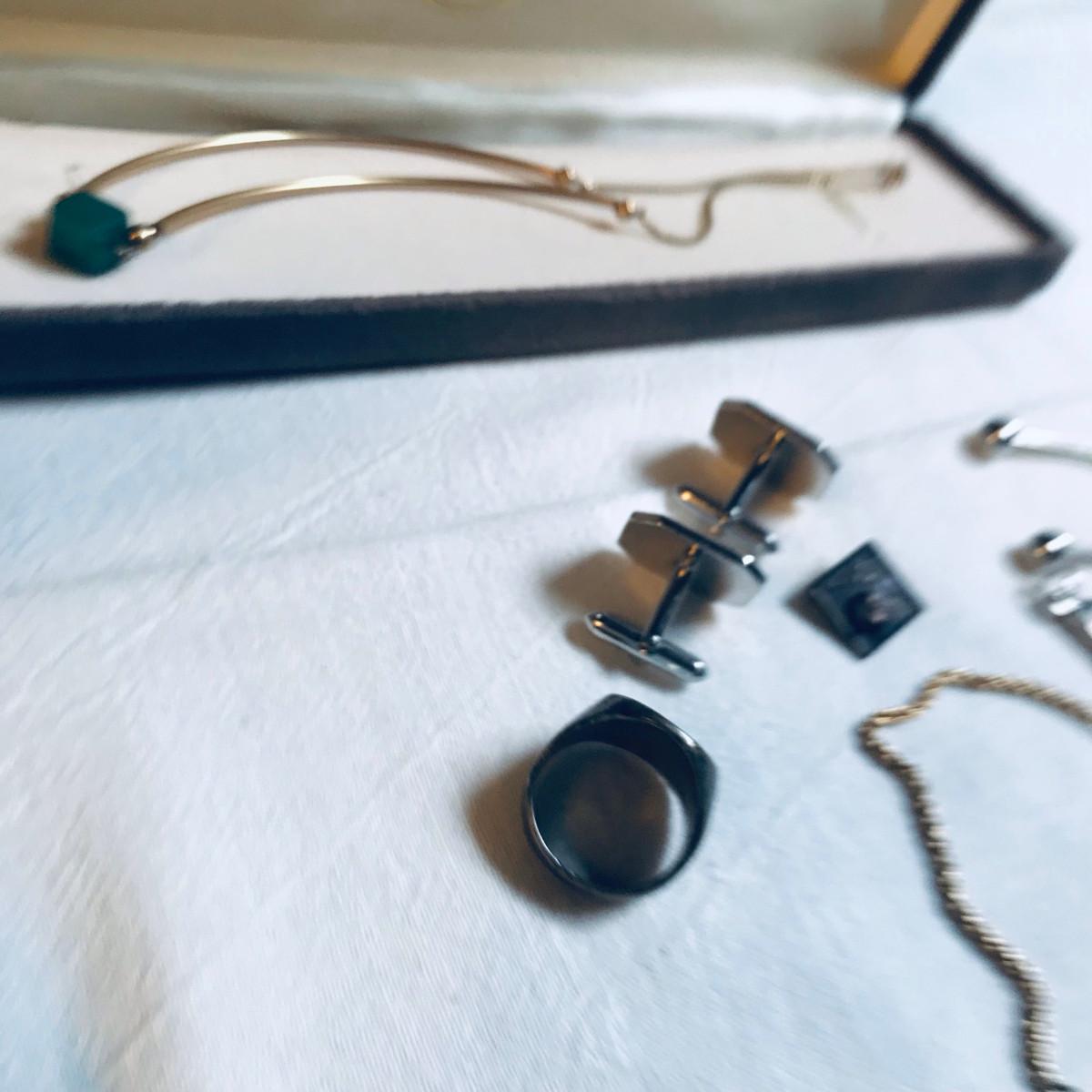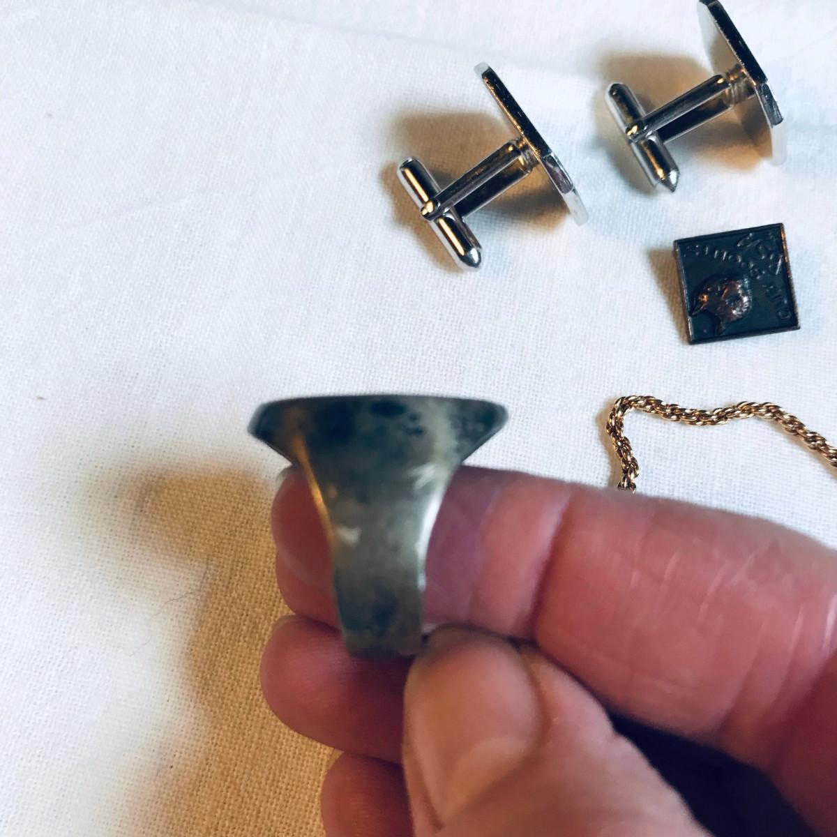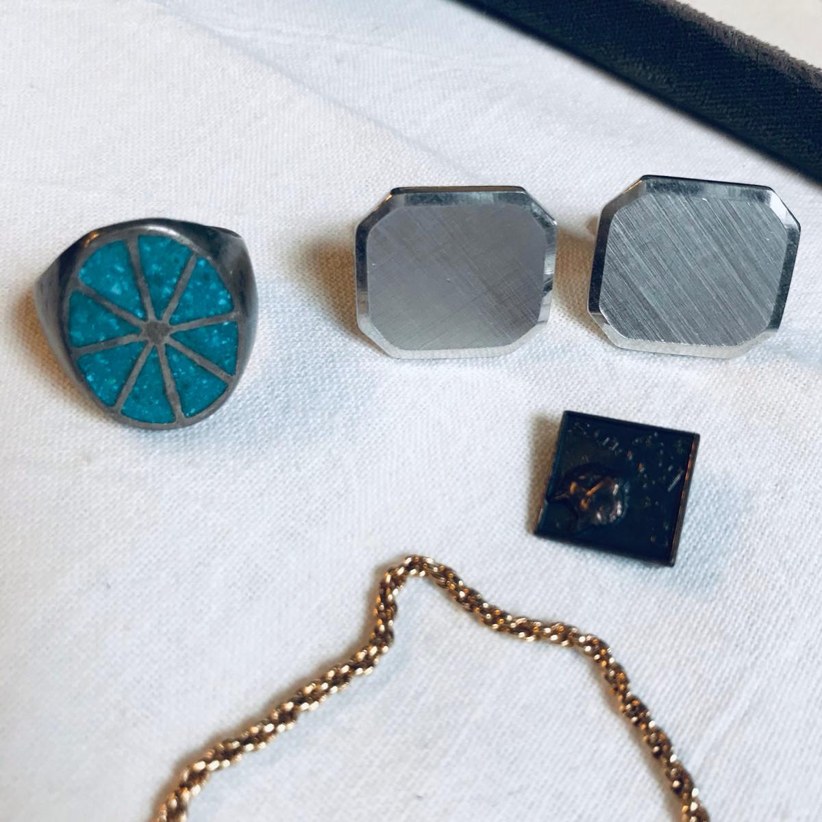 Gold filled necklace w/ chrysophase, sterling silver native american ring, Boy Scout pin