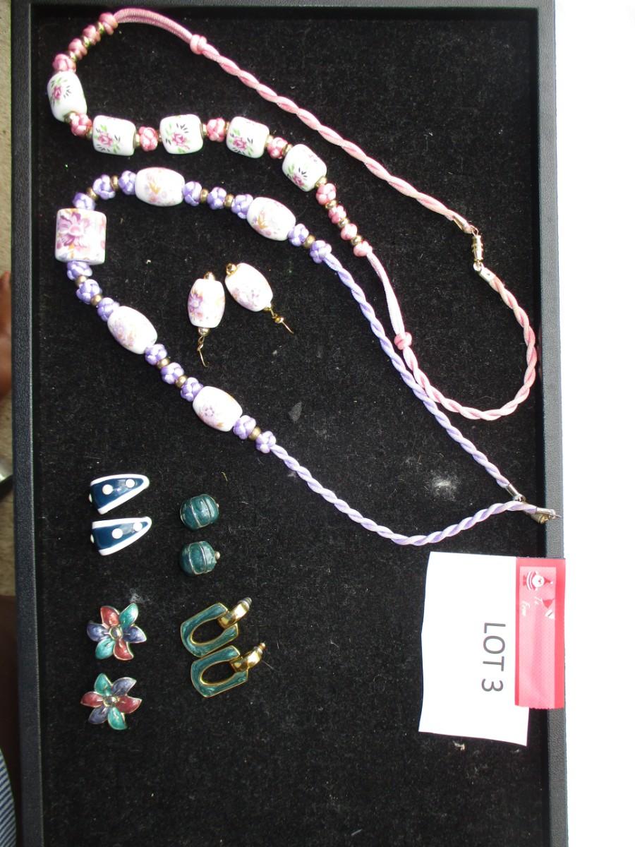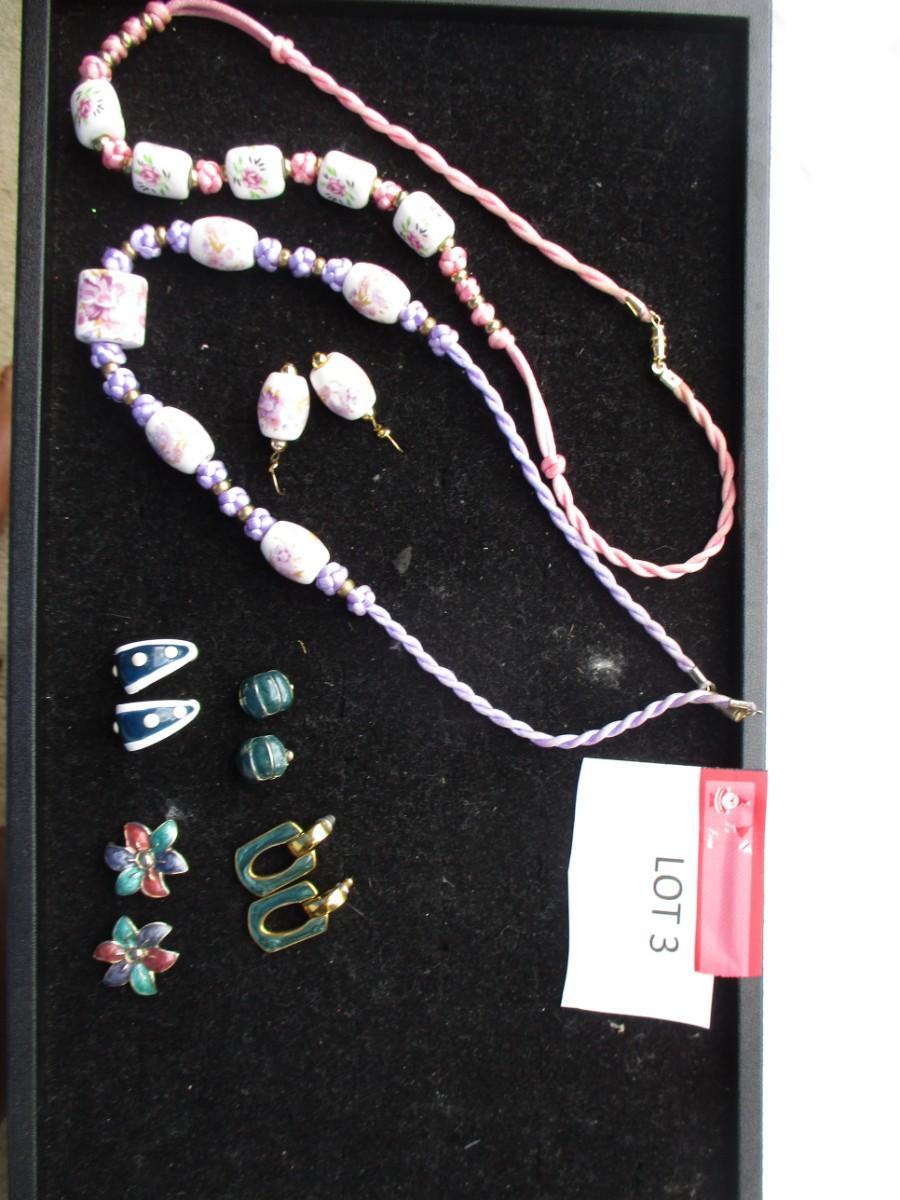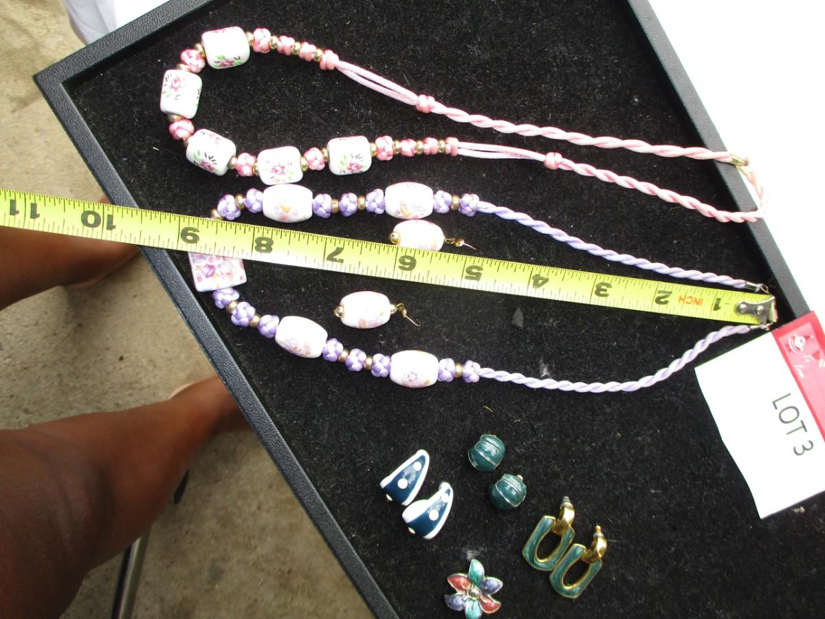 2 rope necklaces Pink & Purple. pierced earrings. 5pair