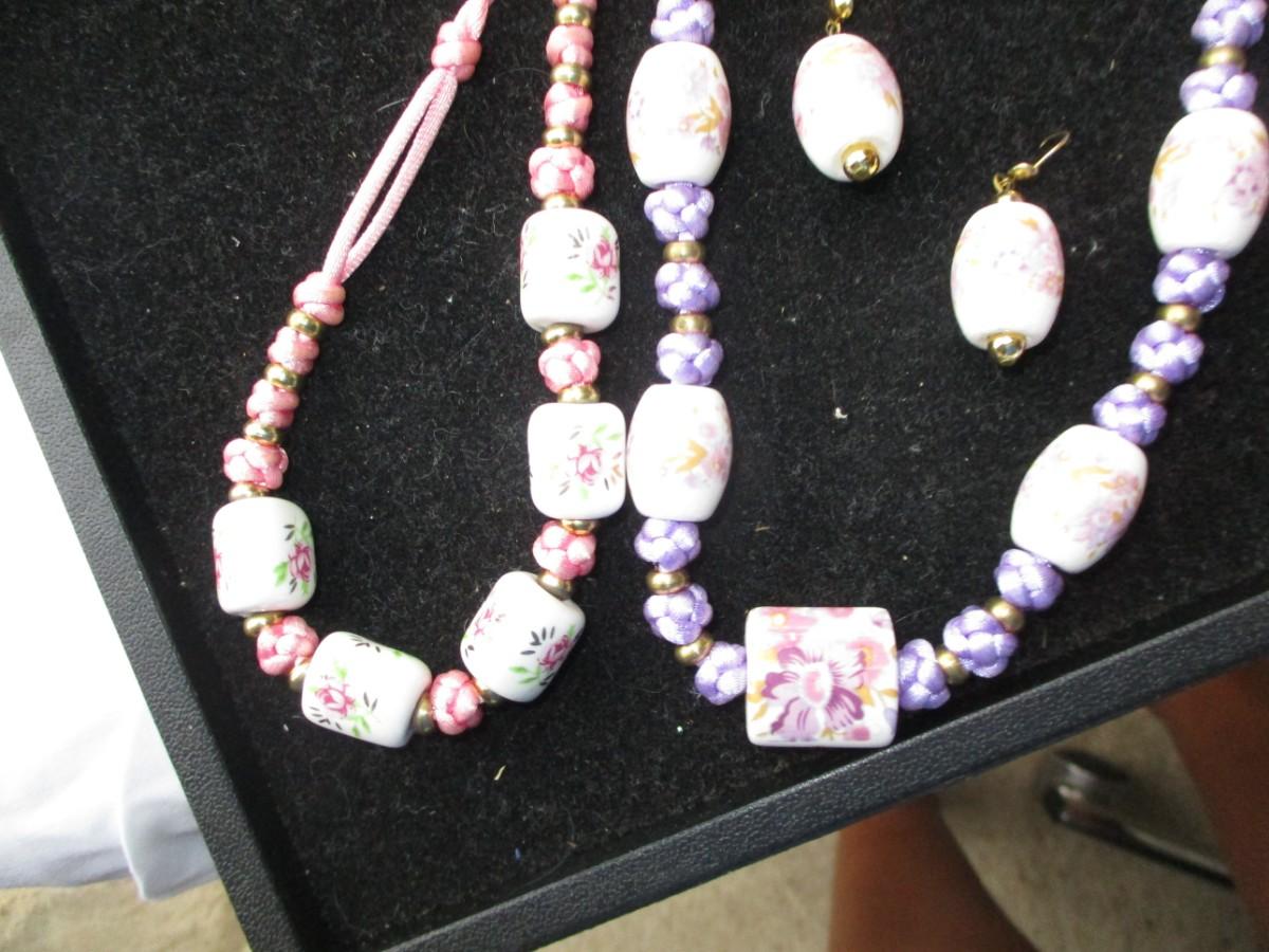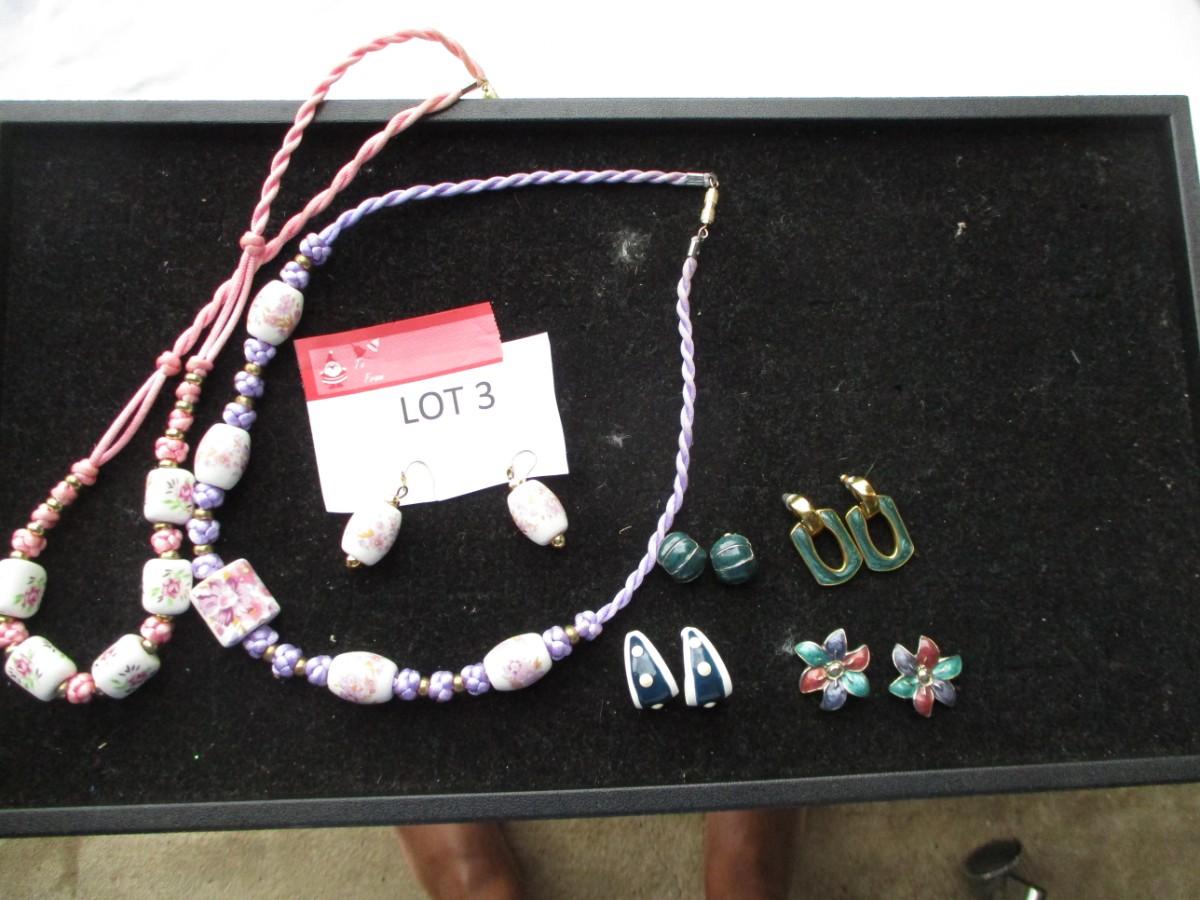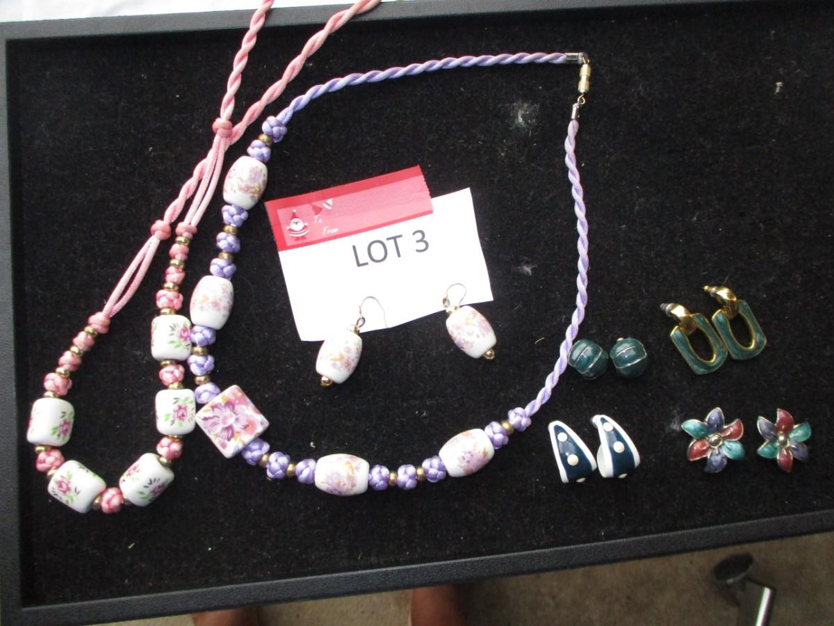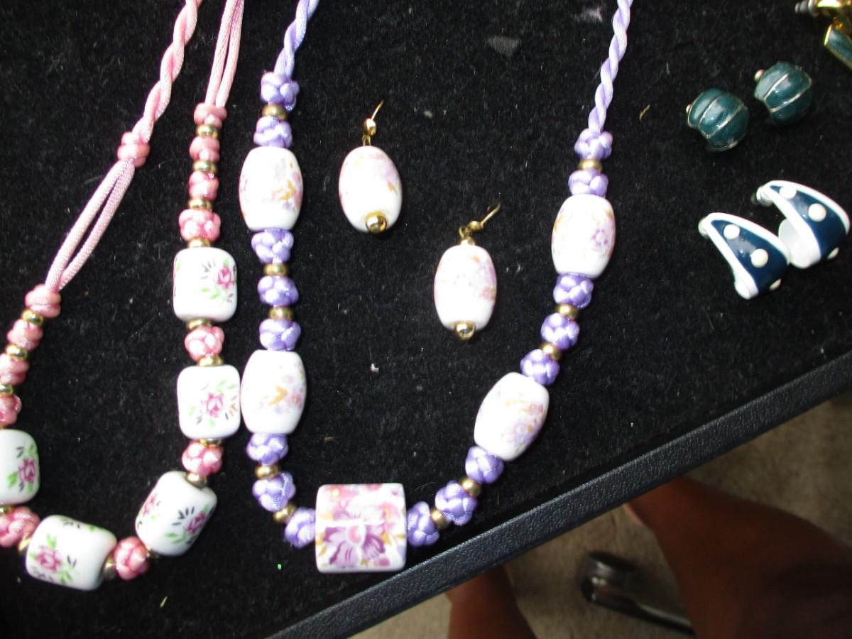 2 rope necklaces Pink & Purple. pierced earrings. 5pair