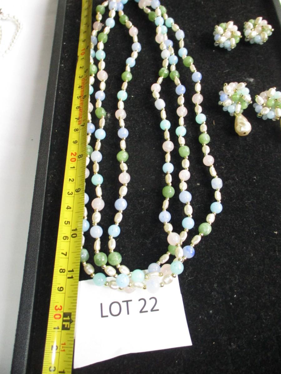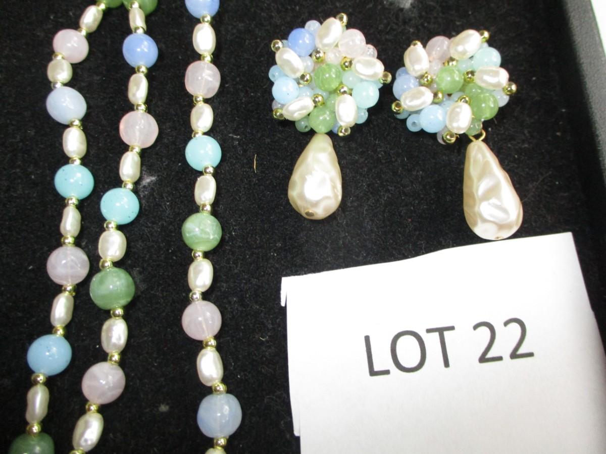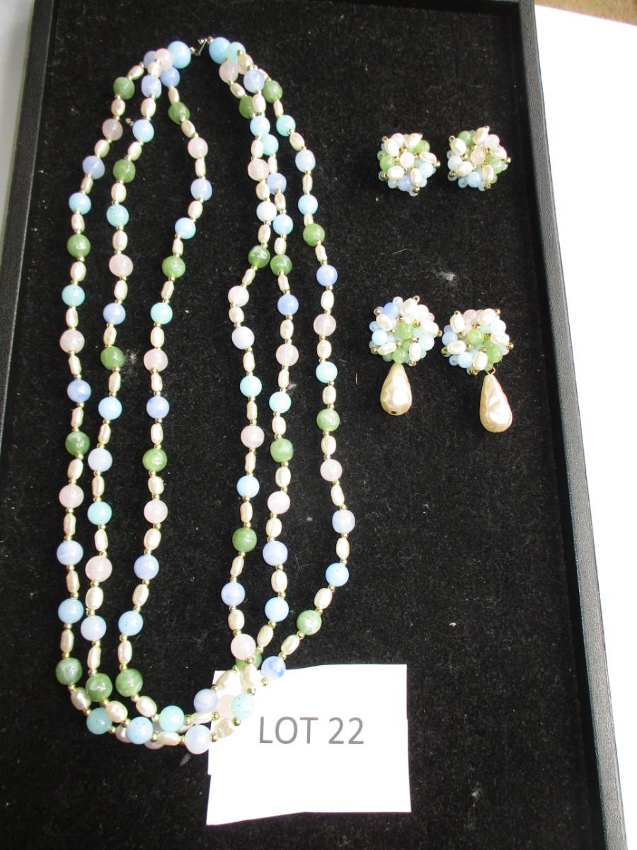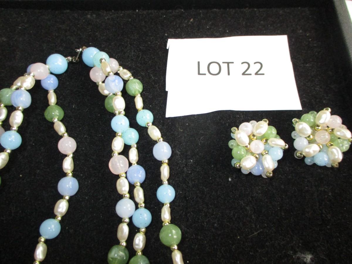 Plastic beaded necklace w/ 2pr matching earrings