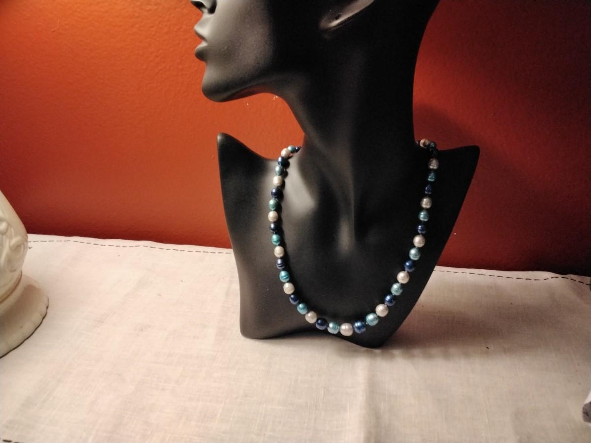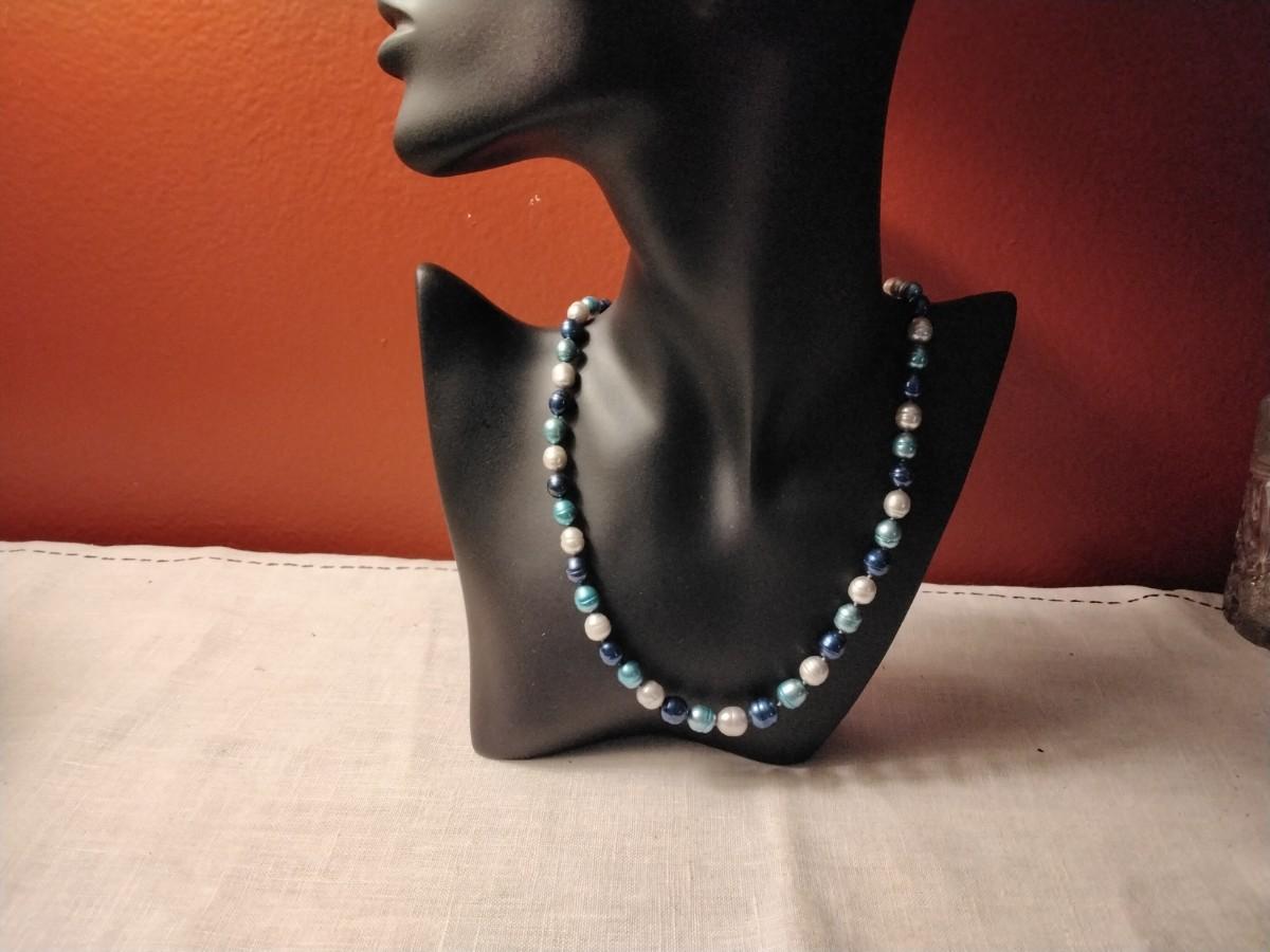 20" Blues and Grays Graduated Honora Pearl Necklace 925 Clasp