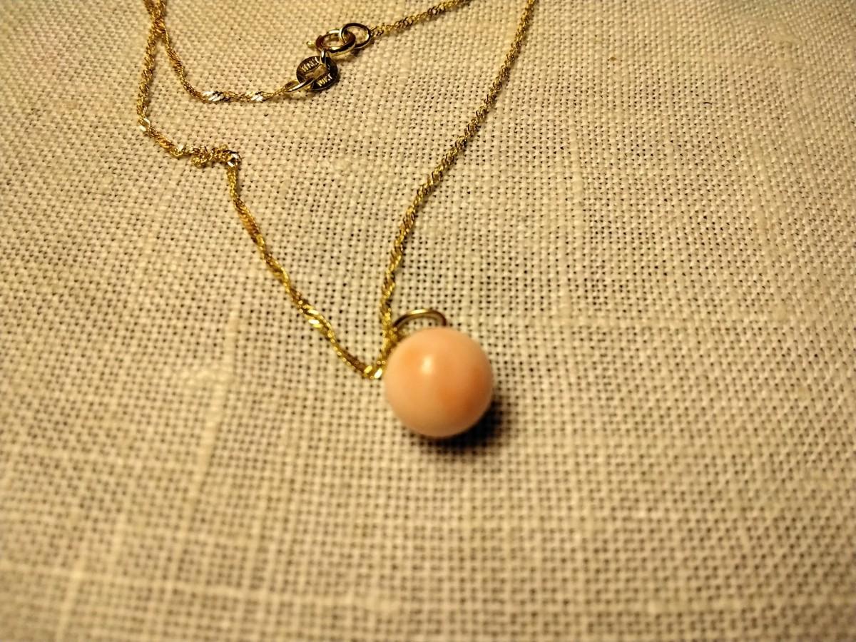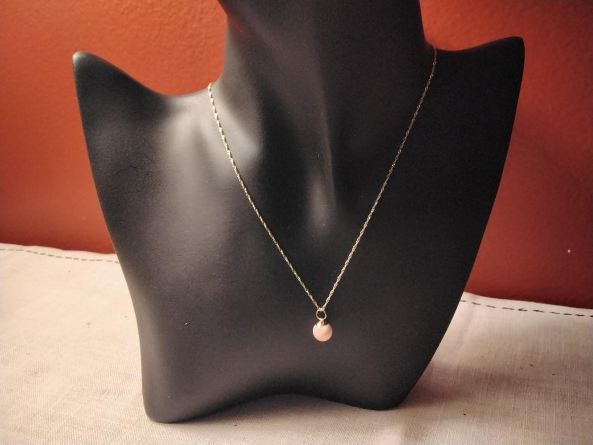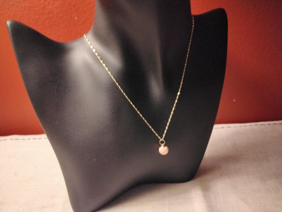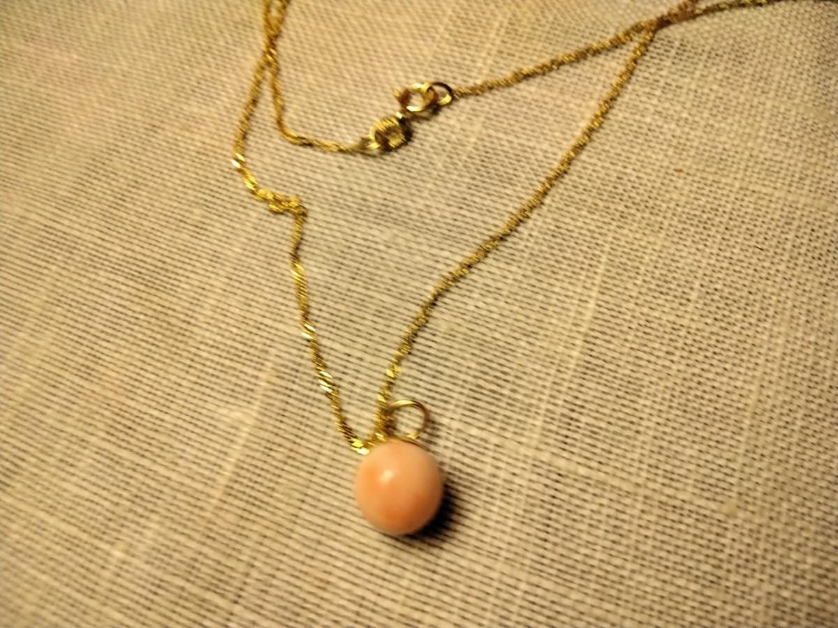 Fine 7 1/2 MM Pink Cloud Angel Skin Coral Drop extra Large 14kt hoop on 14k solid gold chain