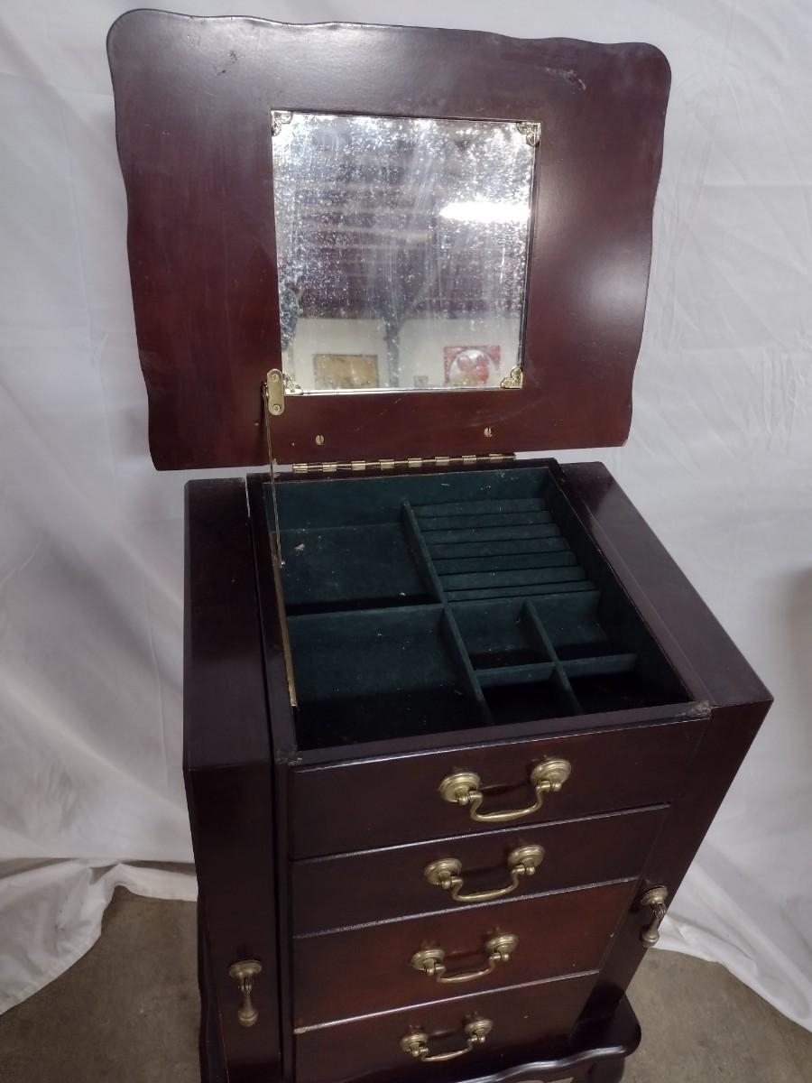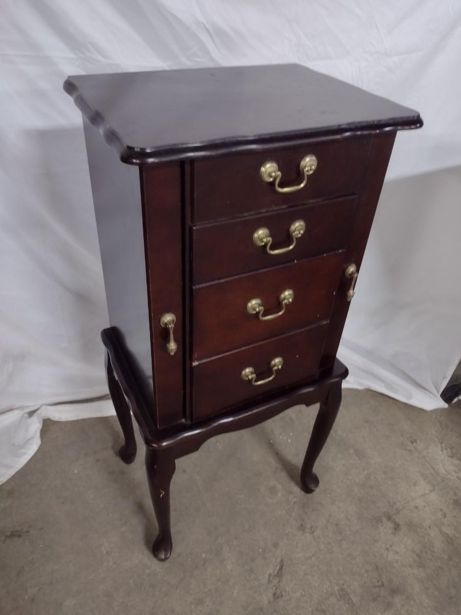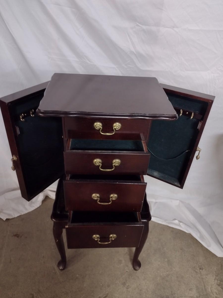 Mahogany Finish Jewelry Tower will need to be cleaned.