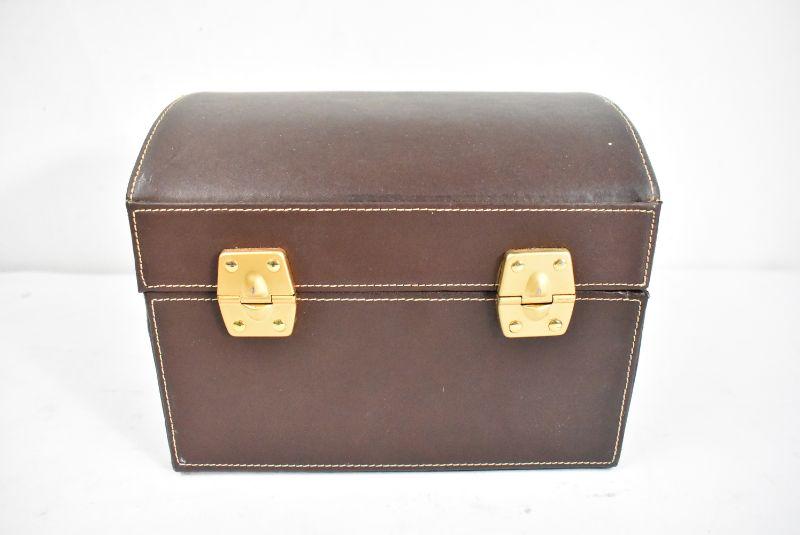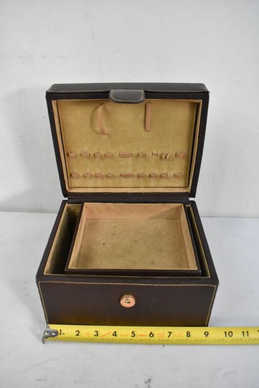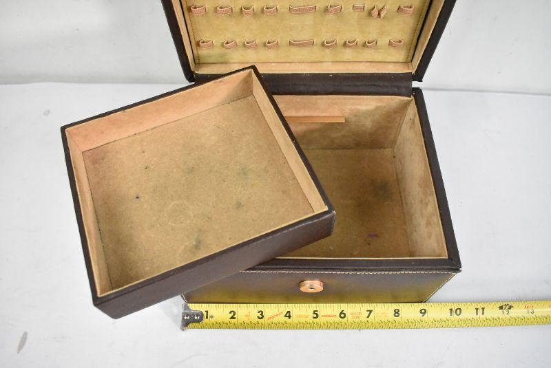 Jewelry Box, Brown Faux Leather, Tan Velvet-Like Inside - Needs Cleaning