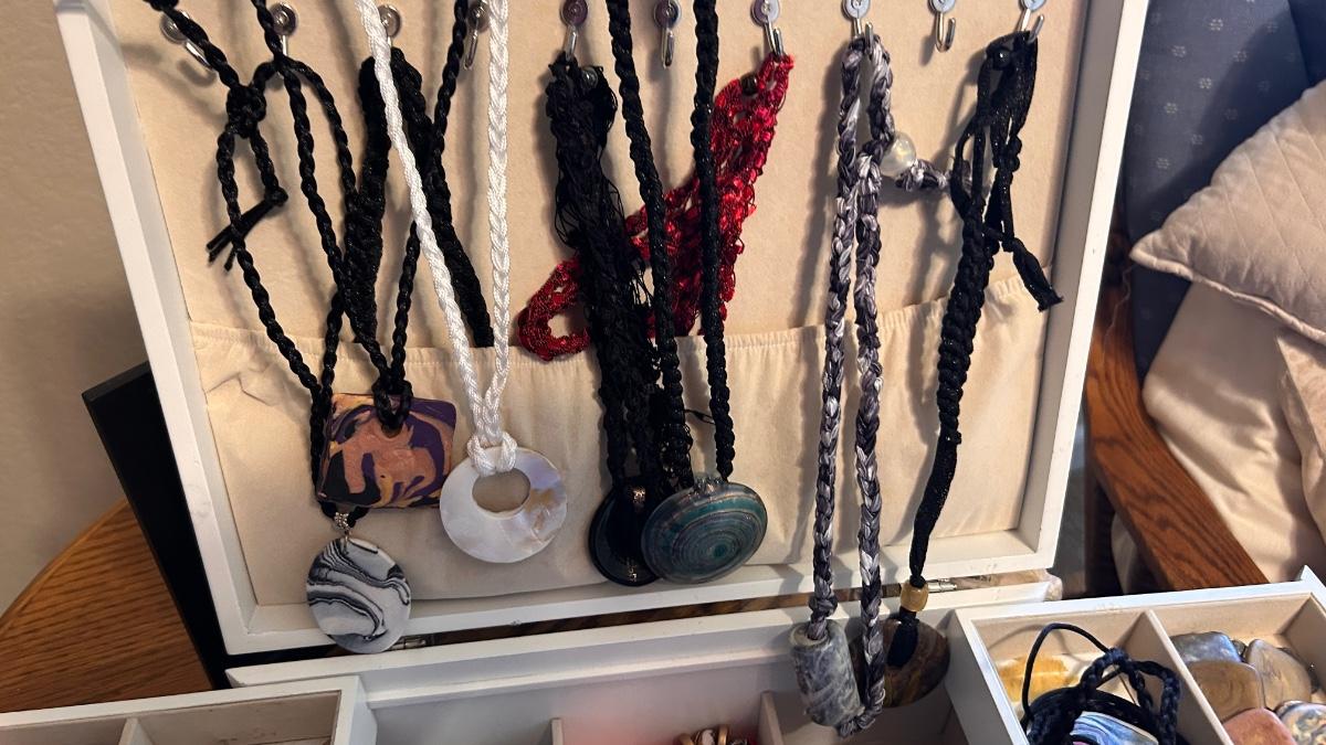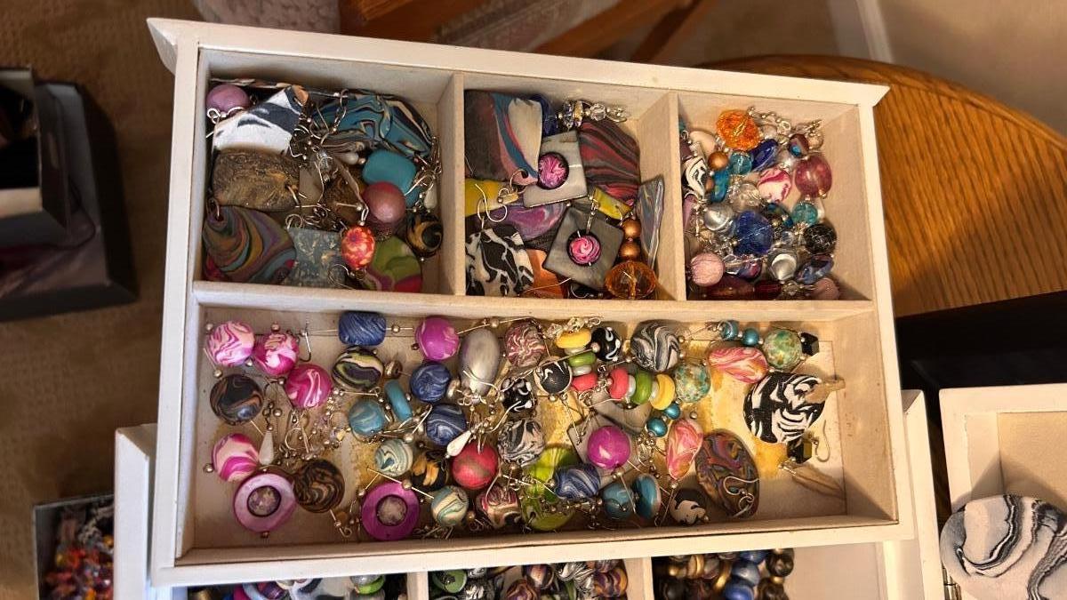 JEWELRY BOX FILLED WITH BRACELETS. EARRINGS AND NECKLACES