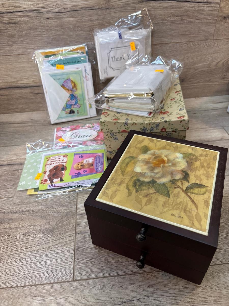 Jewelry box & misc cards/envelopes
