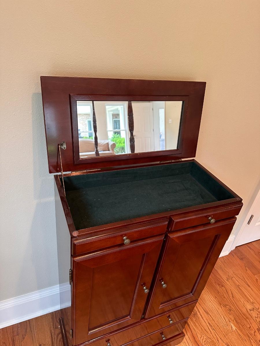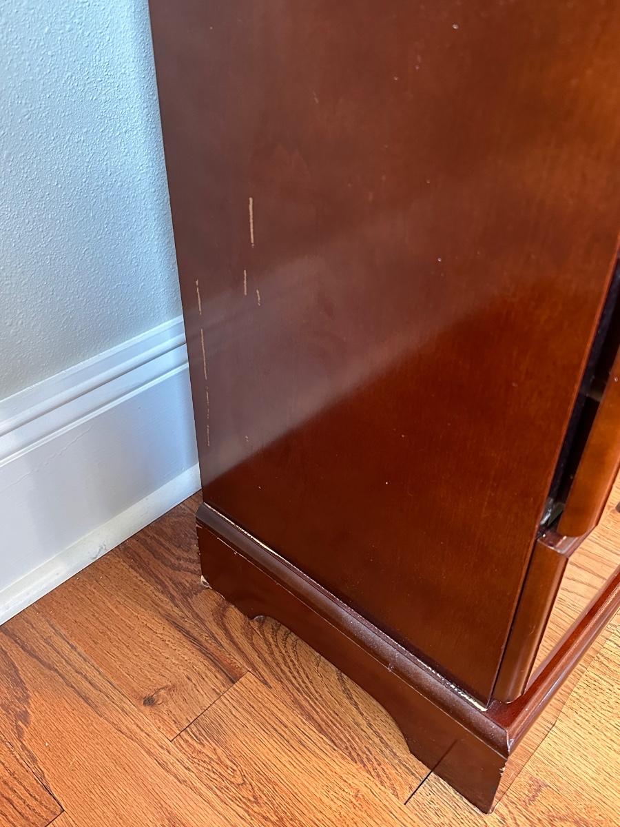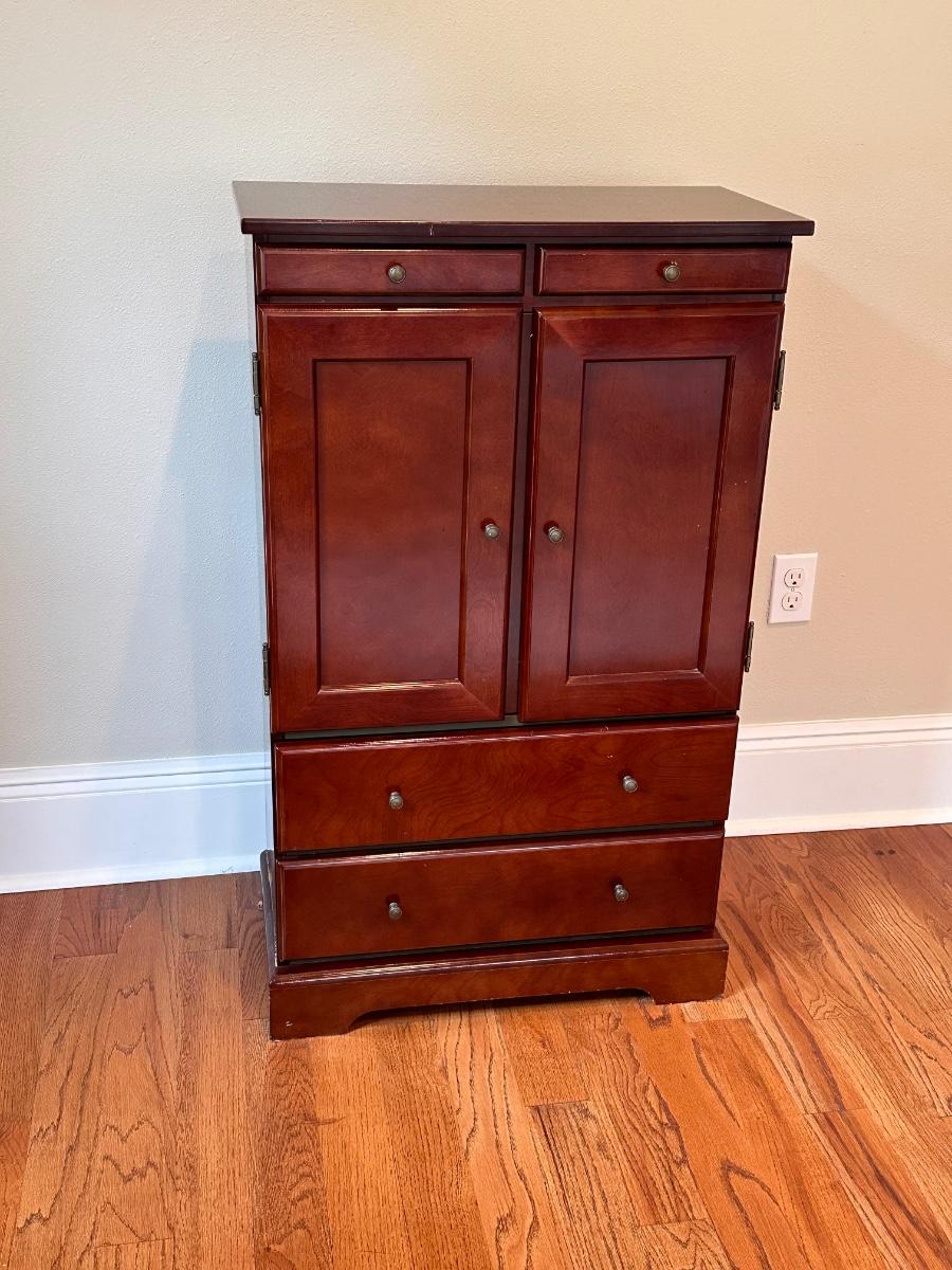 8 Drawers ~ laminated ~ has wear from use ~ Has minor surface scratches and some minor knicks ~ 40.5" H x 24.5" W x 12" D ~ No brand name found