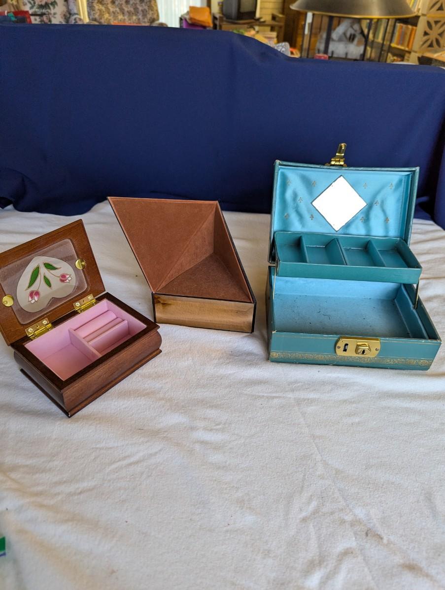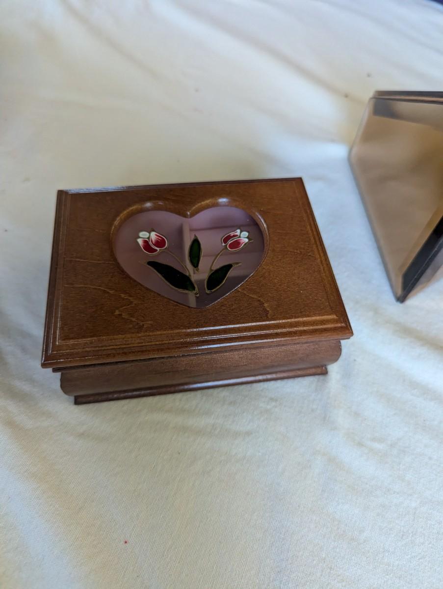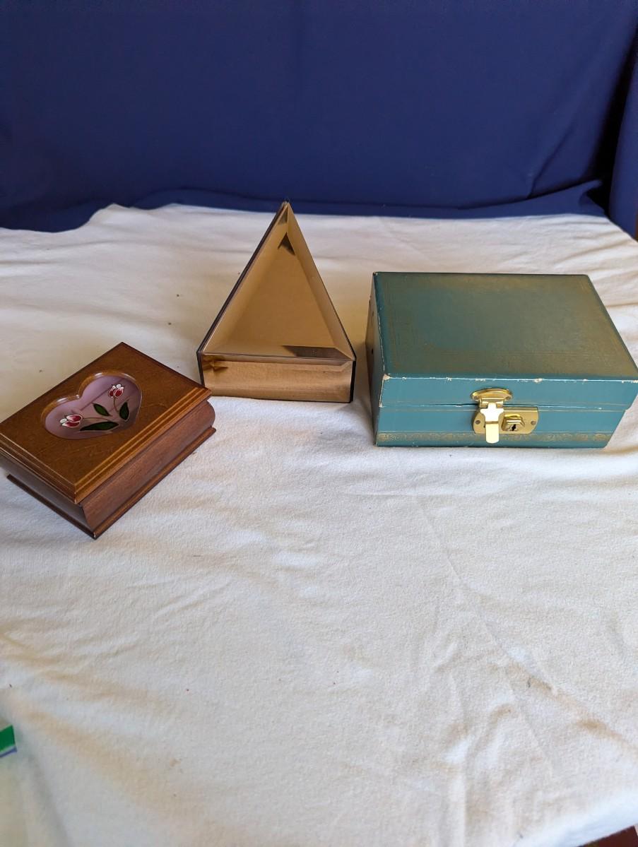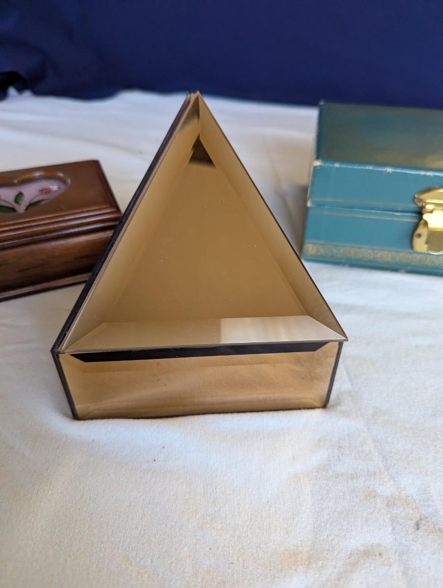 Vintage jewelry box green in color, small wooden jewelry box, prism shaped music jewelry box SILVESTRI.