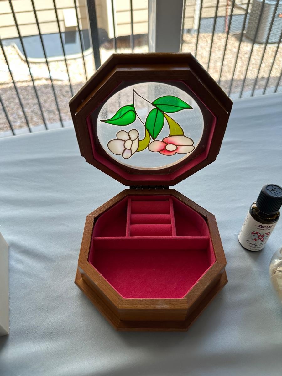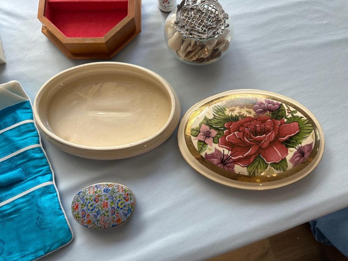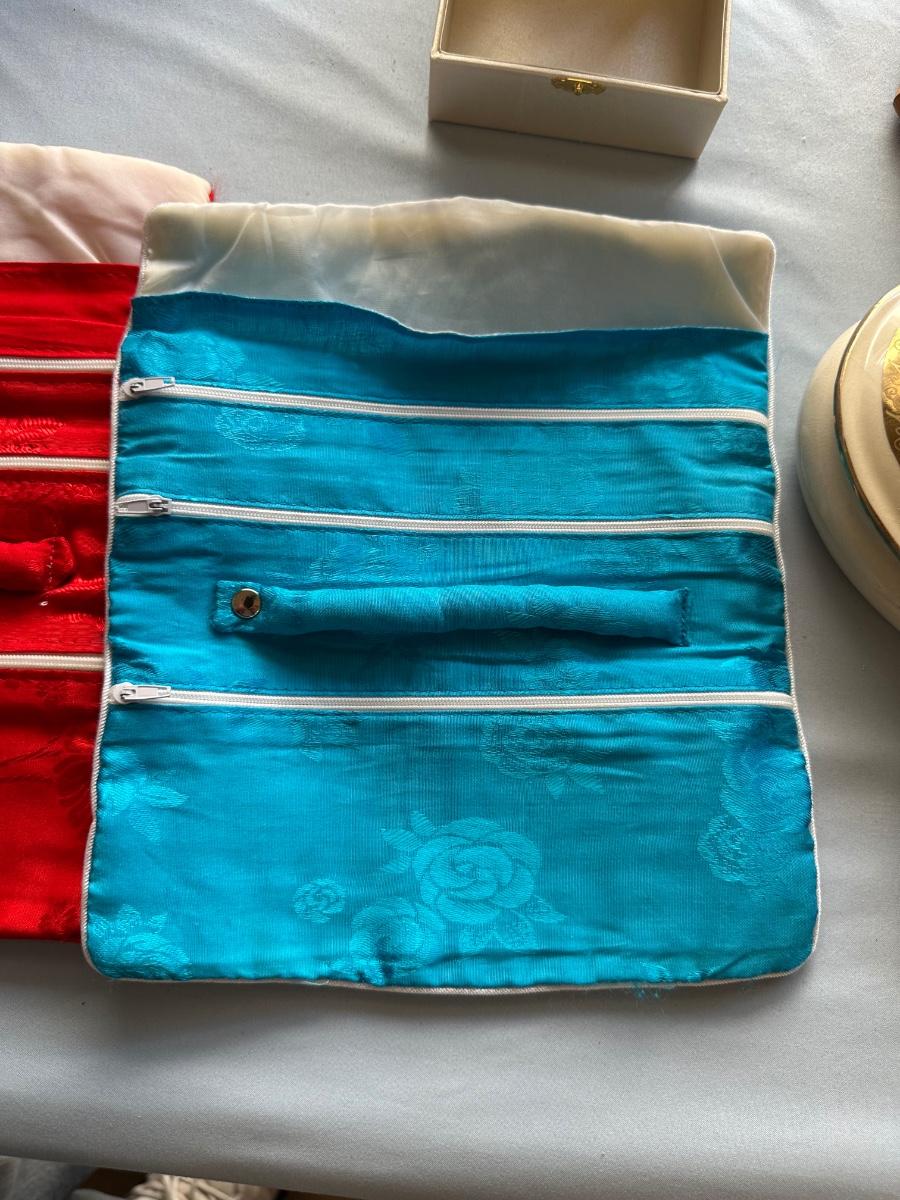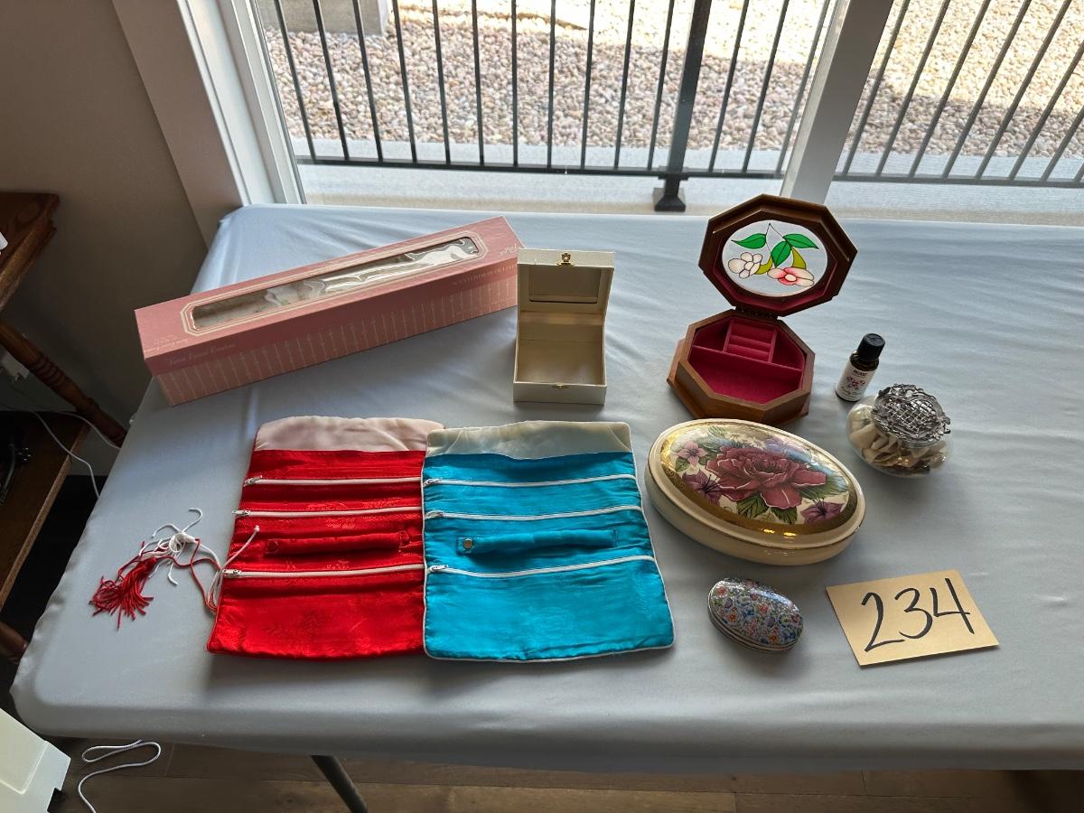 JEWELRY BOXES AND BAGS, ONE IS A MUSIC BOX