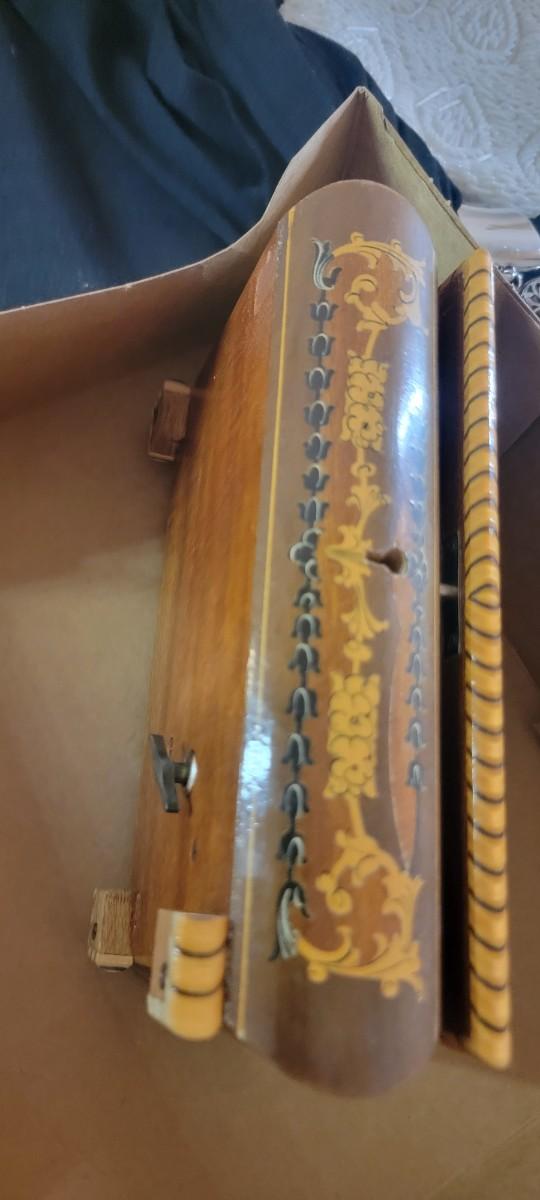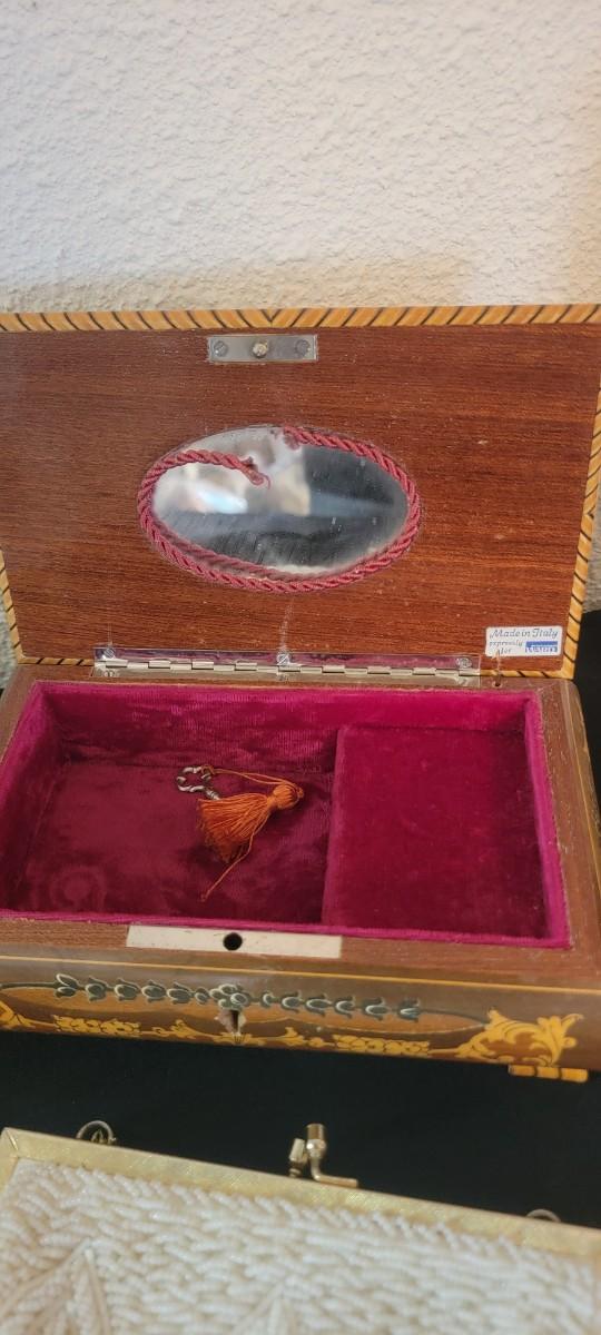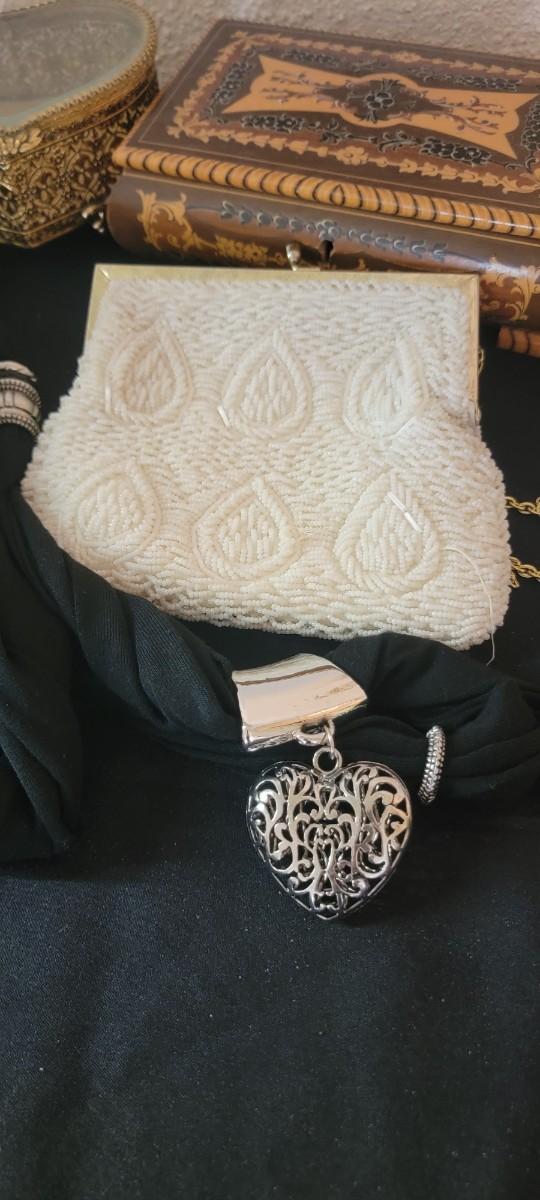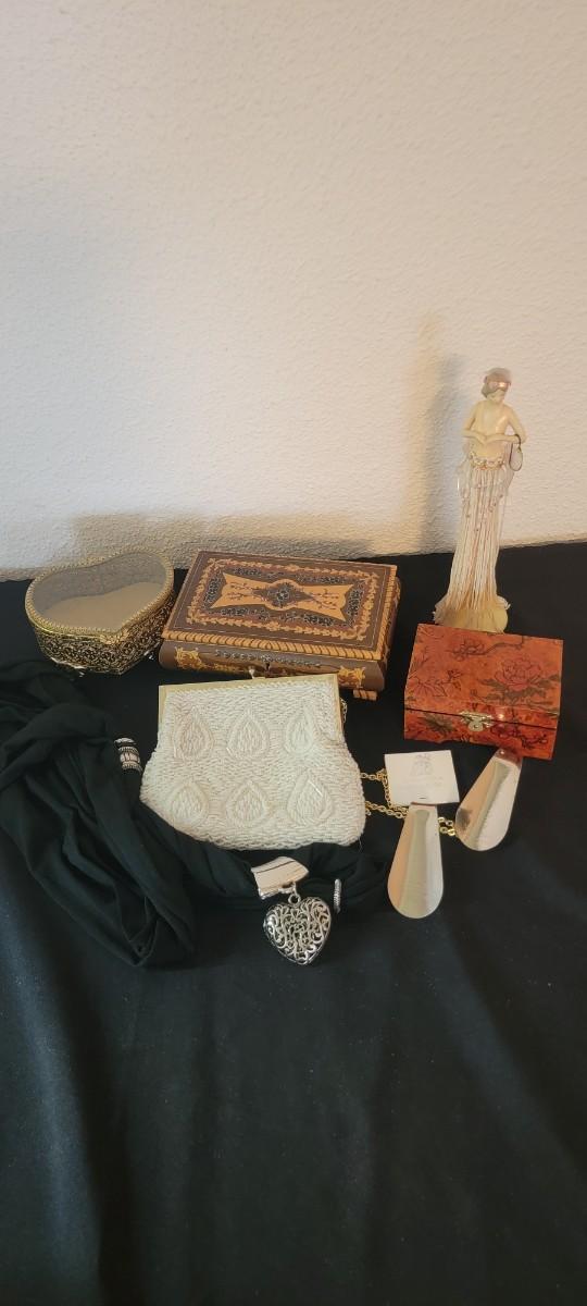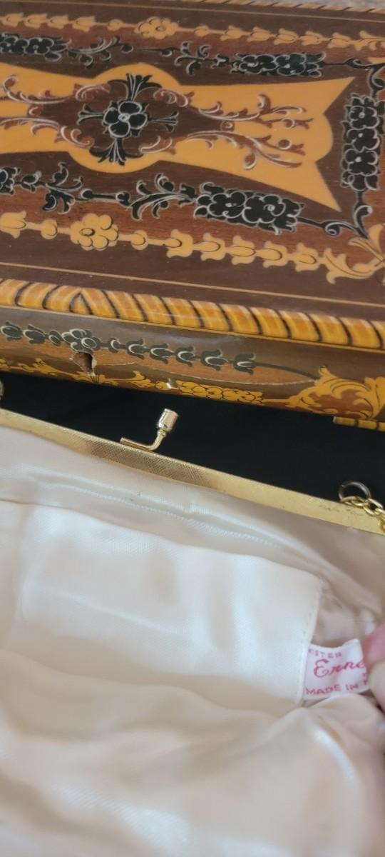 Made in Italy jewelry/music box (missing foot) box, beaded evening bag, plus