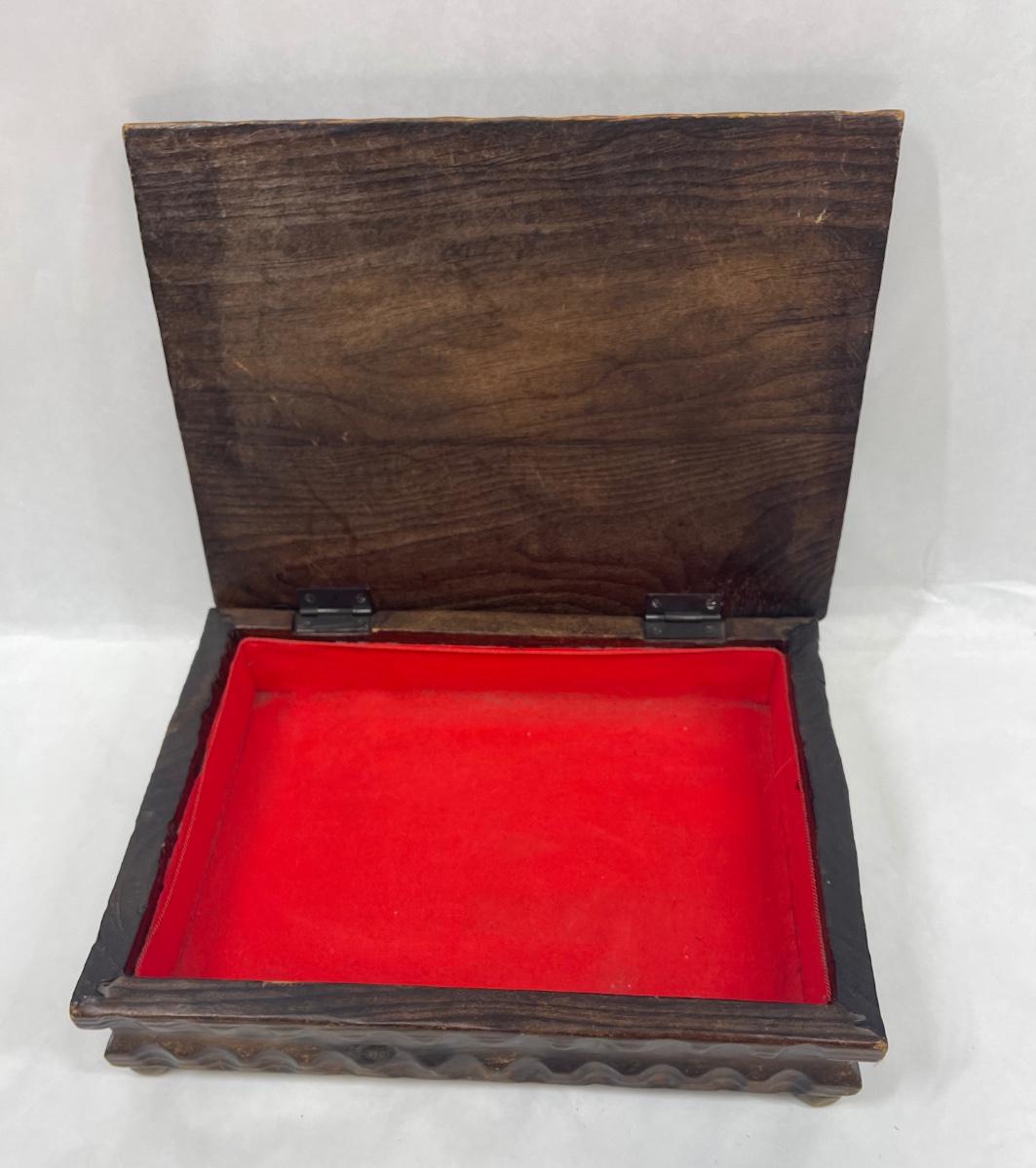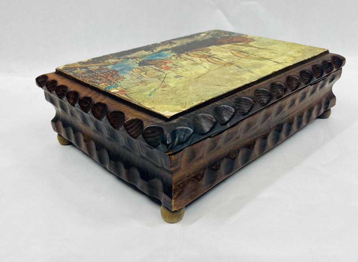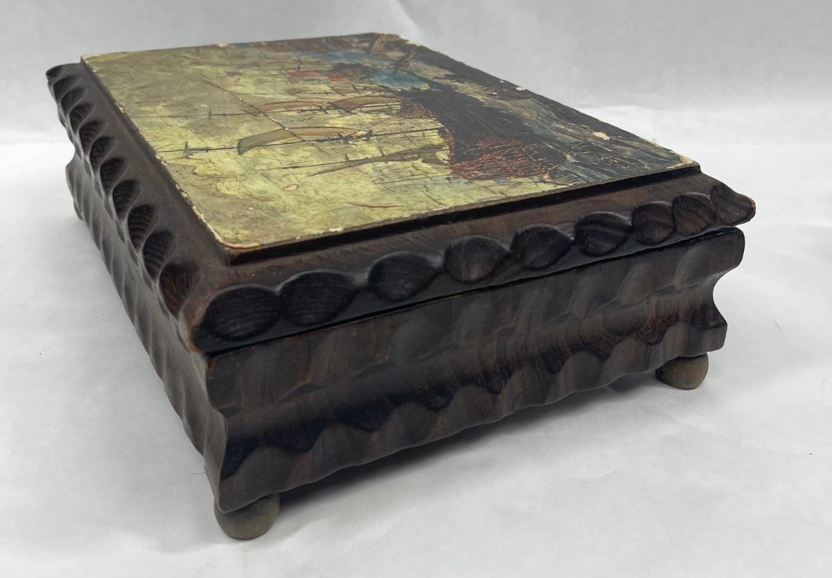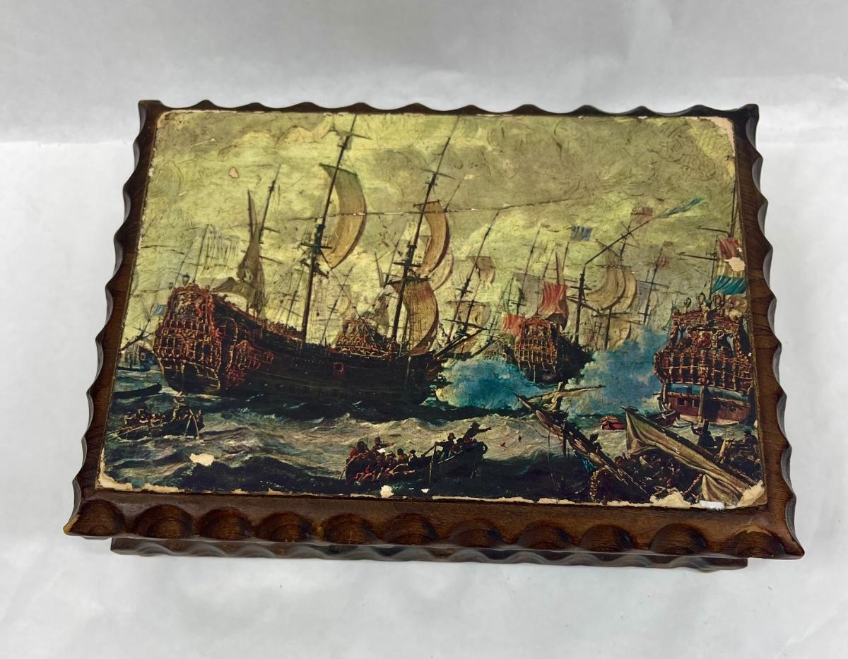 Vintage Carved Wood Hinged Box Jewelry Chest Sailing Ship image Nautical Decor