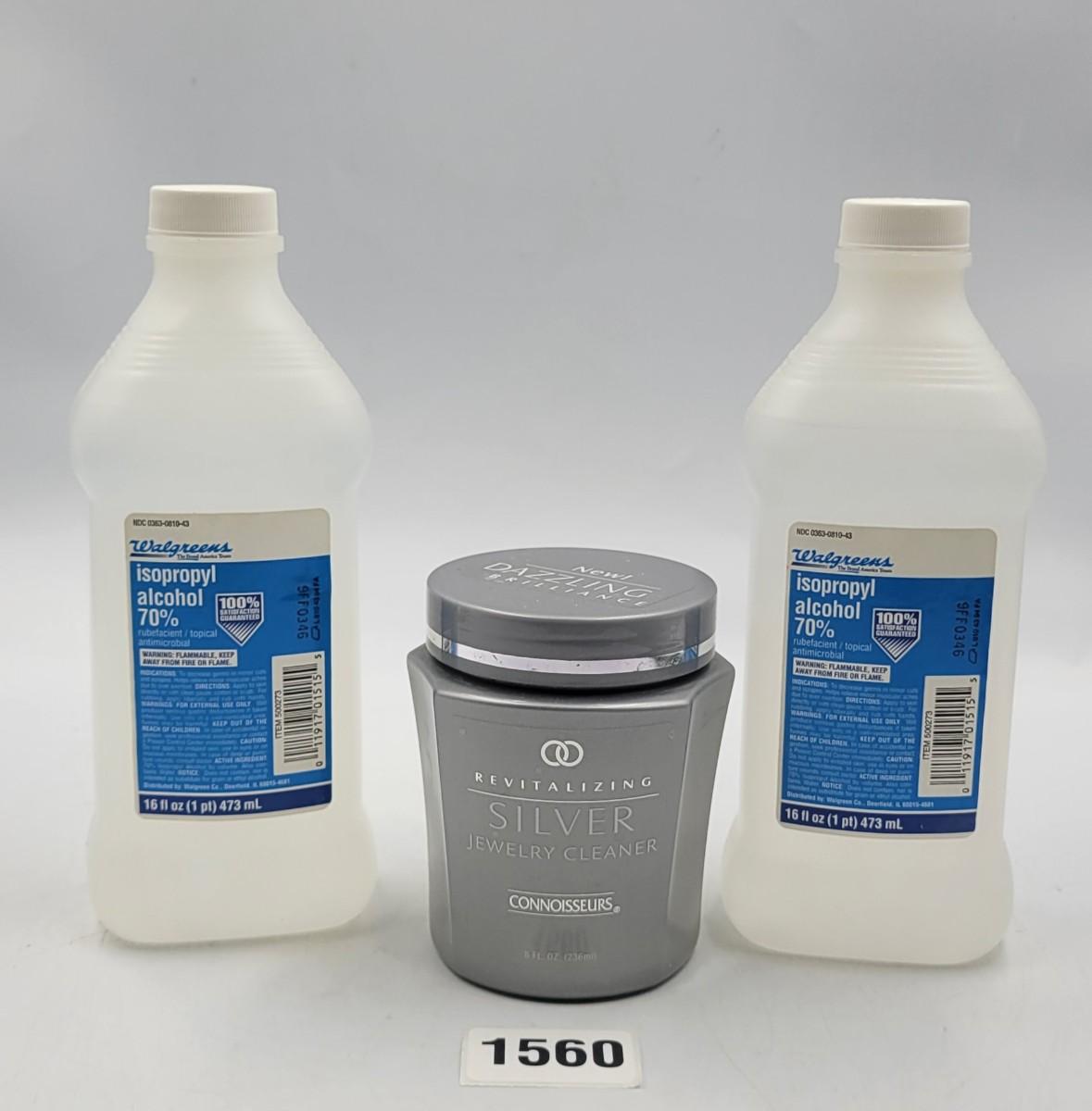 Includes two bottles of rubbing alcohol. All containers are full, or near full.
