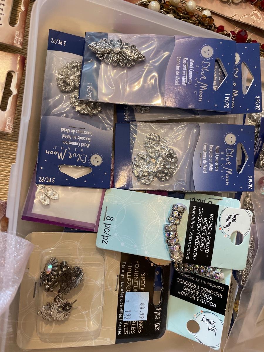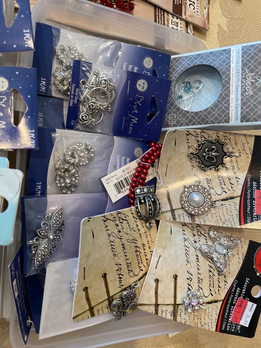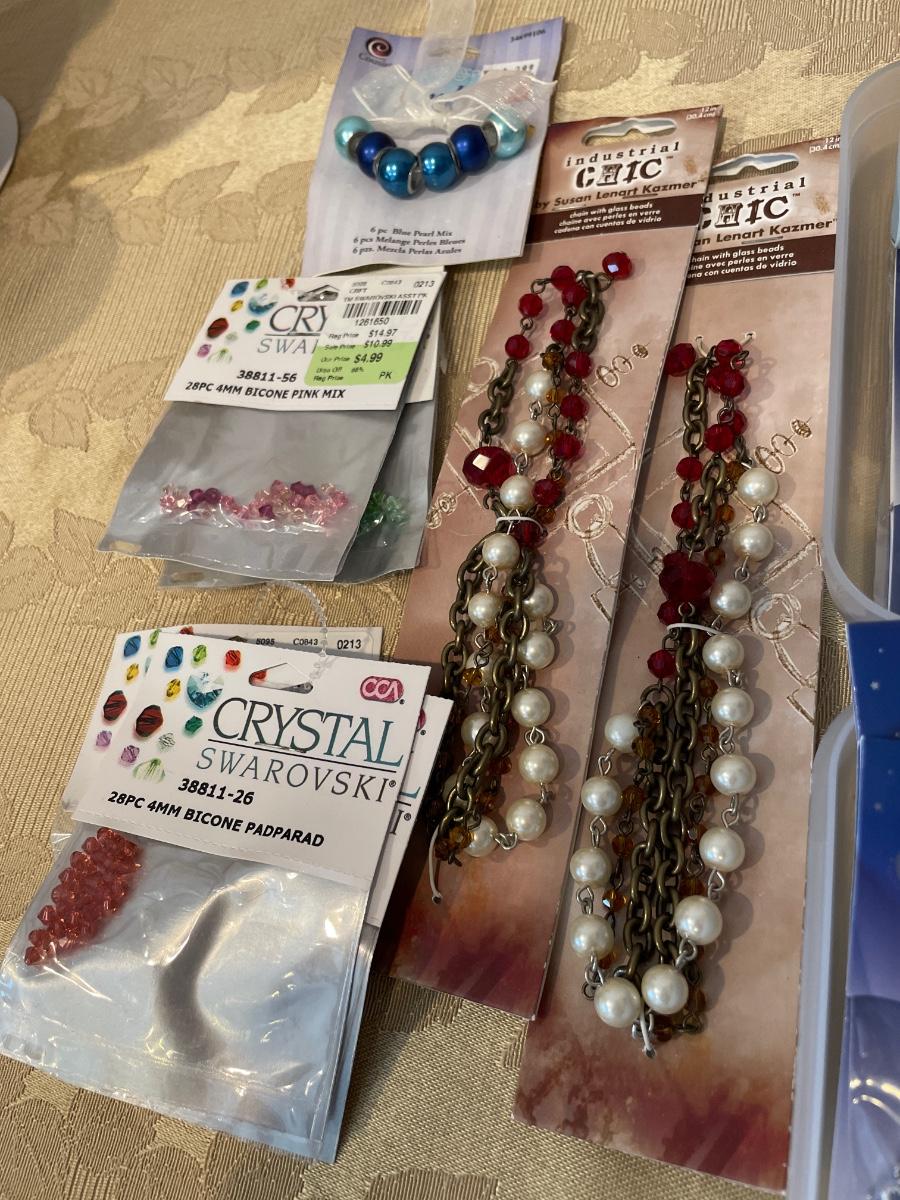 Multiple miscellaneous jewelry making items includes crystals, chains, beads