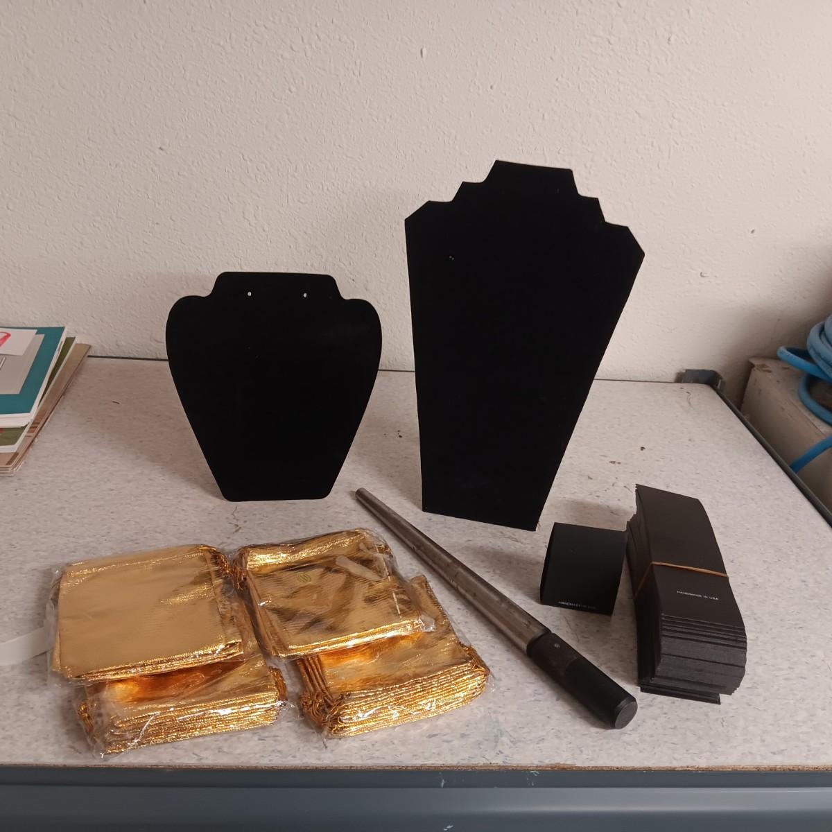 JEWELRY DISPLAYS, RING SIZER, DRAWSTRING BAGS AND EARRING CARDS