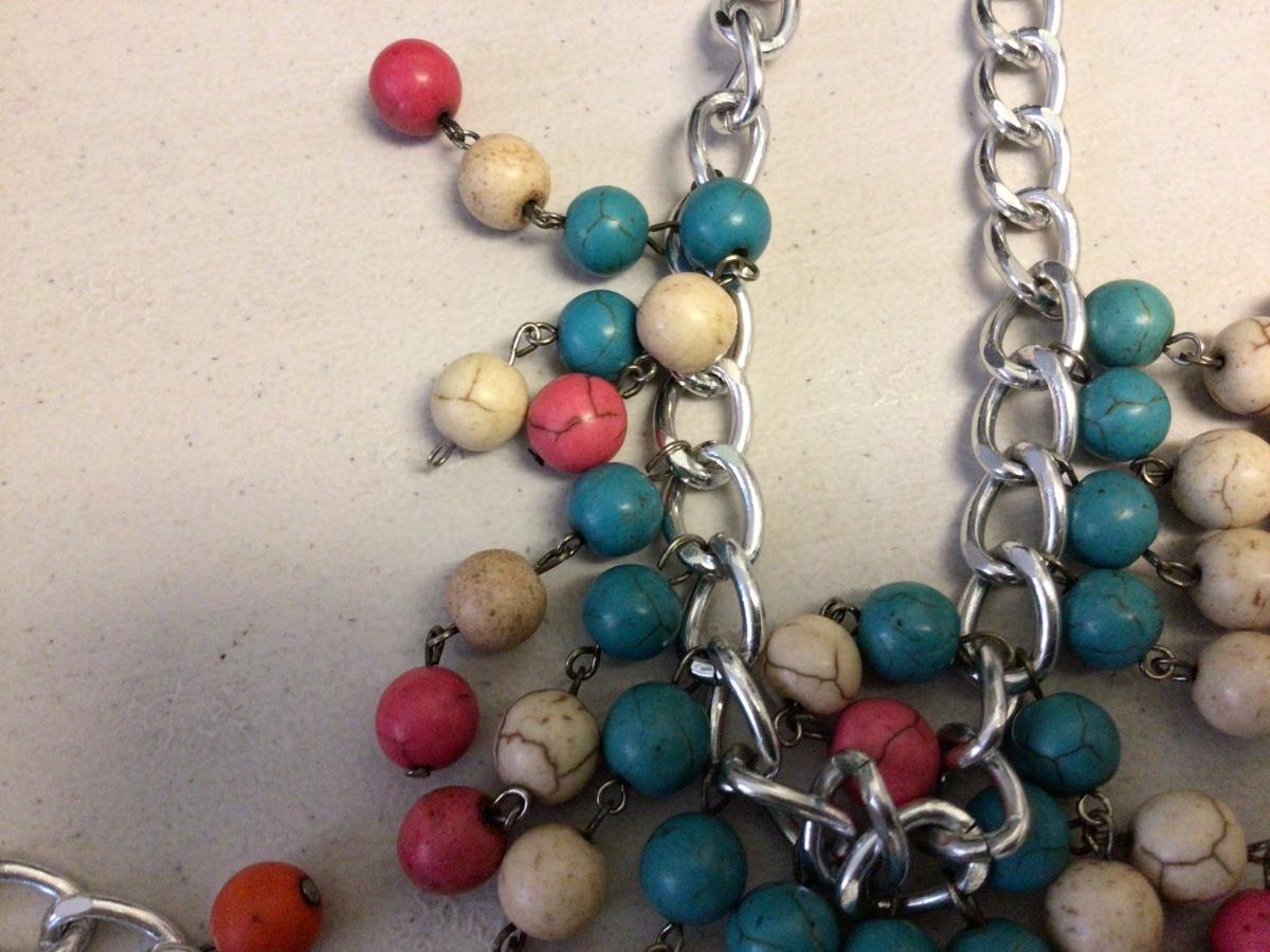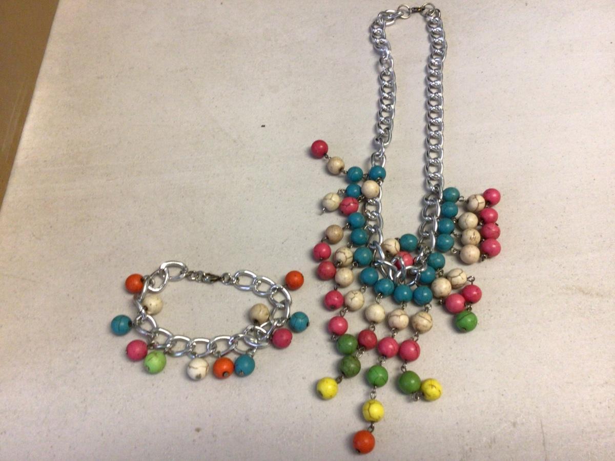 Fun multi color bead necklace and matching bracelet. The beads are older and has some cracking and needs cleaning. No makers mark. Very cute.