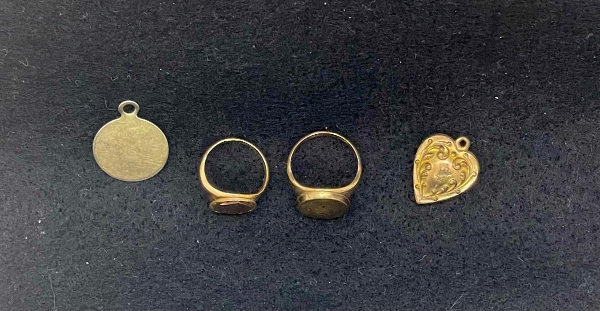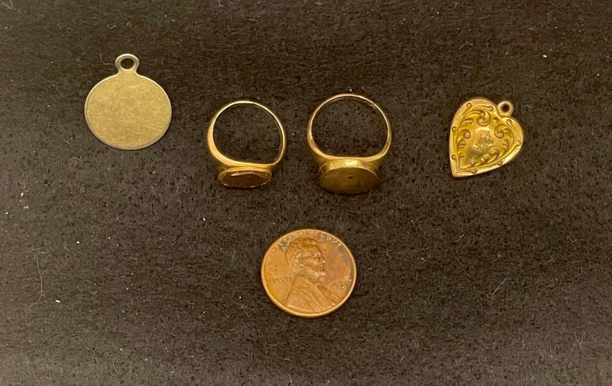 Jewelry Lot: (2) 10k Gold Fill Rings, (1) 12k Gold Charm, (1) Gold-tone Heart Charm