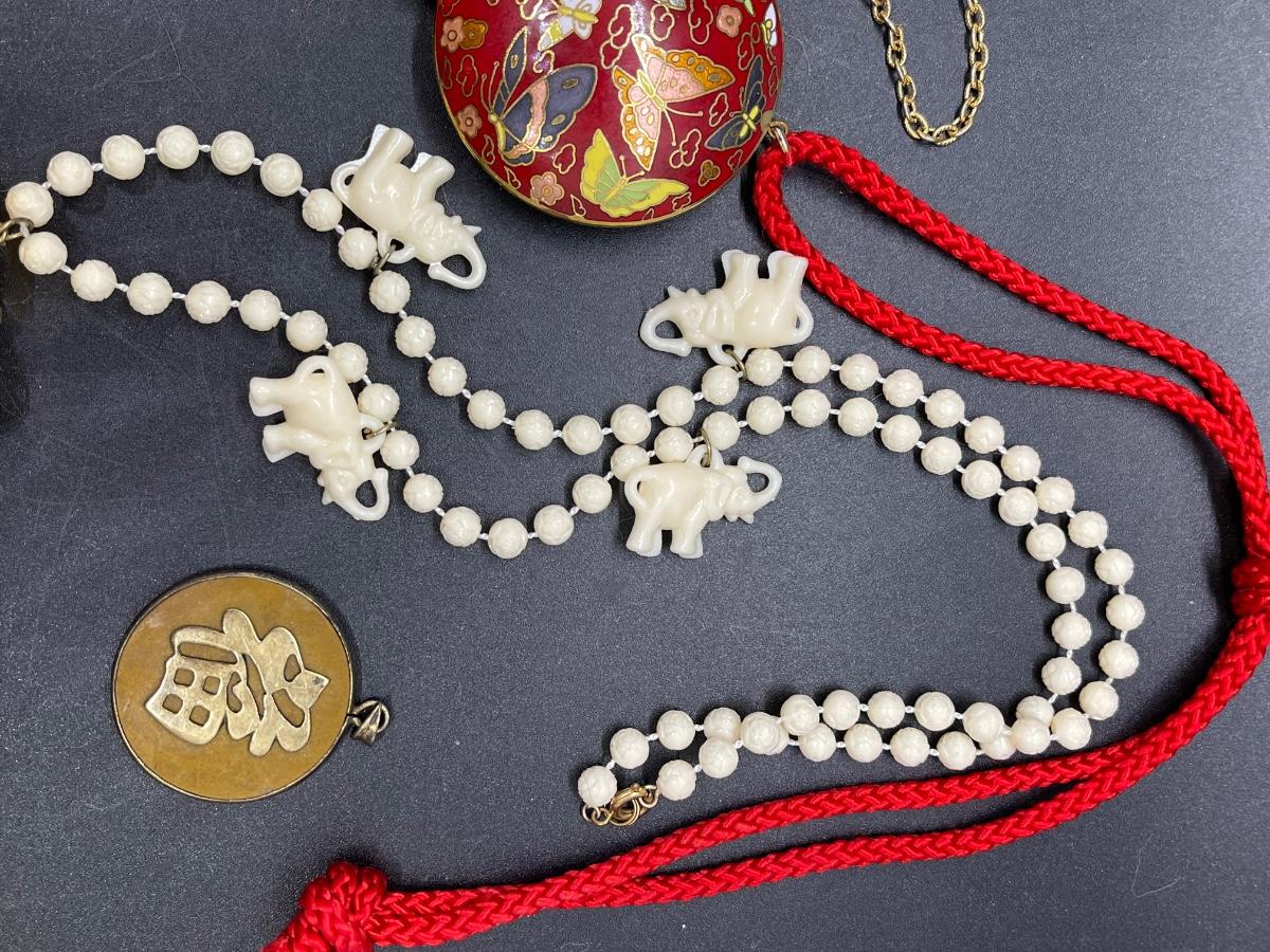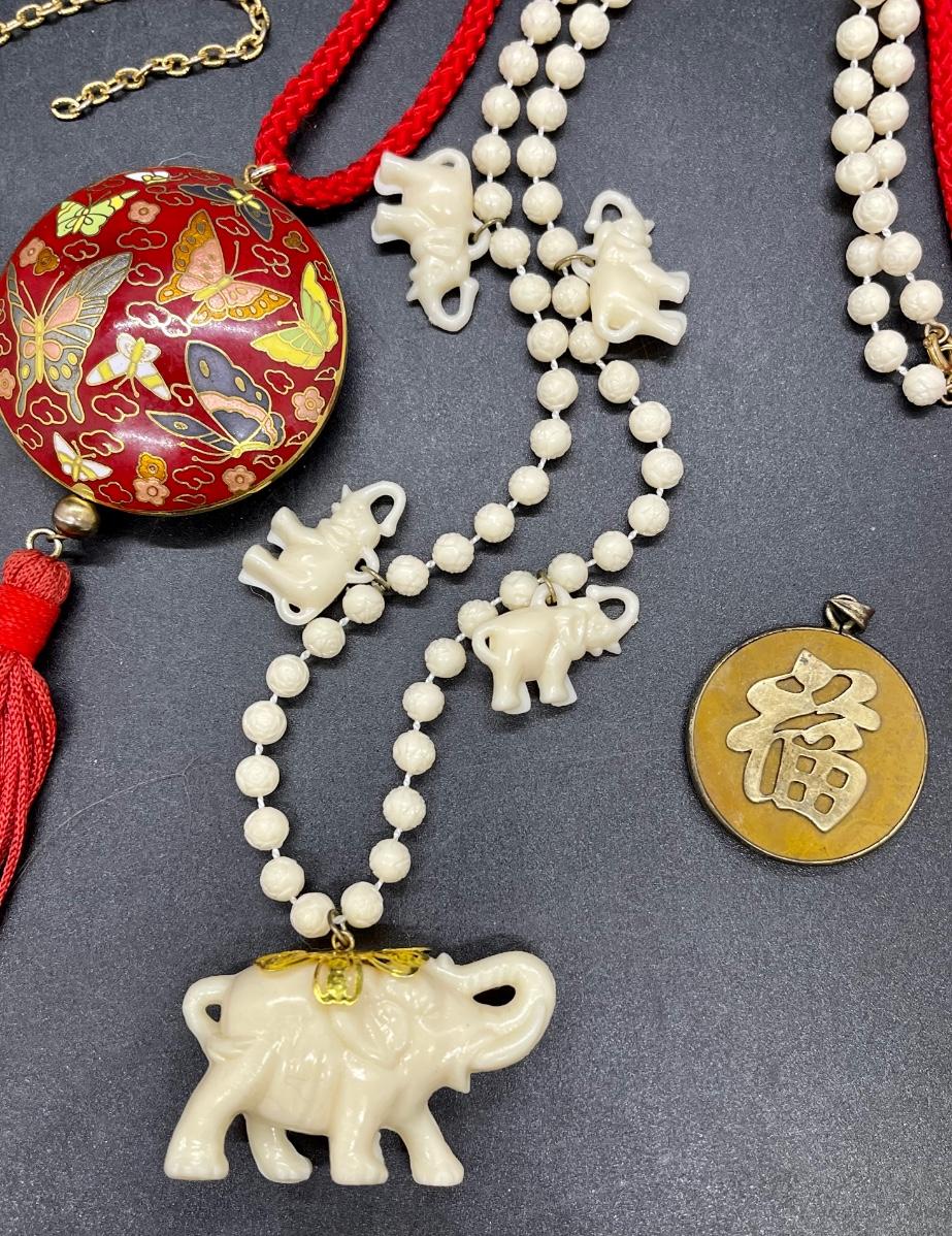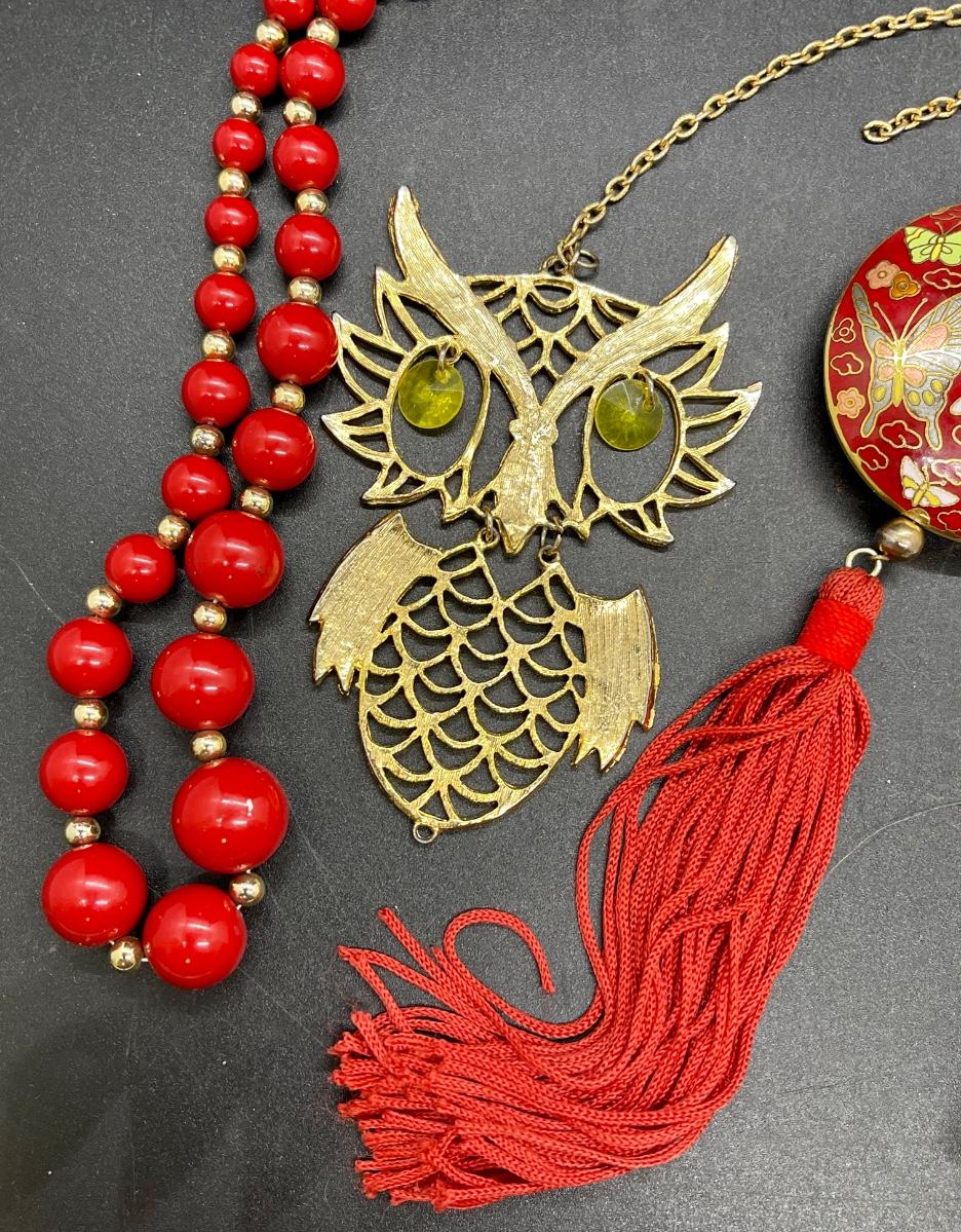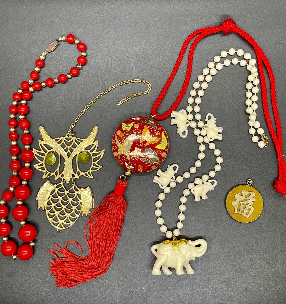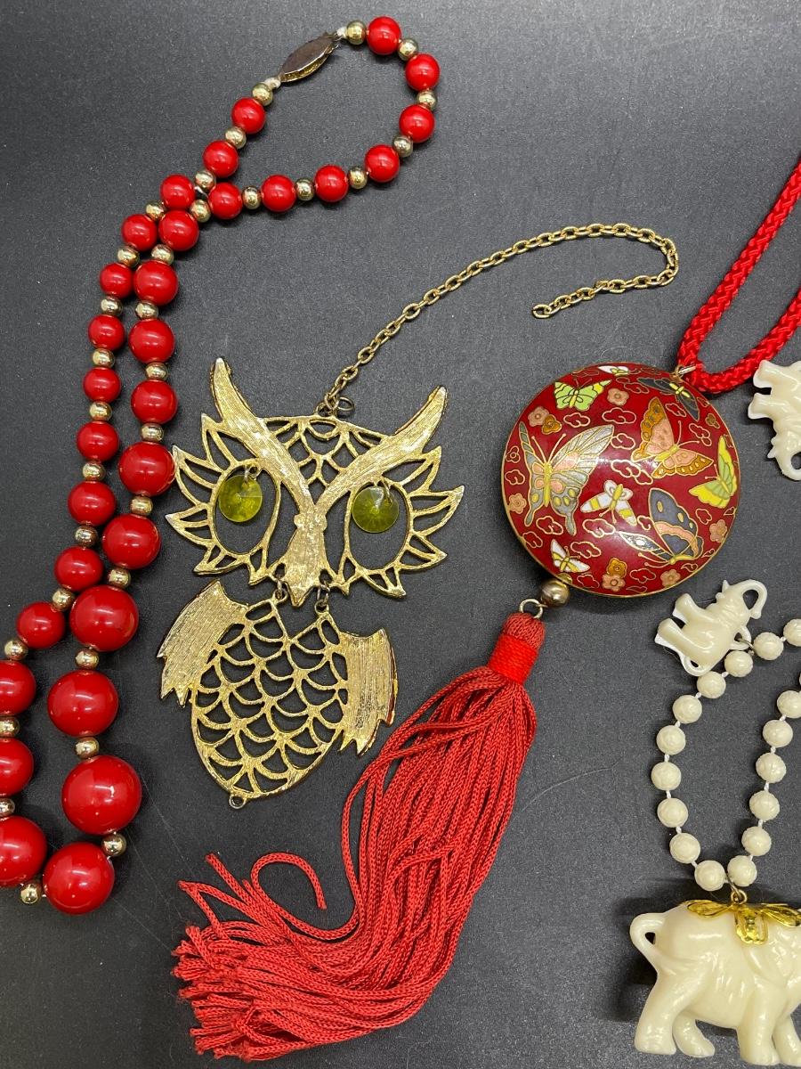 Jewelry Lot - 5 pieces, Cloisonné butterflies elephants owl