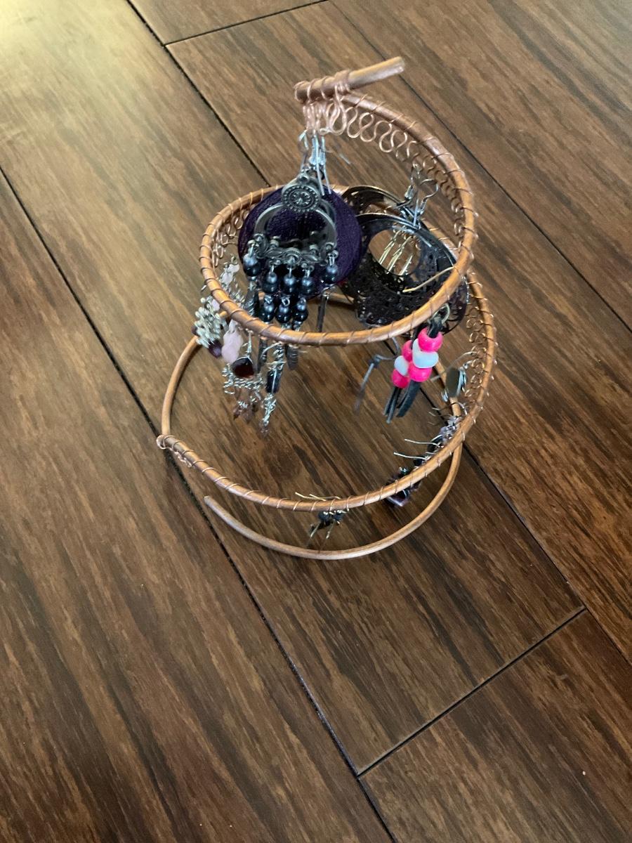 Earring holder with earrings and necklace