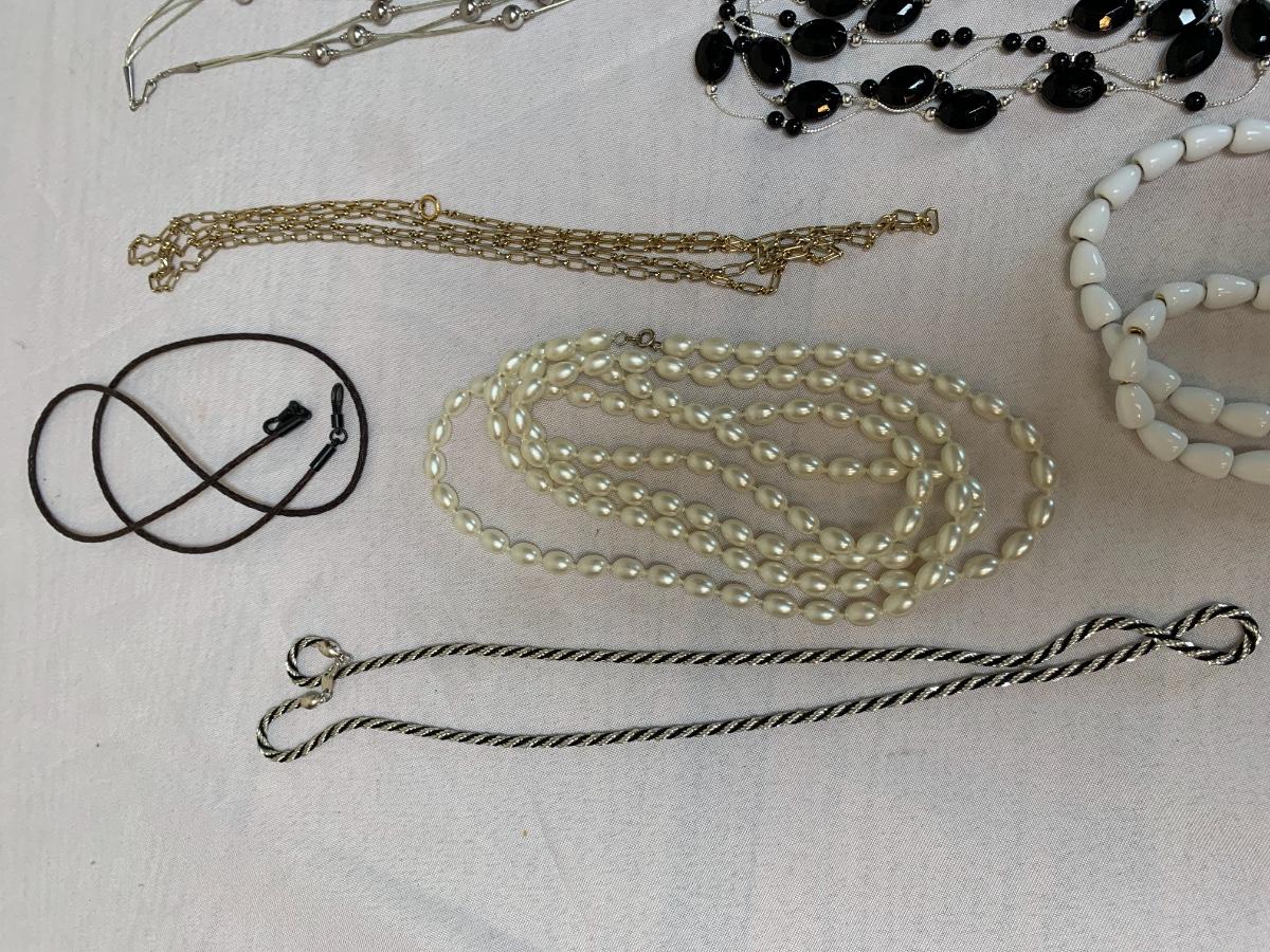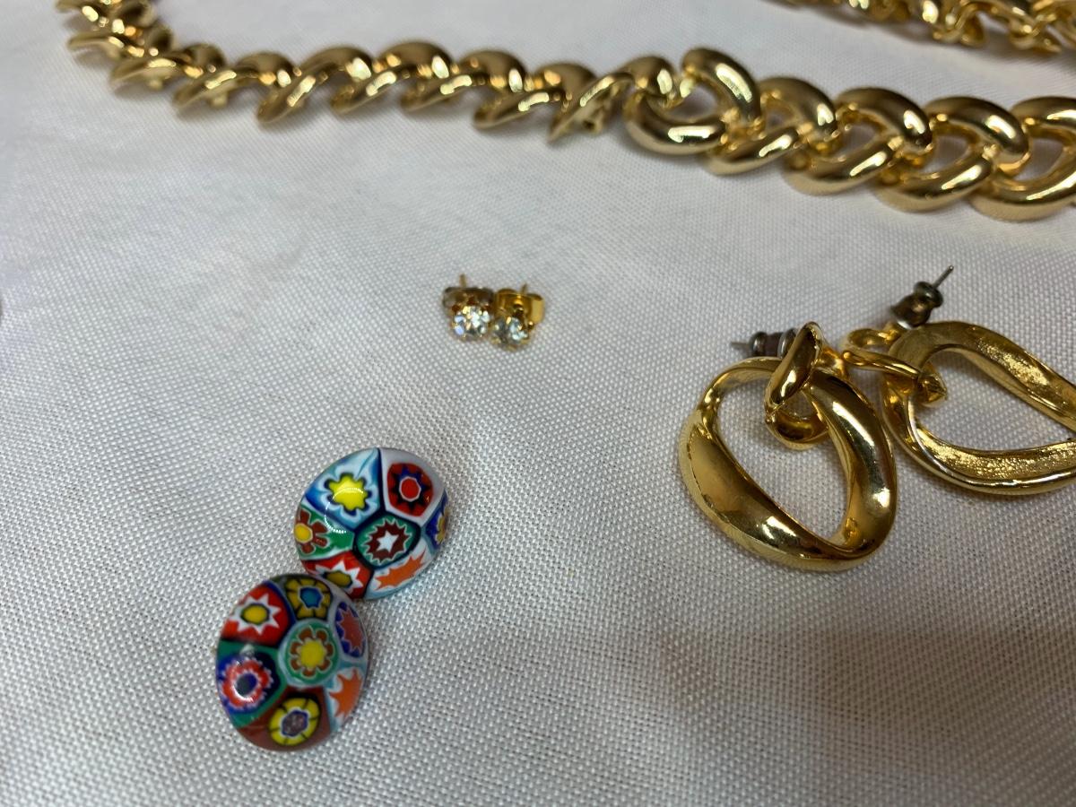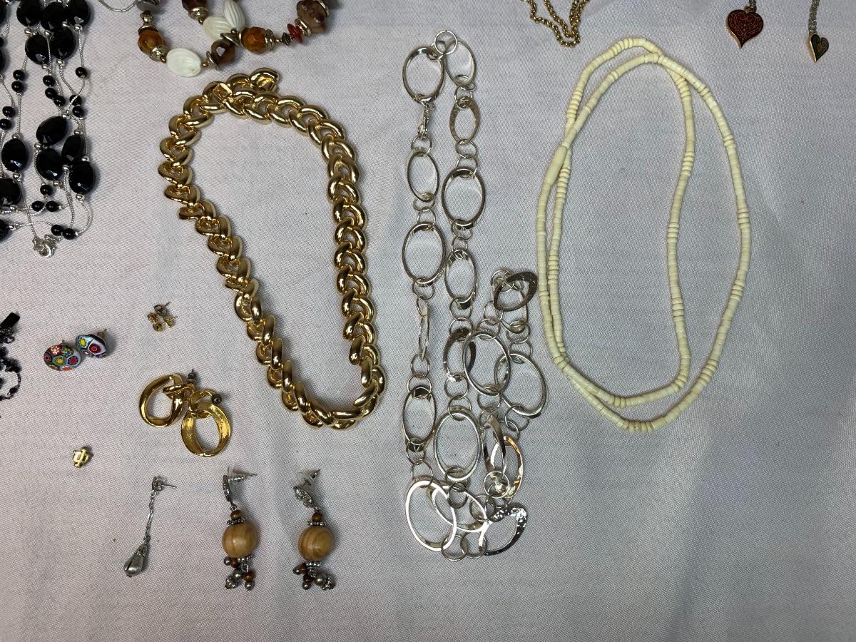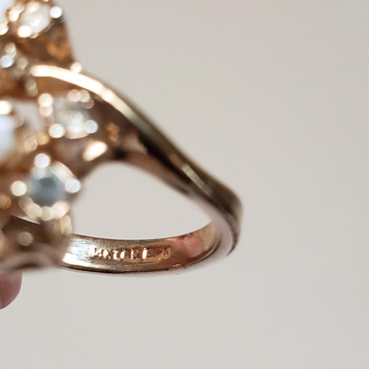 Mostly costume pieces. Does include a silver ring with purple stone marked 925, a white gold ring with pearl marked 10Kt and a third ring that has gold color, unable to read the stamp - appears to have opals and diamonds (one opal missing from setting).