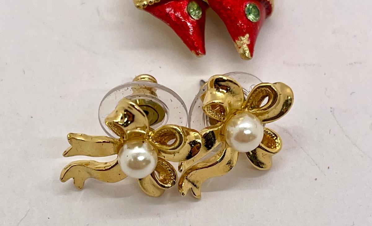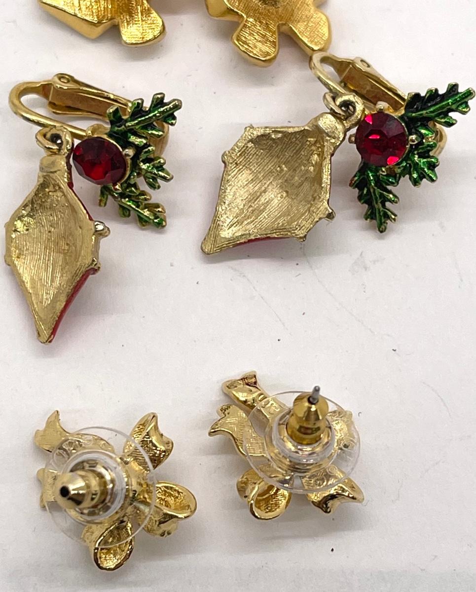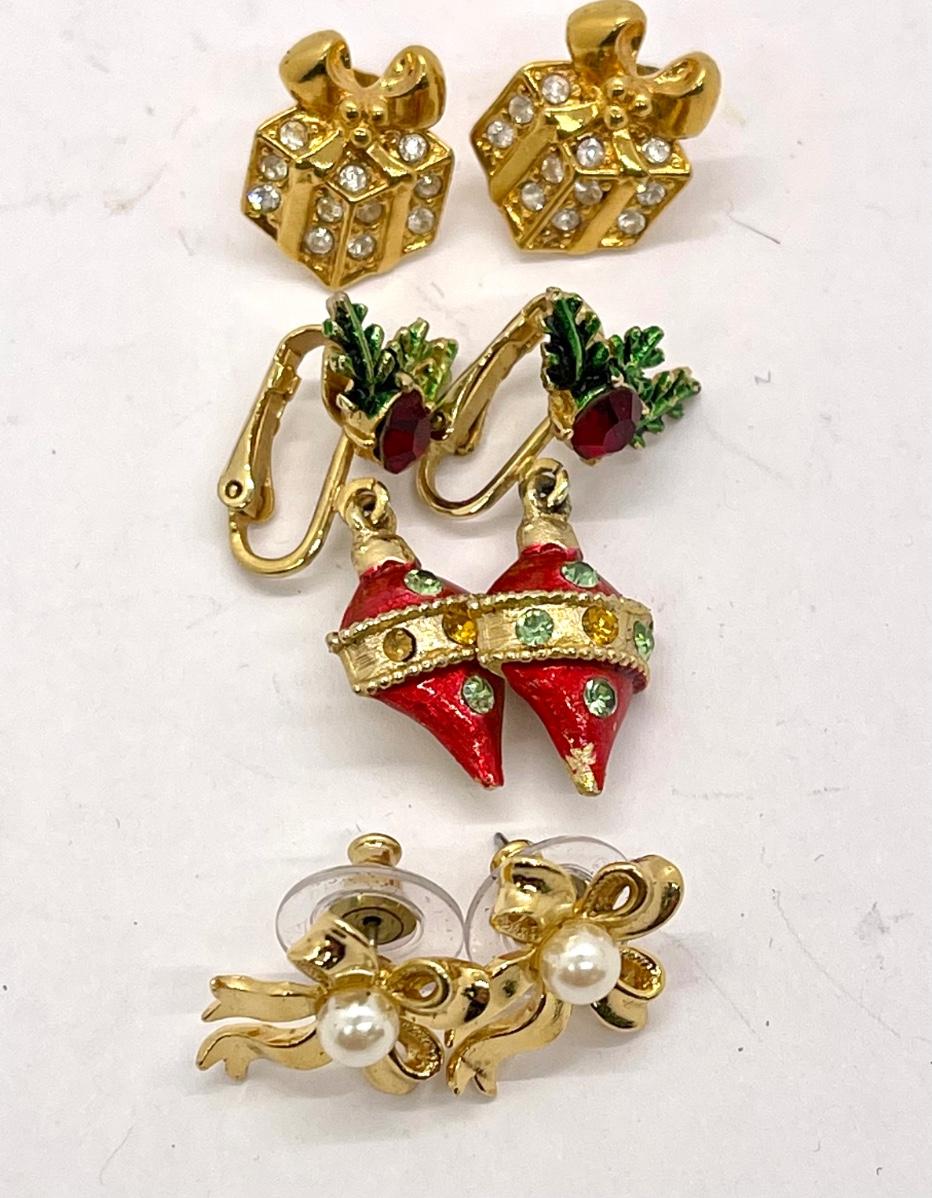 4 sets of earrings in good used condition, but some paint may have rubbed off an ornament erring.