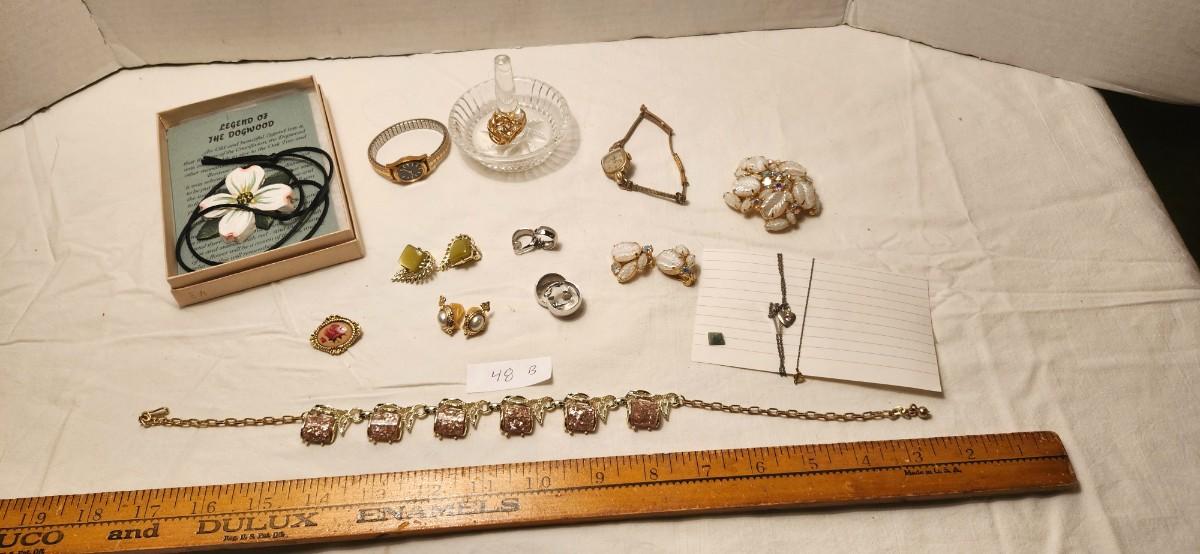Jewelry lot including one carat emerald and vintage & clip earrings