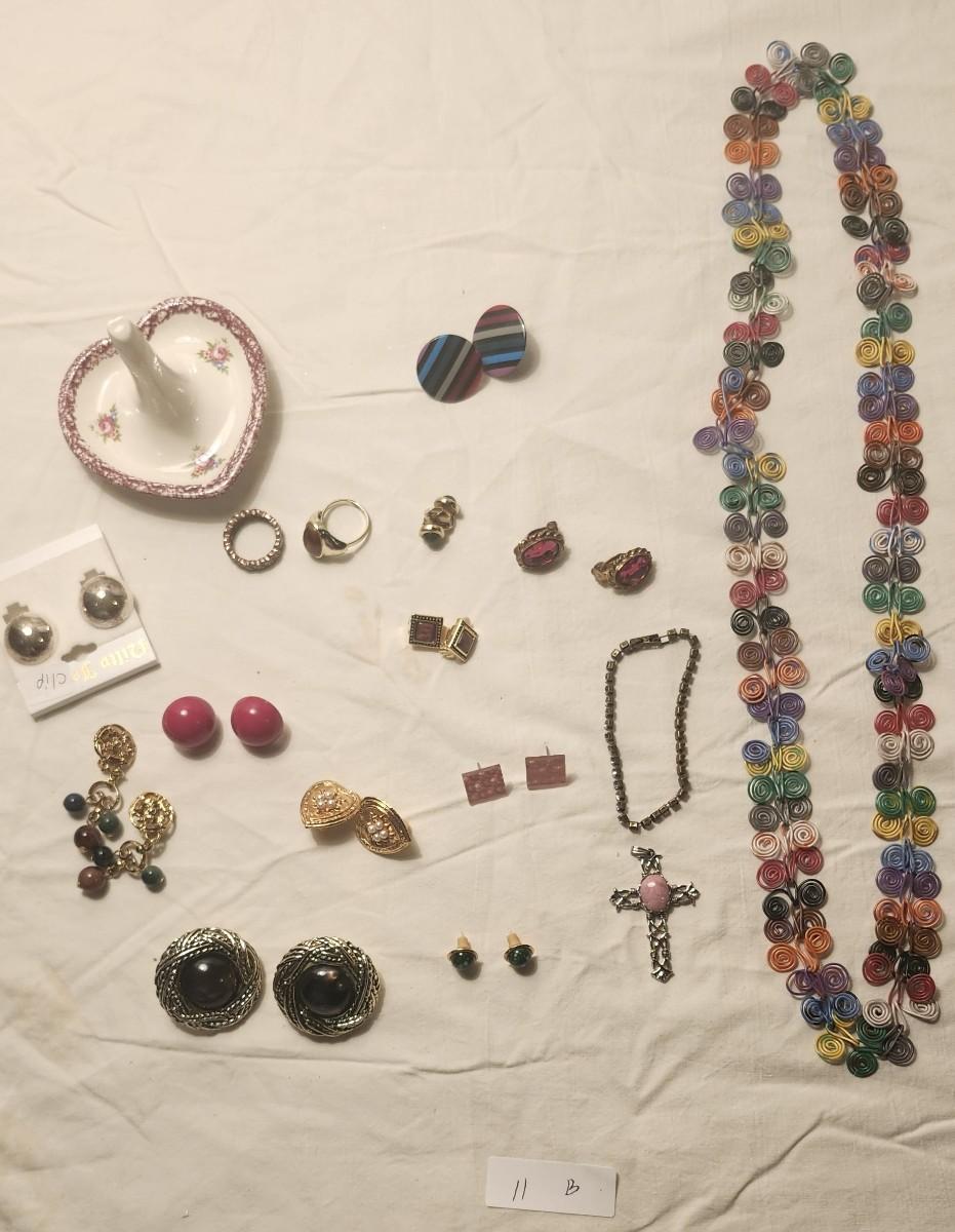 Jewelry lot including Some Vintage Jewelry , Heart Raspberry Ring Holder, Clip earrings