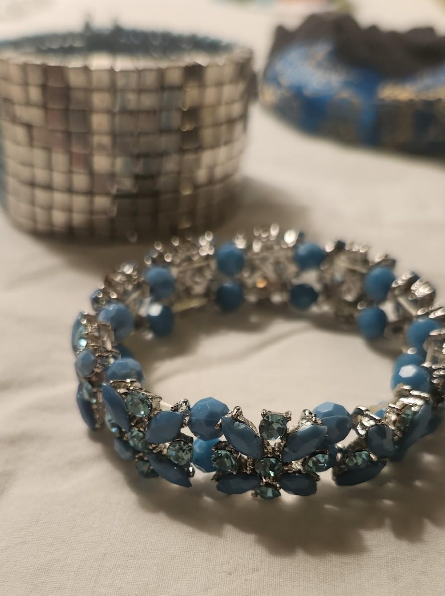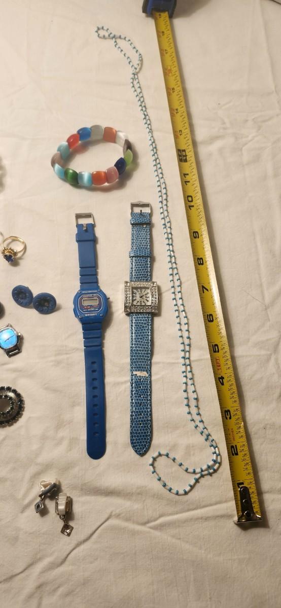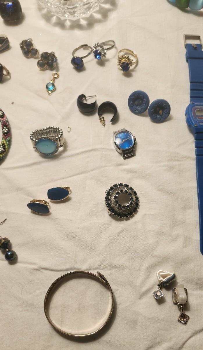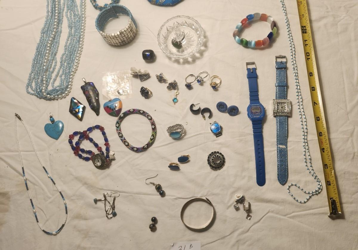 Jewelry lot including Some Vintage Jewelry including Fuse Glass, Blue Aqua Cluster Bracelet