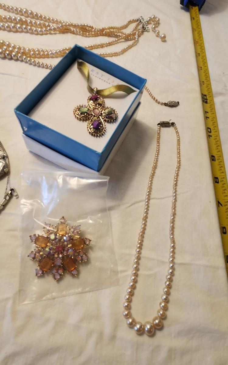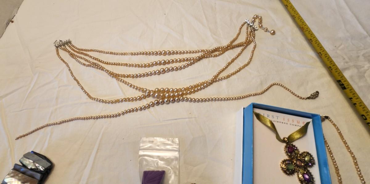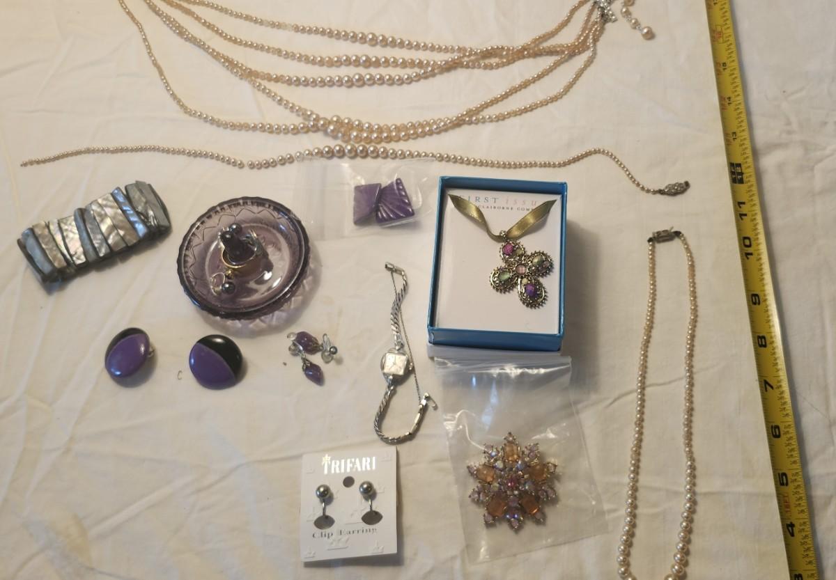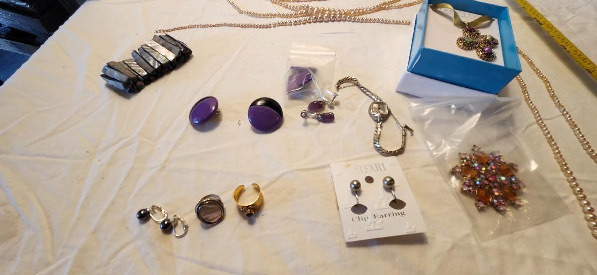 Jewelry lot including Some Vintage Jewelry, Fenton purple ring holder