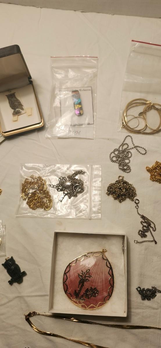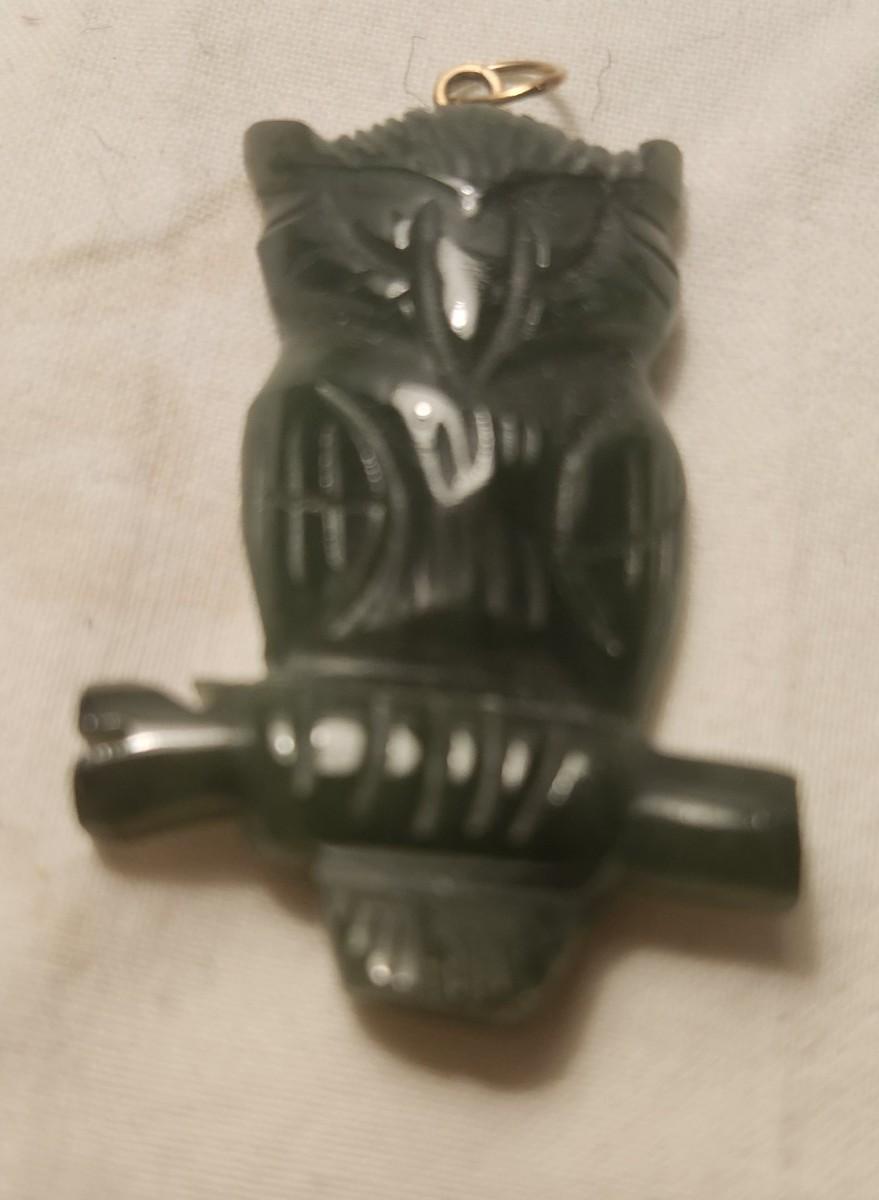 Jewelry lot including Some Vintage , believe it is Green Jade Carved Owl Lucky Charm