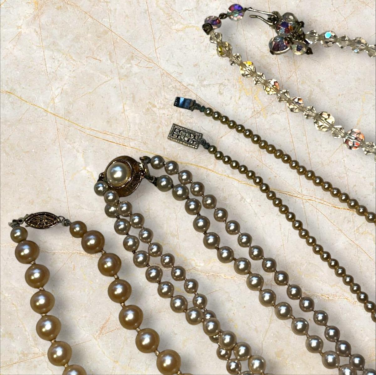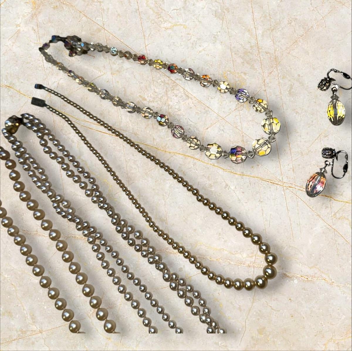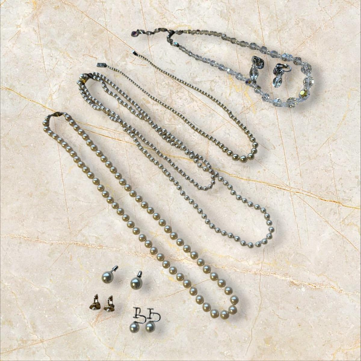 Jewelry Lot of Vintage Pearl Necklaces and Earrings Crystalish Set- note that the camera took strange metallic and dark shots but the pearls are the actual color of regular pearls.