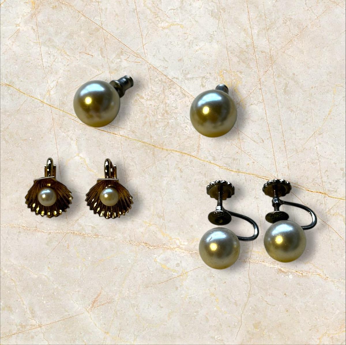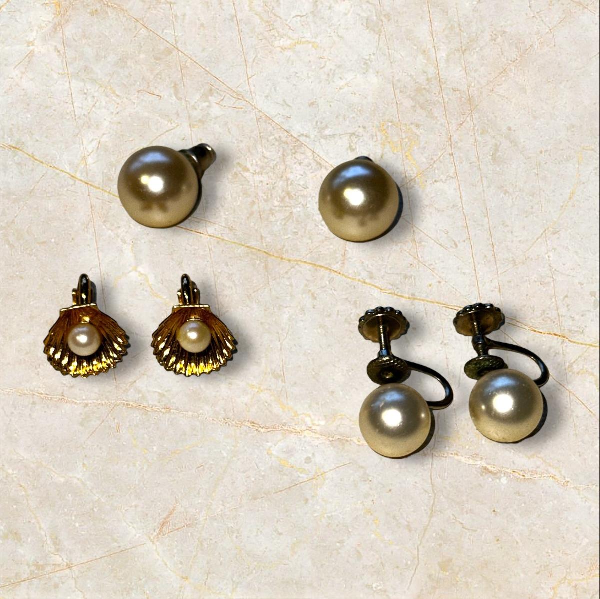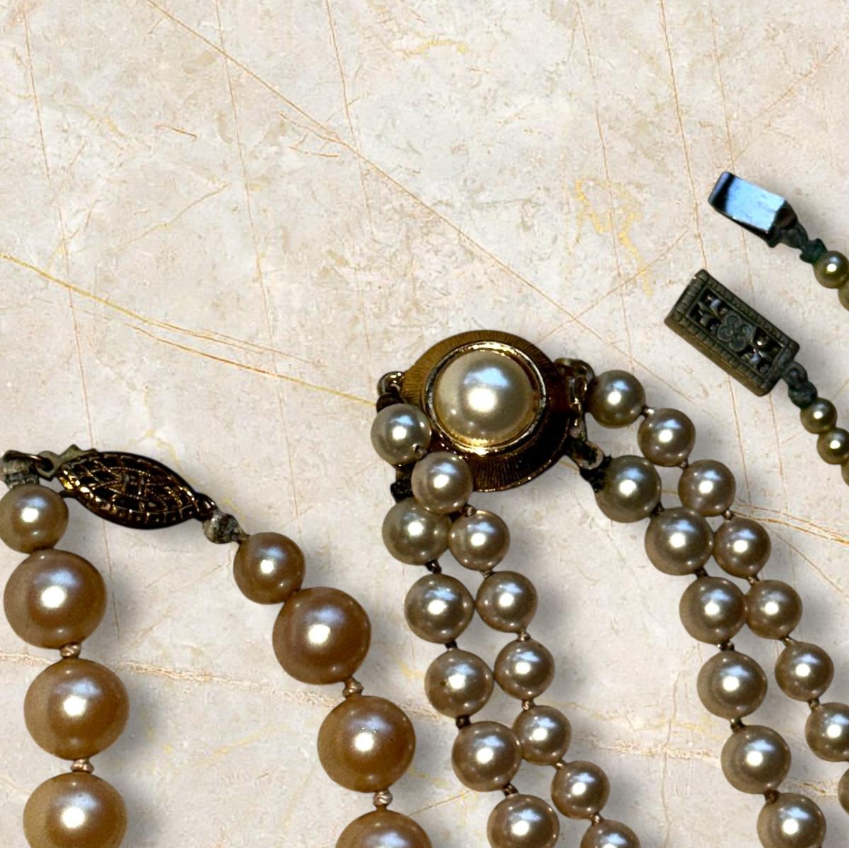 Jewelry Lot of Vintage Pearl Necklaces and Earrings Crystalish Set- note that the camera took strange metallic and dark shots but the pearls are the actual color of regular pearls.