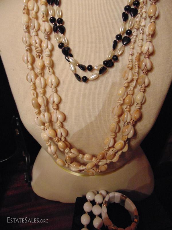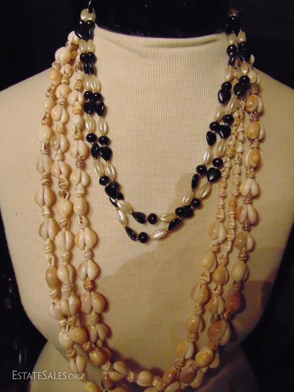 Jewelry Lot Shell Necklaces, Black and white beaded necklace, Bracelet, White bead necklace