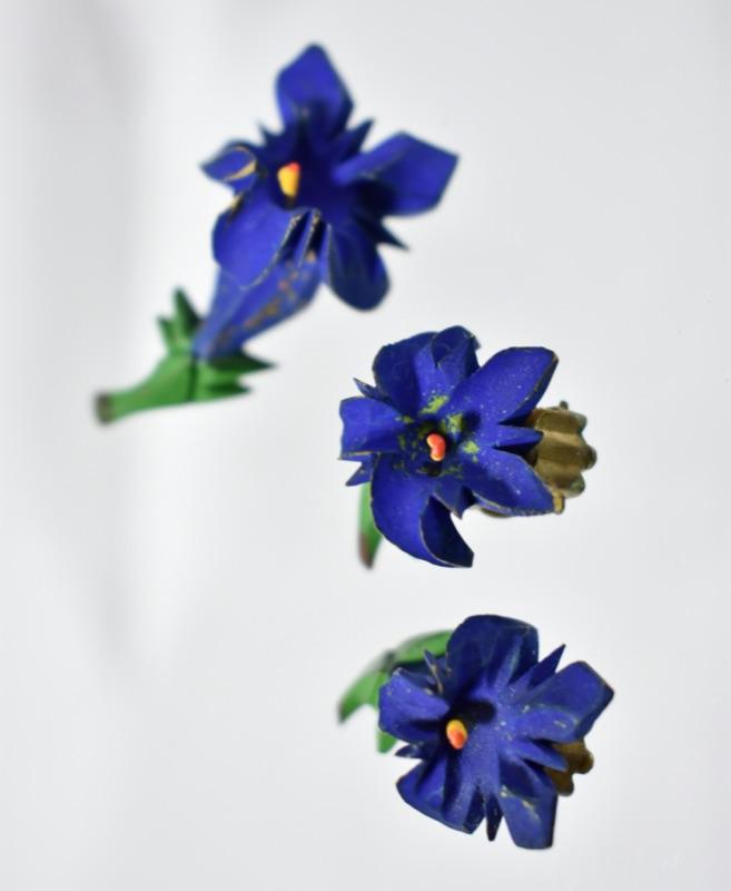 - Enamel Leaves & Petals with Gold Vine & Pearl Center