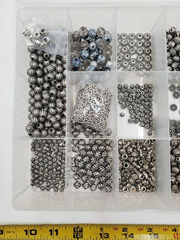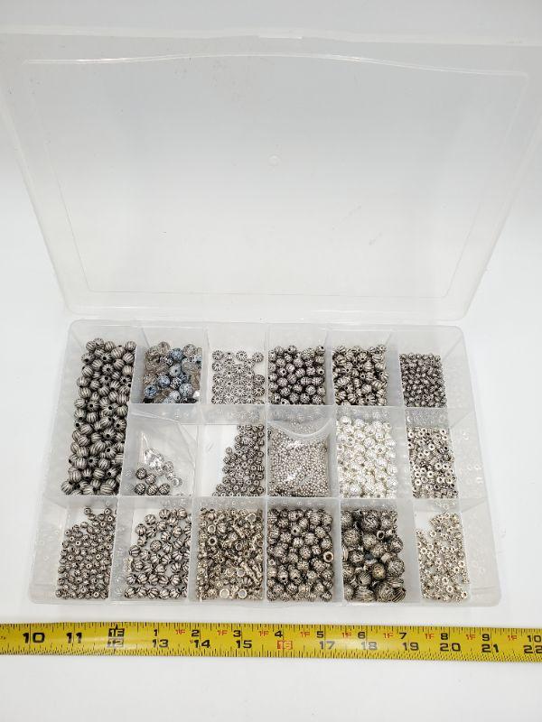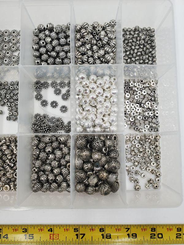 Large lot of metal beads/spacers...silver toned...like new condition.